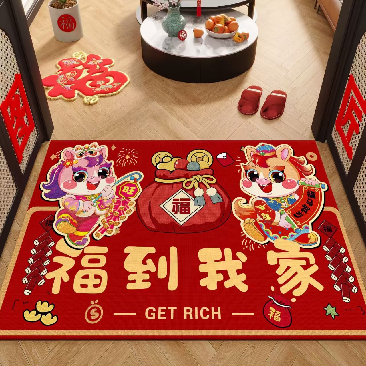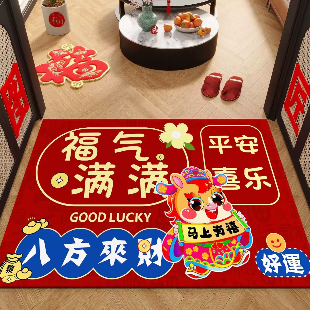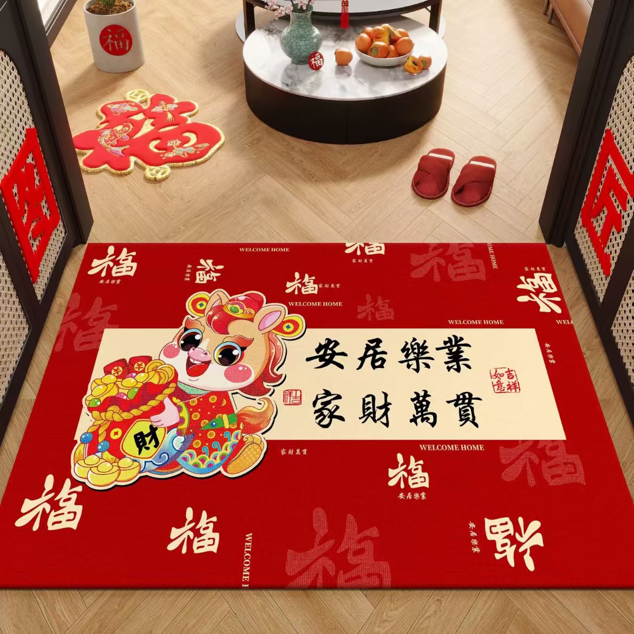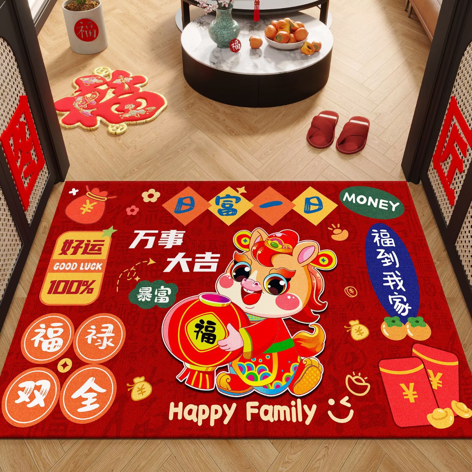 【新年纳福❗️马年限定喜庆地毯】脚踩进门,迎接新年好运,福气满满!红色入户门地垫家用防滑水晶绒门垫耐脏现代简约可洗脚垫