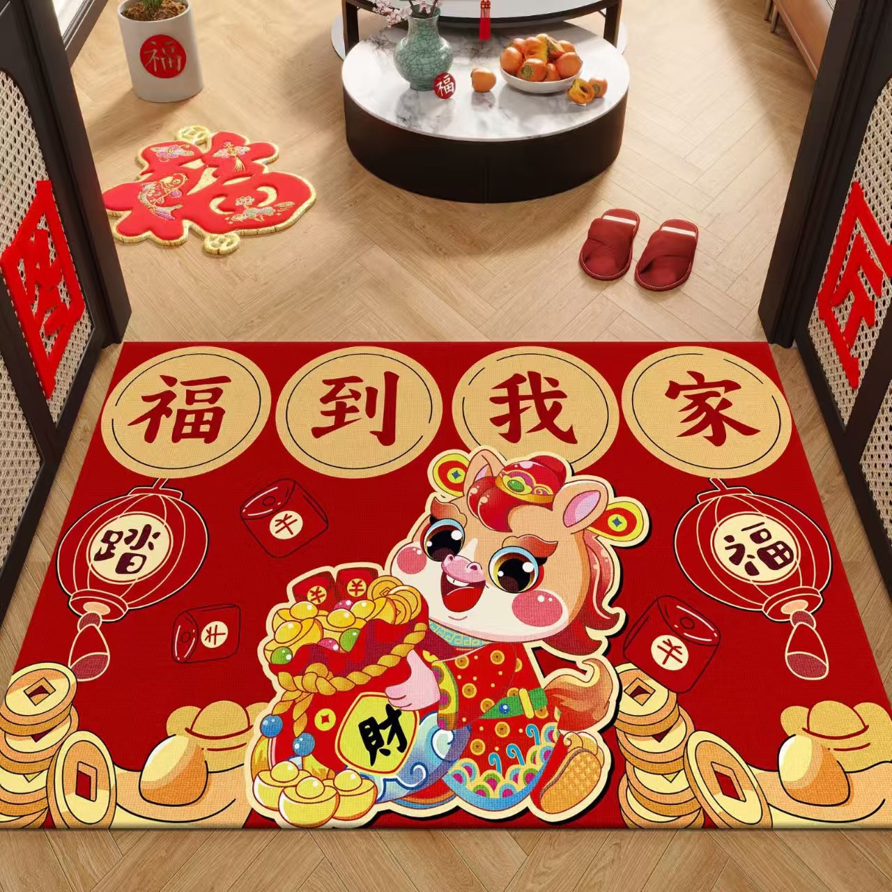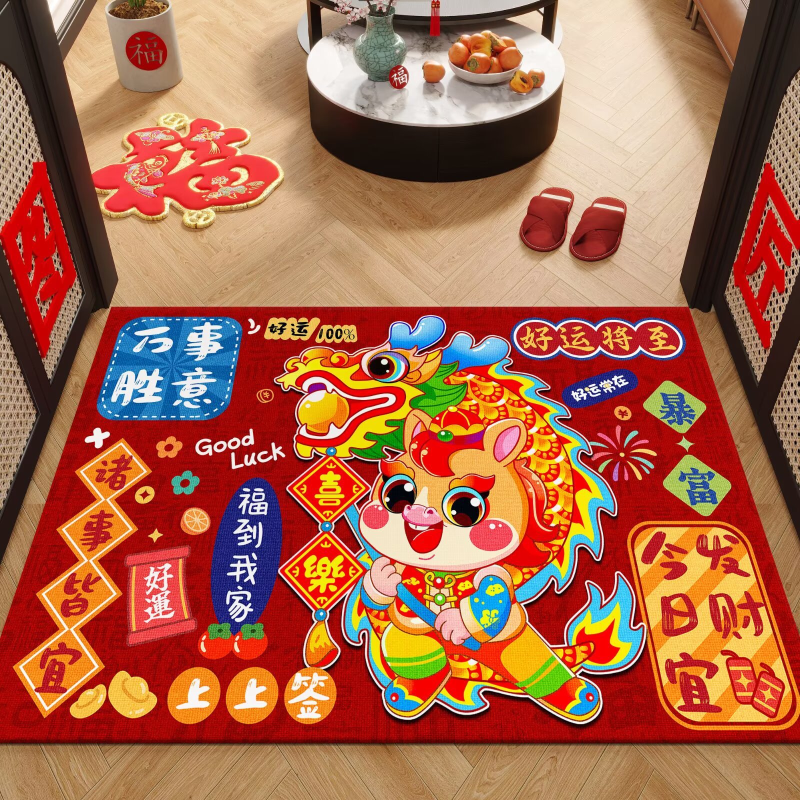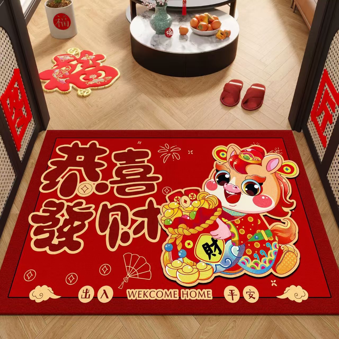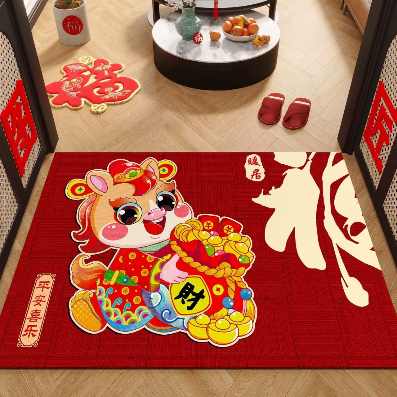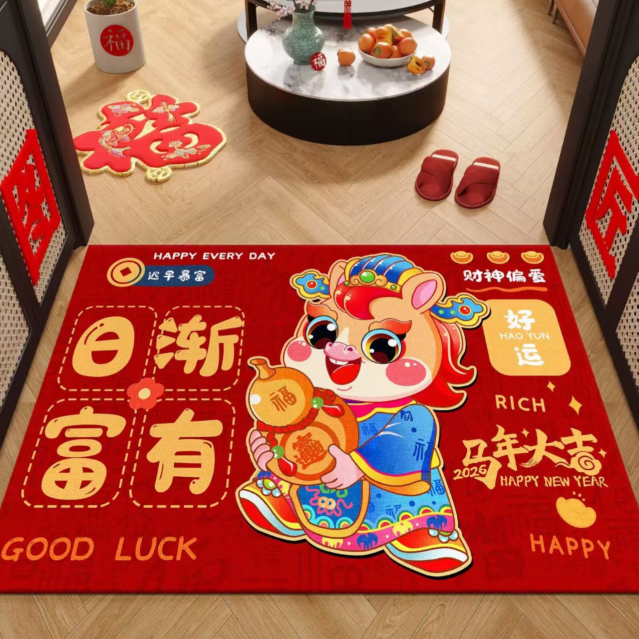 【新年纳福❗️马年限定喜庆地毯】脚踩进门,迎接新年好运,福气满满!红色入户门地垫家用防滑水晶绒门垫耐脏现代简约可洗脚垫