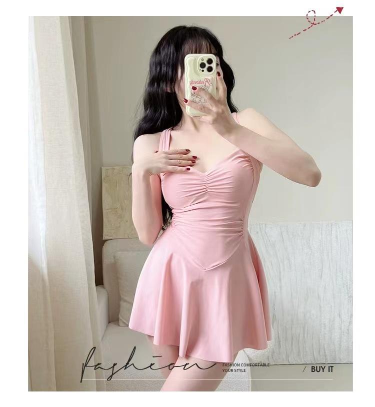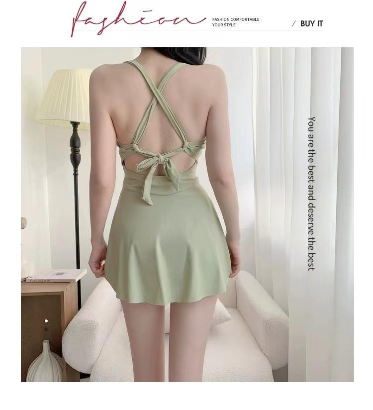 【显气质❗️显瘦性感连体吊带泳衣】游泳、温泉、瑜伽一套搞定,各种身材轻松驾驭❗️女款纯色小清新修身露背泡温泉泳装