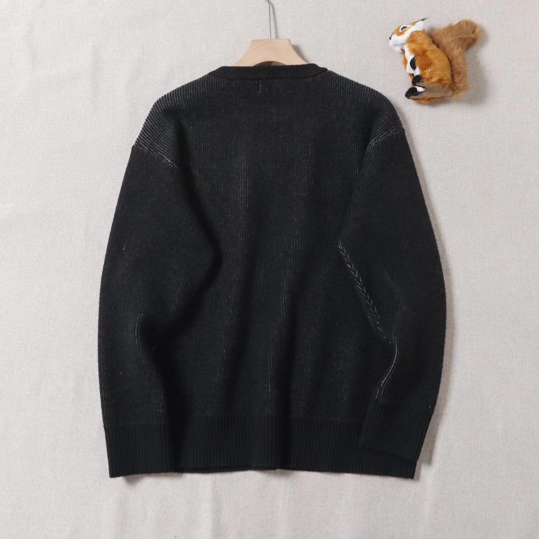 2025秋季男款海鸥和商标嵌花针织套头宽松毛衣!三标辅料齐全,多联吊牌,多联水洗!胸前大logo混织。!重工打造,强烈推荐!天丝包芯纱抗起球面料,面料质感厚实,上身柔软舒适,耐洗不起球不变形。冬季不可缺少的一件加绒加厚毛衣,纯色开衫圆领设计,上身效果超棒,不会显得单调,简约利落的款式,可搭配情侣款,品质有保 障,喜欢的赶紧入!天冷叠穿作为内搭也非常好看。吊牌辅料原版定制。采用纯棉纱线混纺羊毛,纯棉亲肤舒适,高品质 跟着博主学穿搭!