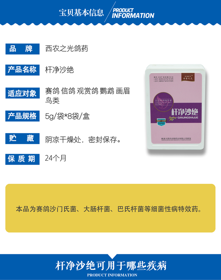 【杆净沙绝】粉,粉鹦鹉赛信鸽子药肠道药沙门氏菌水绿便下痢(西农之光鸽药)