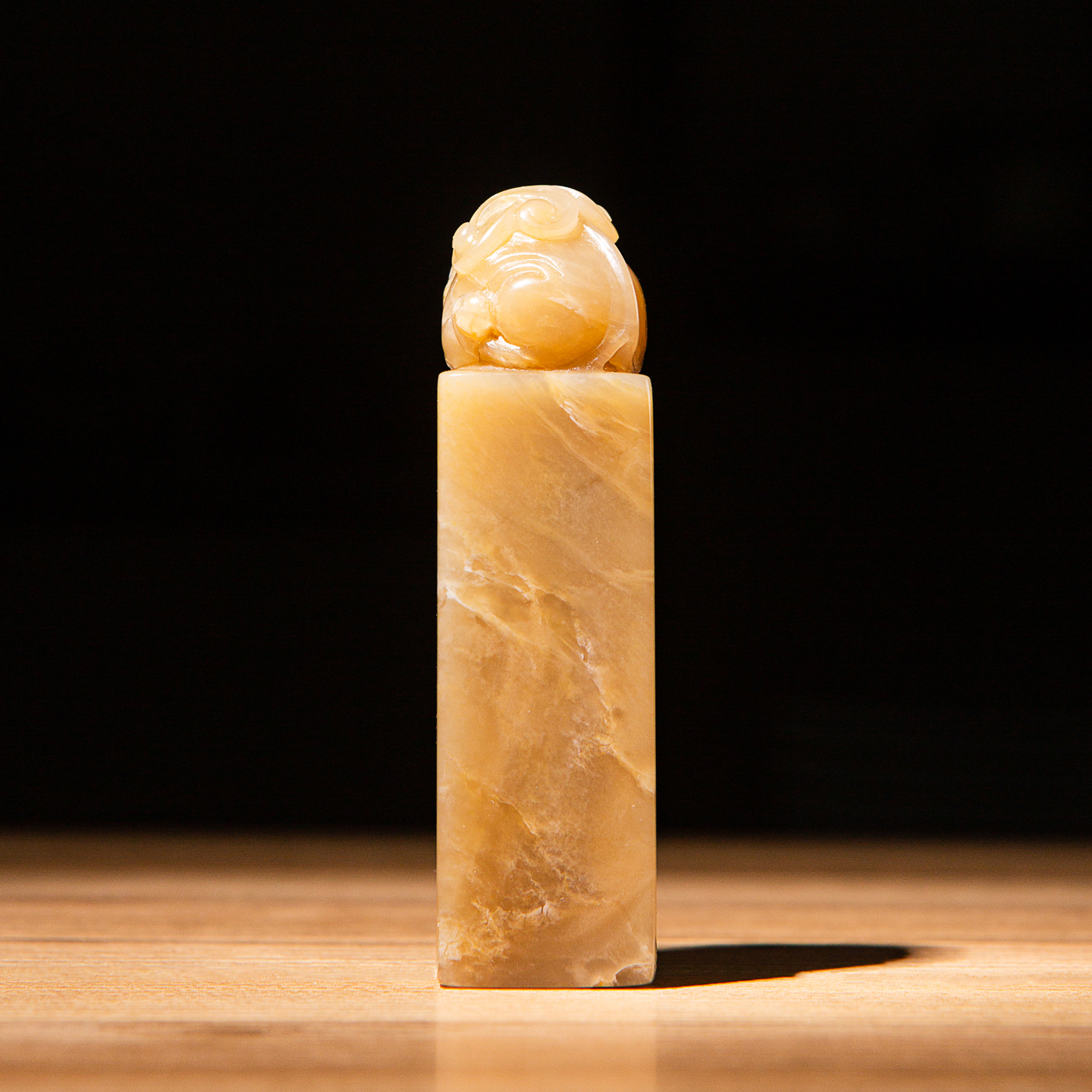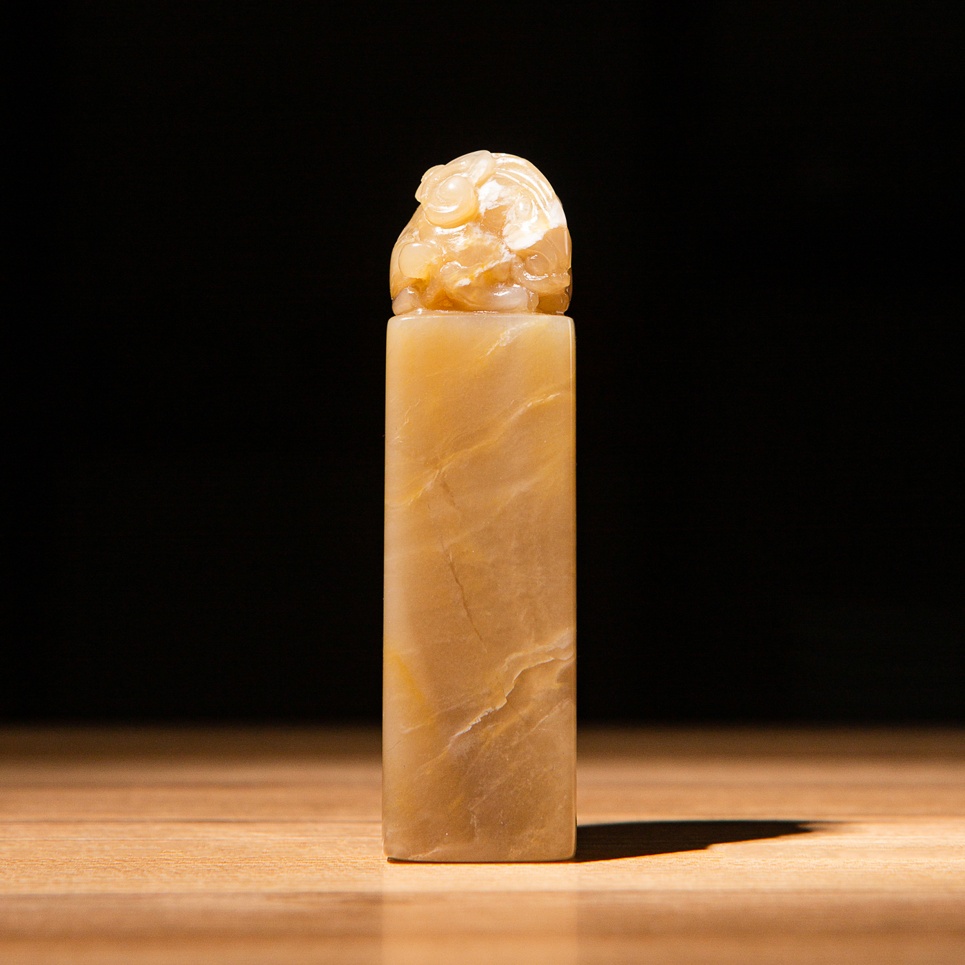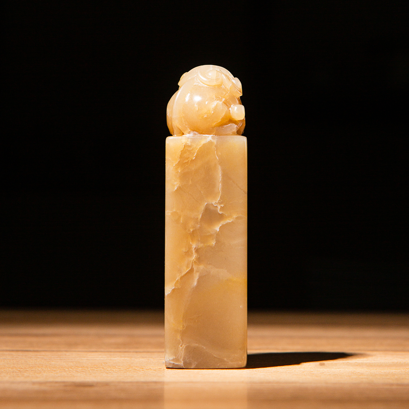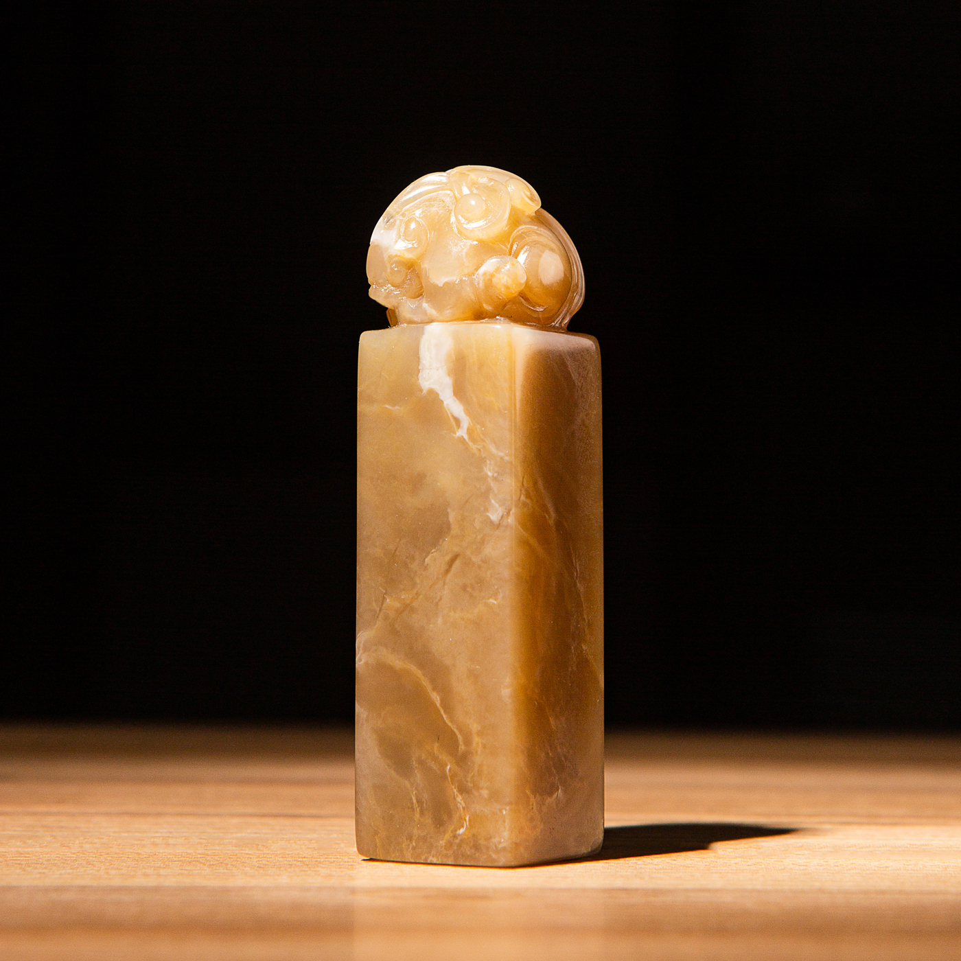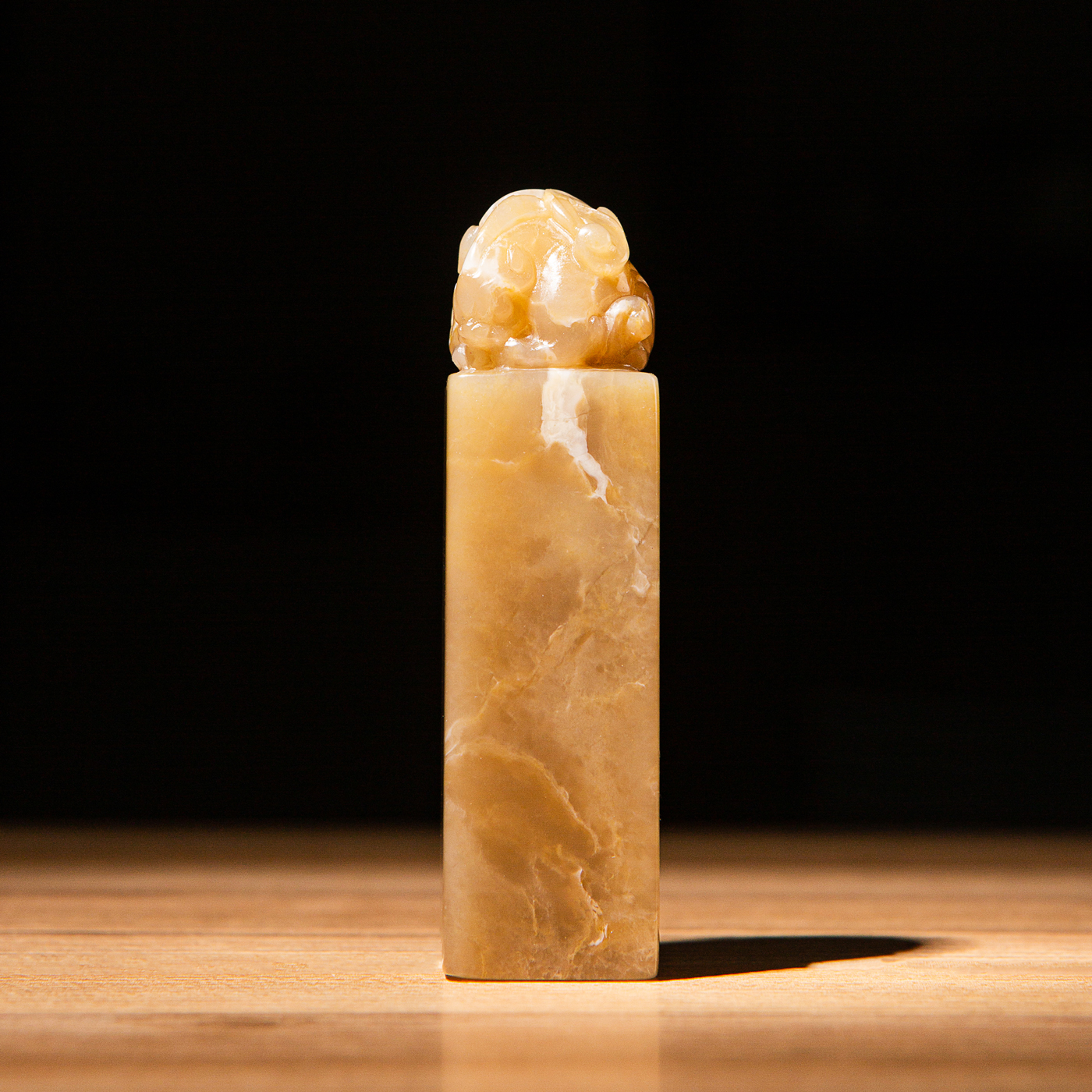 巴林石云水冻老料雕“螭虎”方章,采用存放几十年的老料,纯手工精雕而成。其雕工精美,质地温润通透,石性稳定。