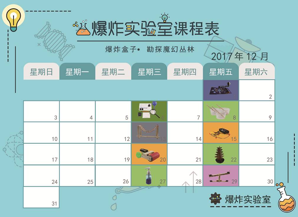 2017年最后一个月,爆炸实验室也为孩子准备了一场科学丛林探索之旅:12月爆炸盒子 - 勘探魔幻丛林,帮你带孩子变身科学丛林“勘探员”。