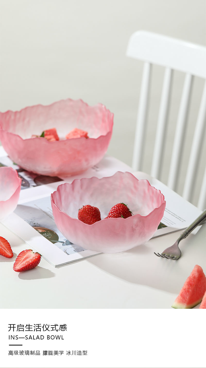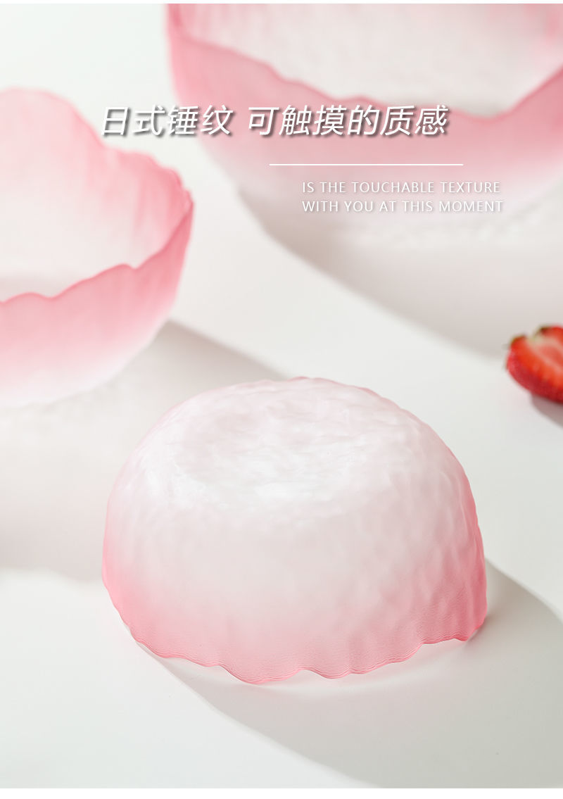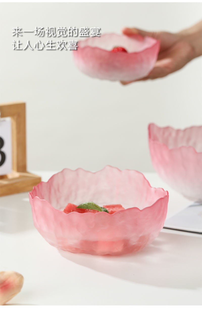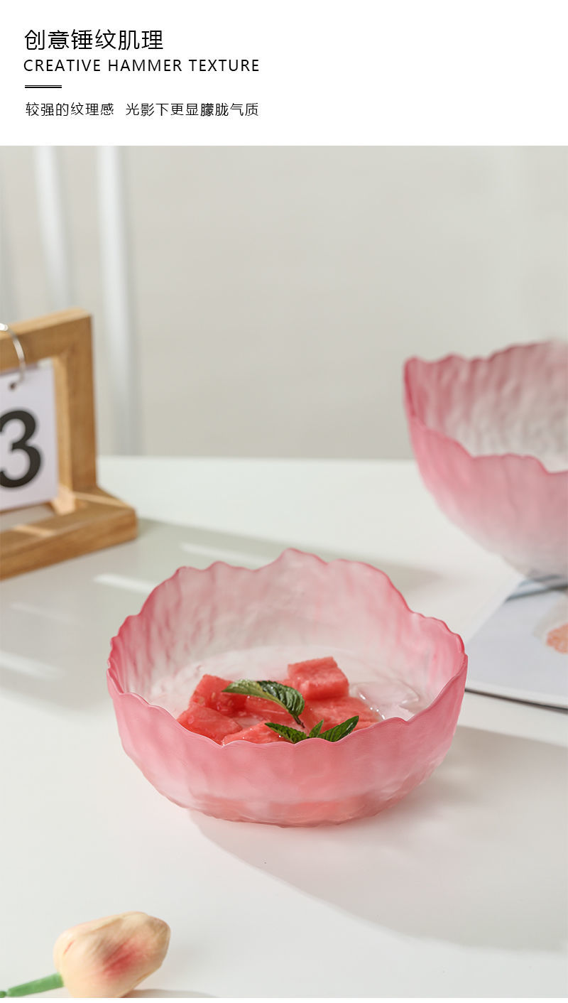 清爽夏日不规则玻璃锤纹沙拉碗套装莲雾粉渐变色网红家用水果盘