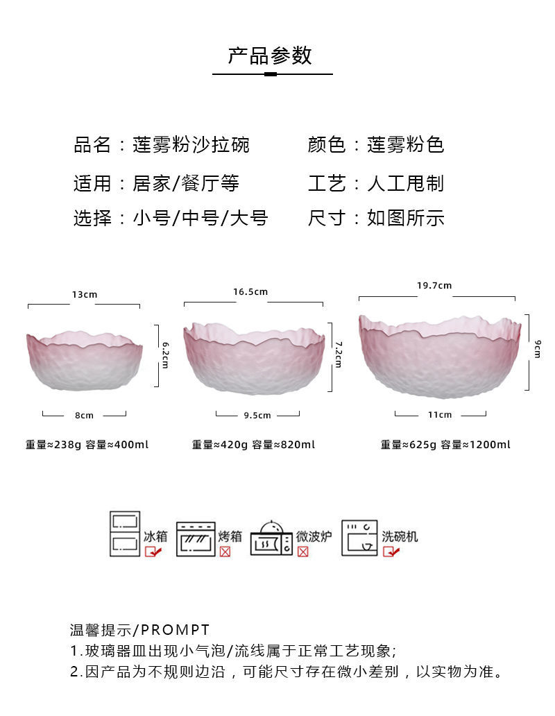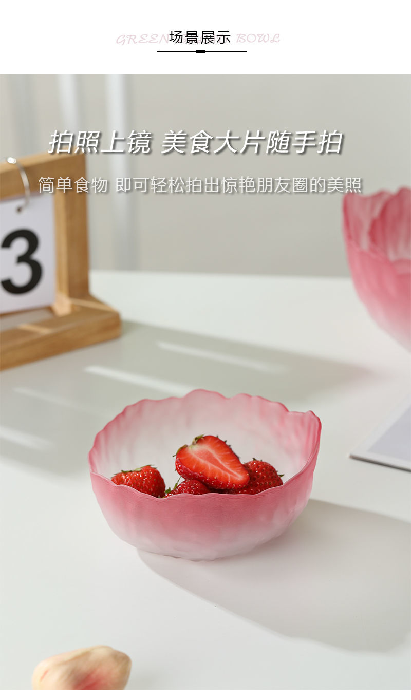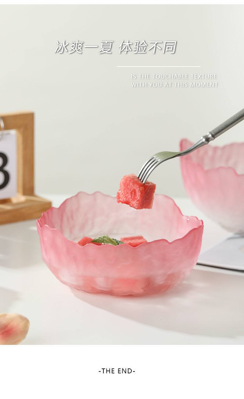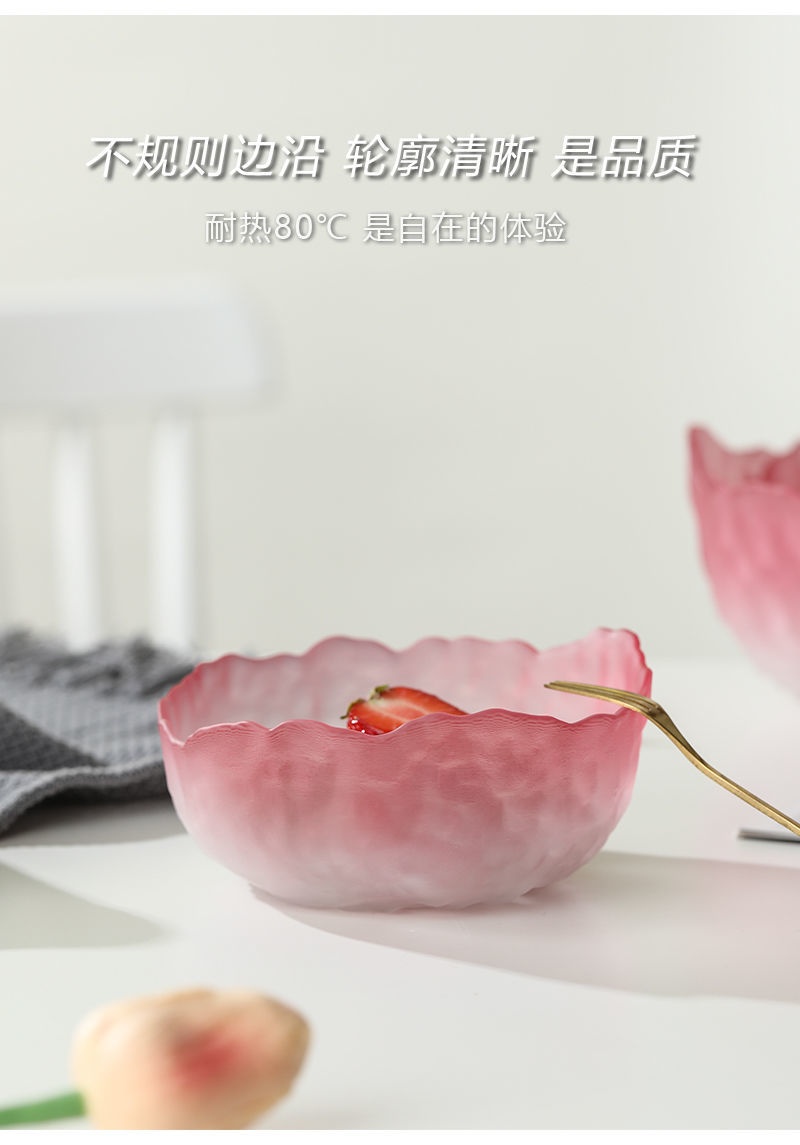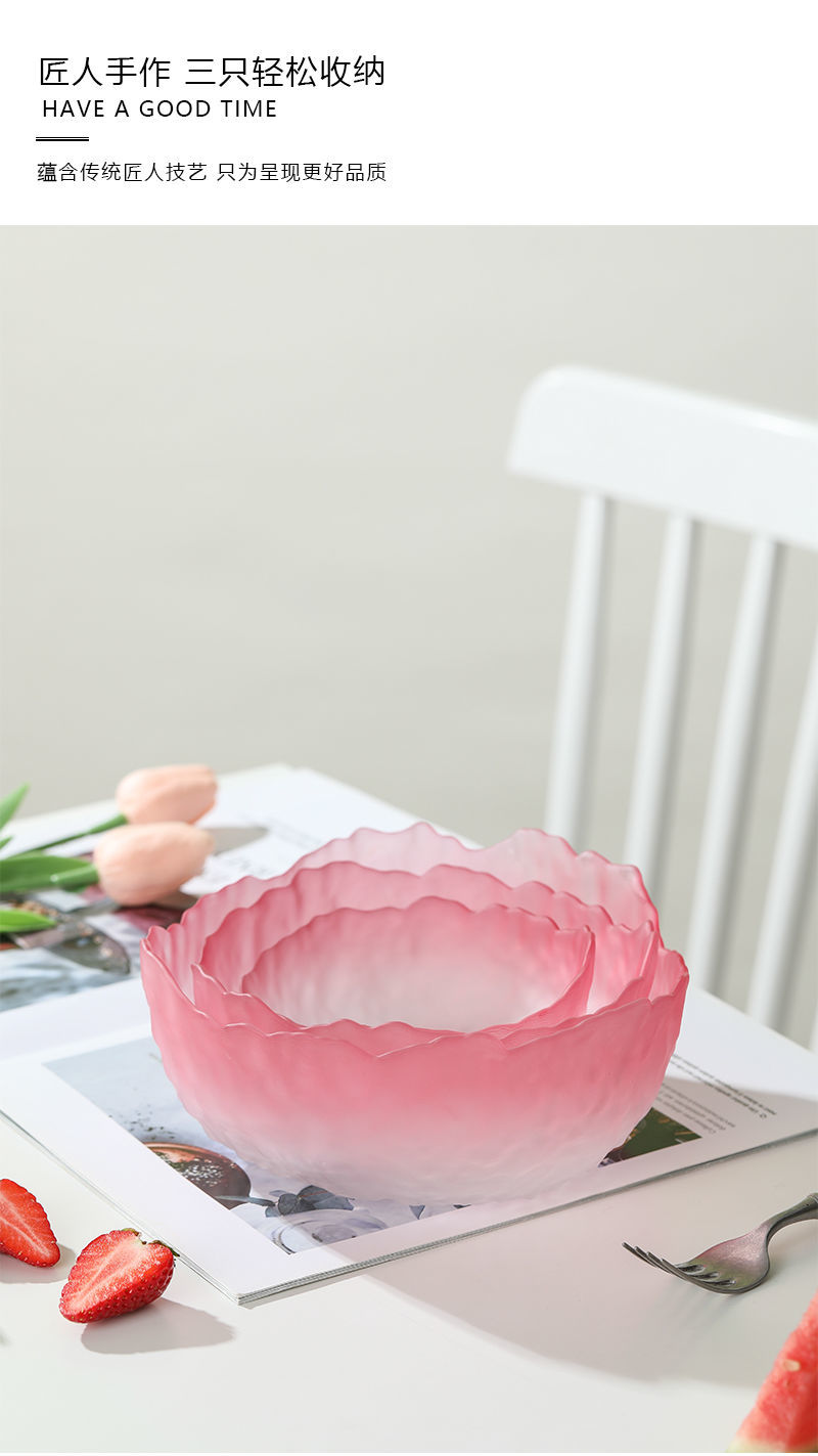 清爽夏日不规则玻璃锤纹沙拉碗套装莲雾粉渐变色网红家用水果盘