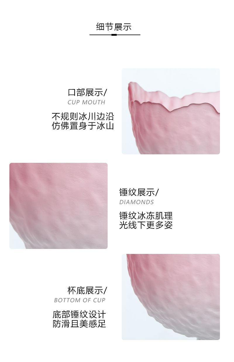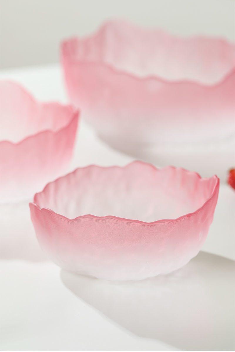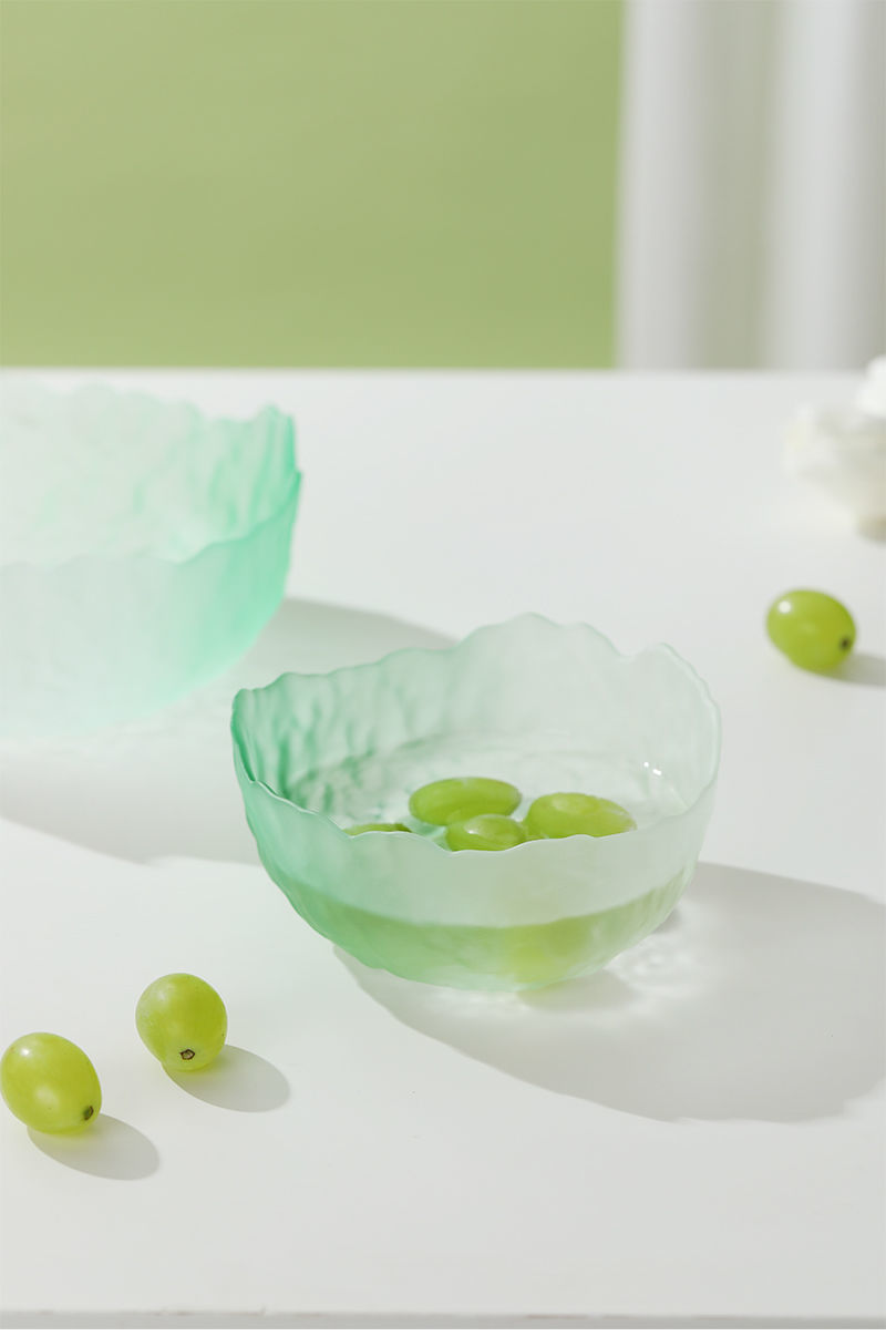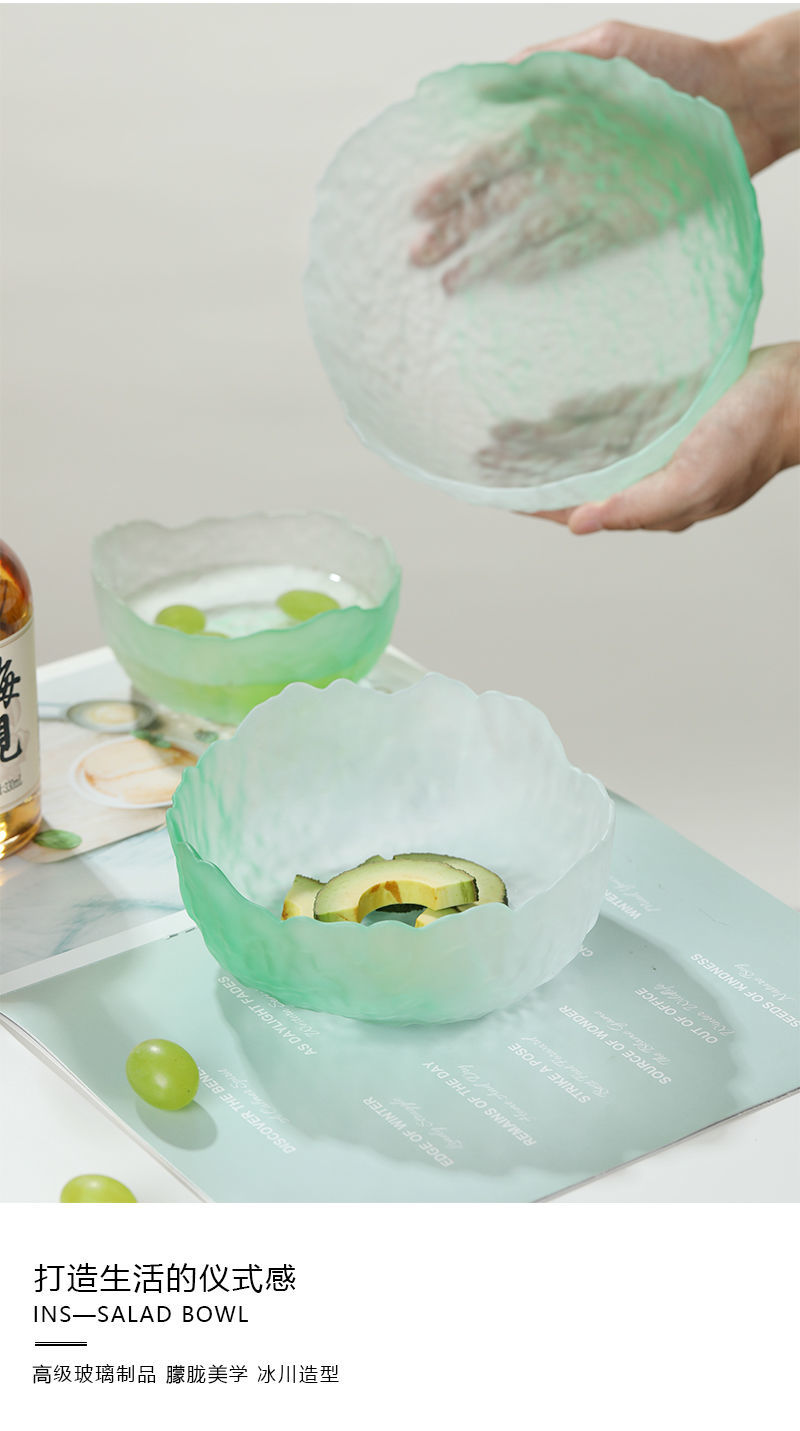 清爽夏日不规则玻璃锤纹沙拉碗套装莲雾粉渐变色网红家用水果盘