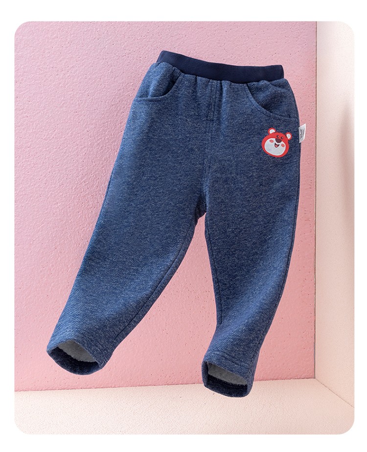 迪士尼童装儿童加绒休闲长裤秋冬季宝宝保暖仿牛仔布裤子