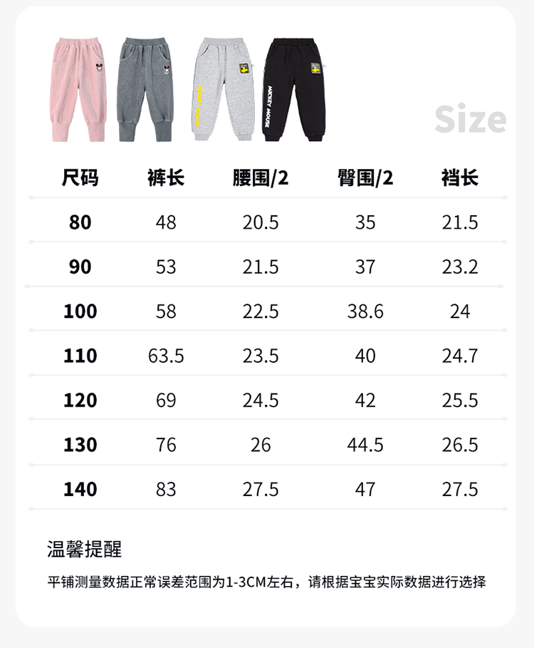 【商场同款】迪士尼童装 男女童裤子秋冬外穿儿童时尚潮新款长裤