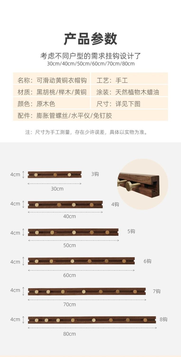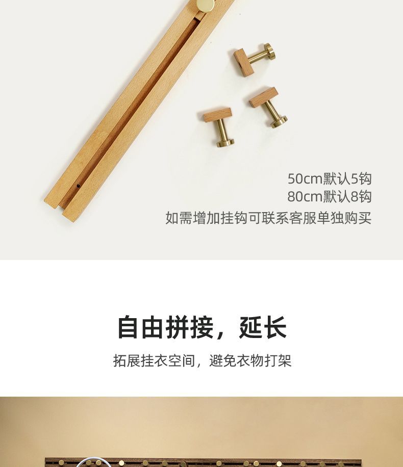 可移动实木挂衣钩免打孔创意入户进门挂钩卧室玄关挂衣架墙上壁挂