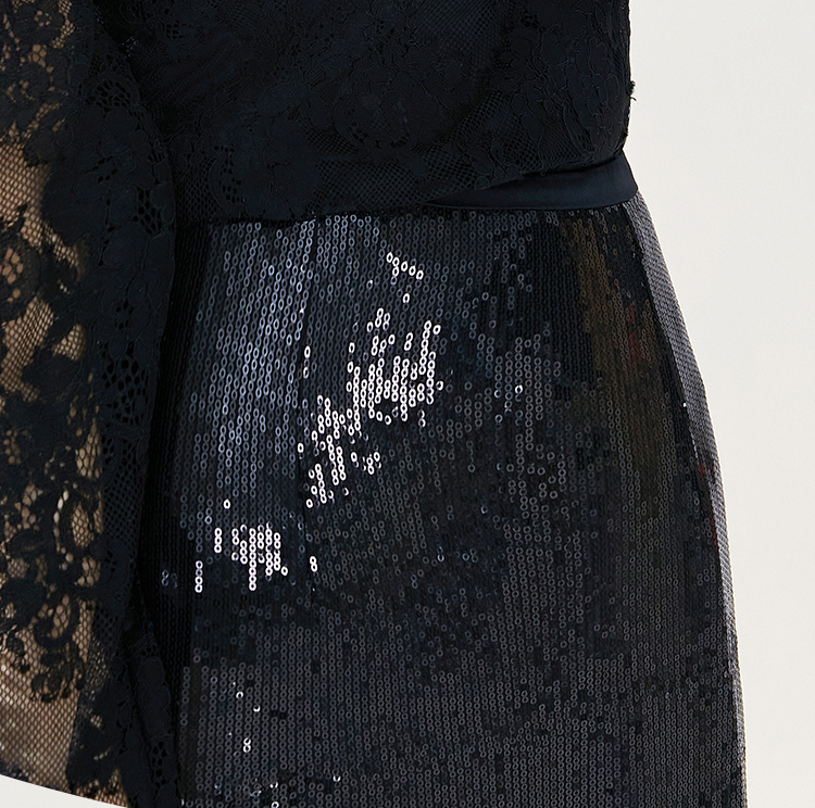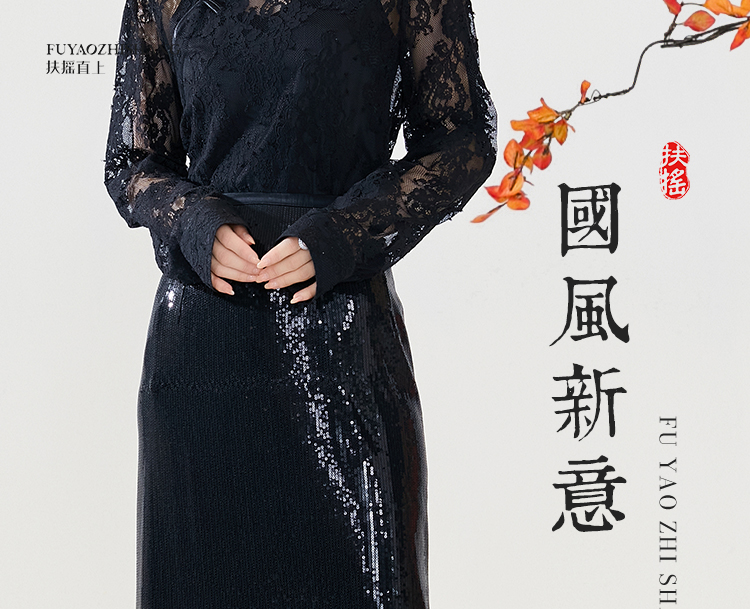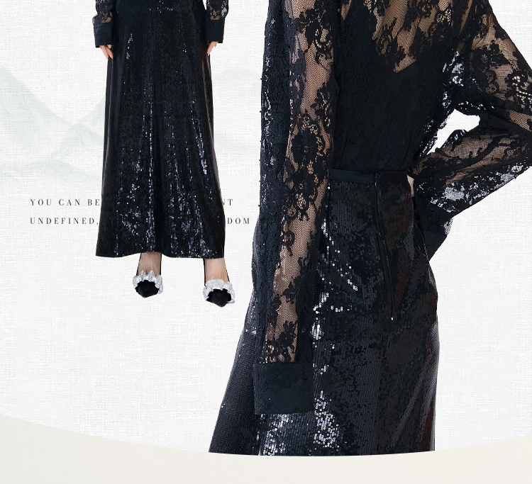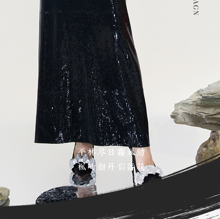FUYAO扶摇 半身裙女2024新款设计感黑色亮片西装裙后开叉性感裙子