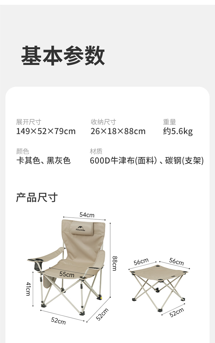 【积分兑换】挪客(NatureHike)暮望T05J连桌休闲躺椅 卡其色 CNK2350JJ011