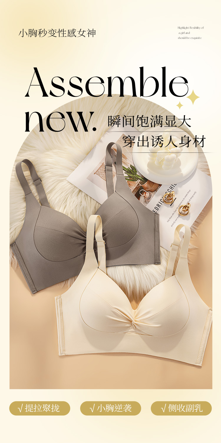 提拉聚拢一穿就挺小胸显大内衣上托聚拢收副乳调整型文胸罩流盈之蝶
