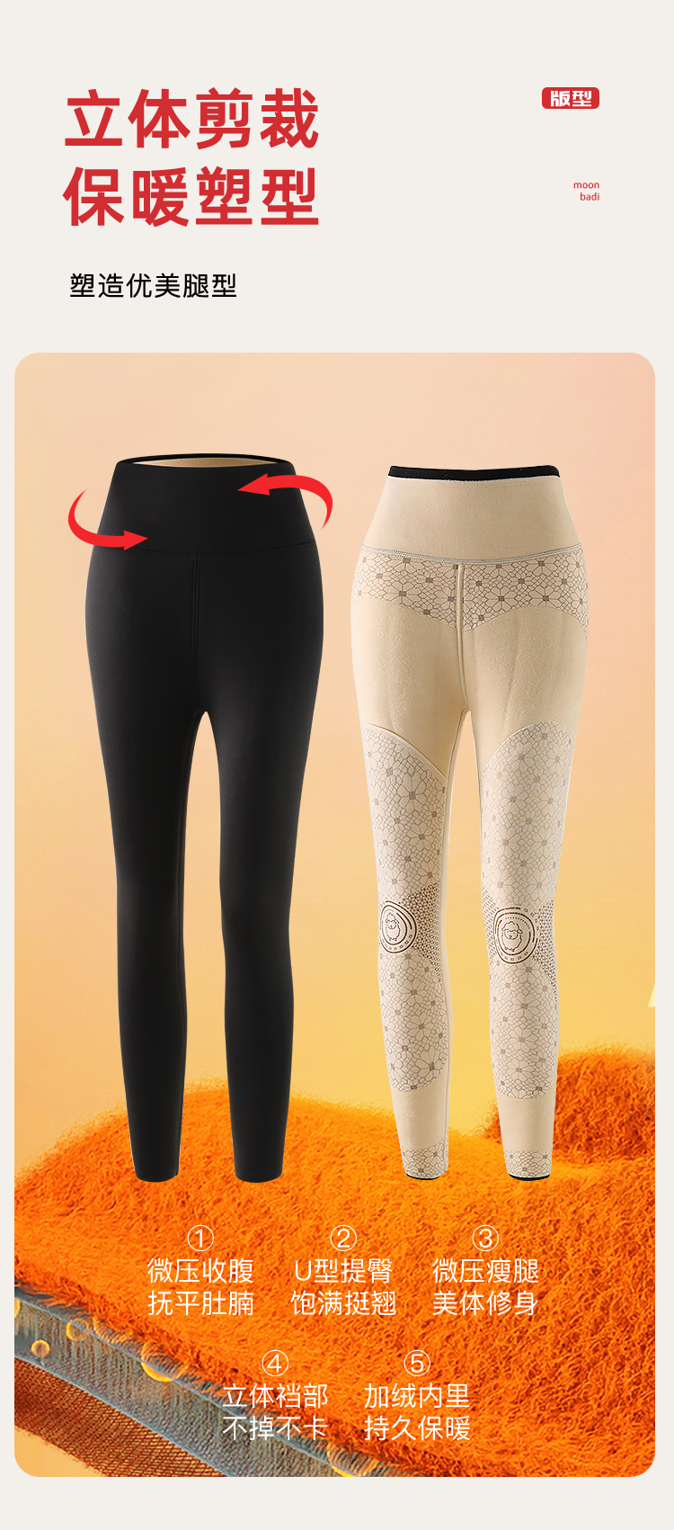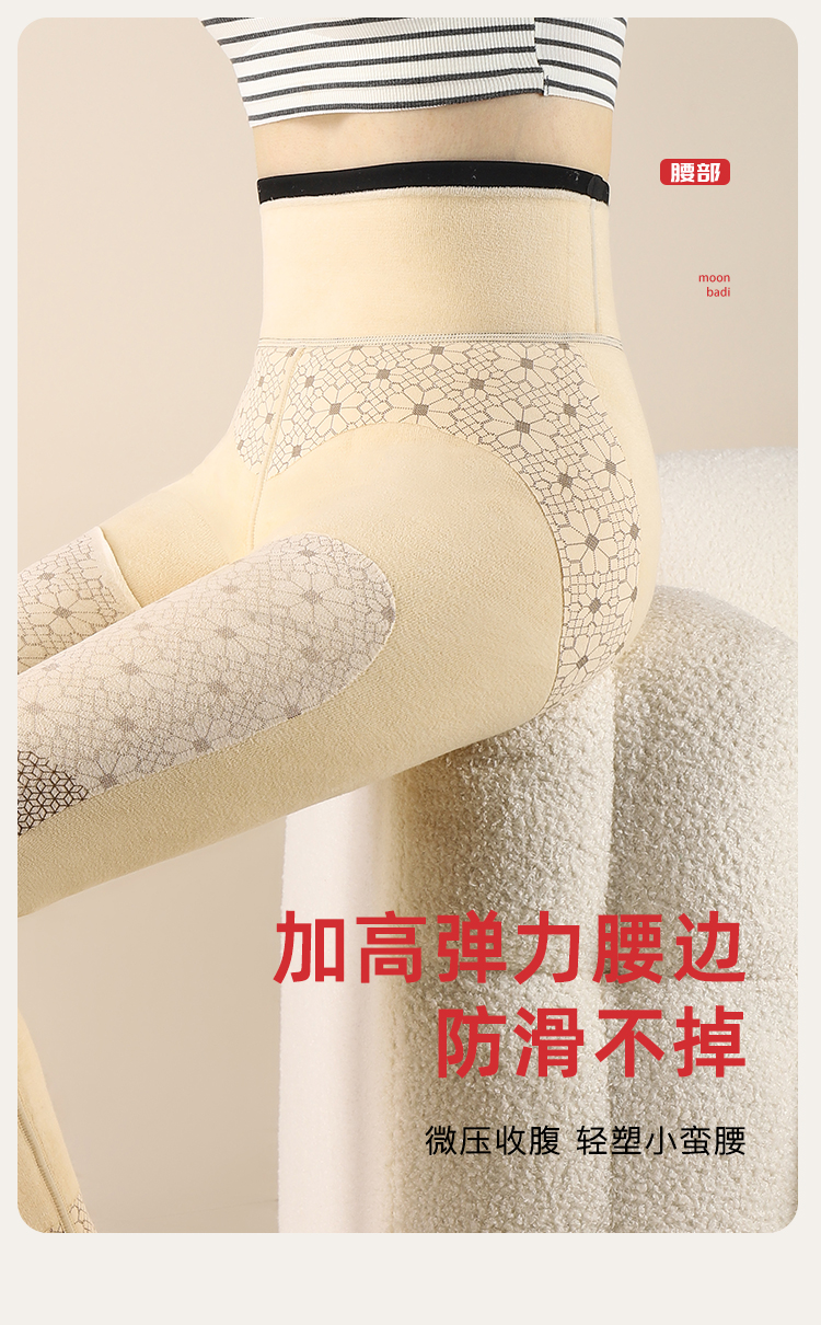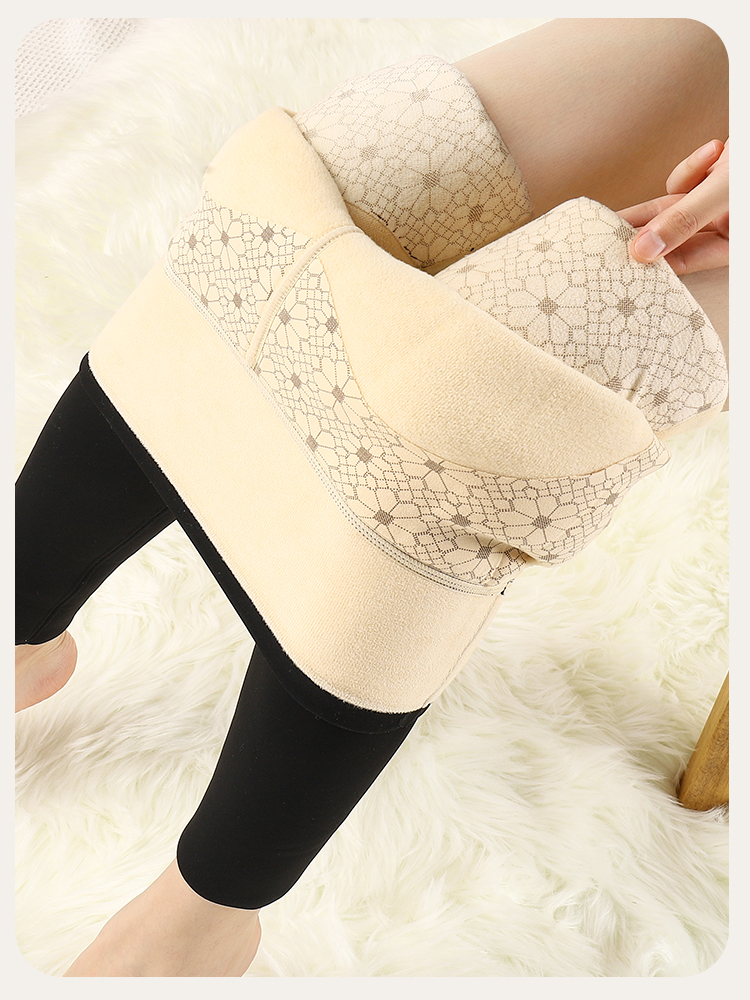 100%绵羊毛填充880克密度加绒加厚打底裤女高腰收腹提臀加厚芭比裤