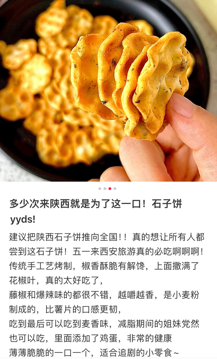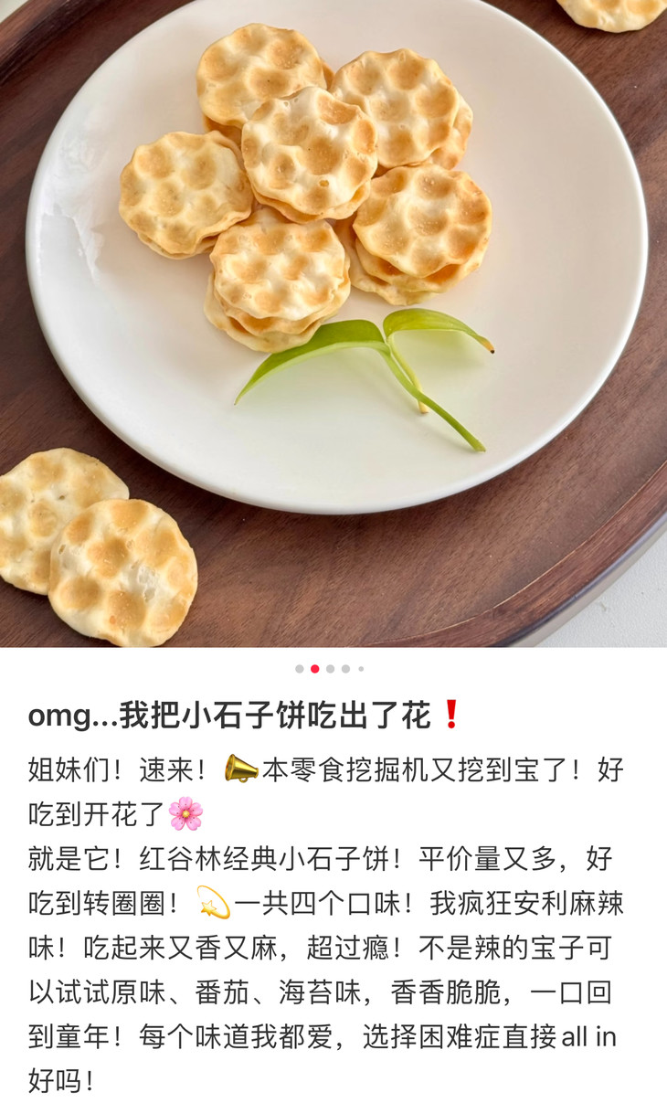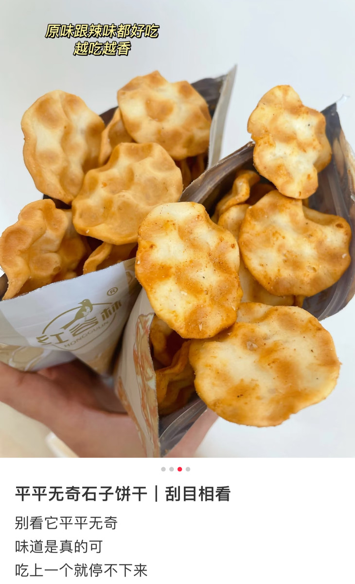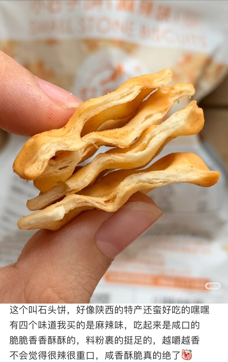 别看长得朴实,个头也迷你,但真的巨好吃,很脆很香,一口一个,好难停下来!作为陕西非遗级面食零食,麦香混着各种口味的调味,胃弱的人吃着也舒服,下午嘴馋也不用硬扛啦,囤两包小石子饼在办公室,饿了嚼两片,脆香不腻还没负担,中国胃吃着超舒服!我自己最喜欢原味、海苔味和番茄味,妥妥的中式脆片天花板!