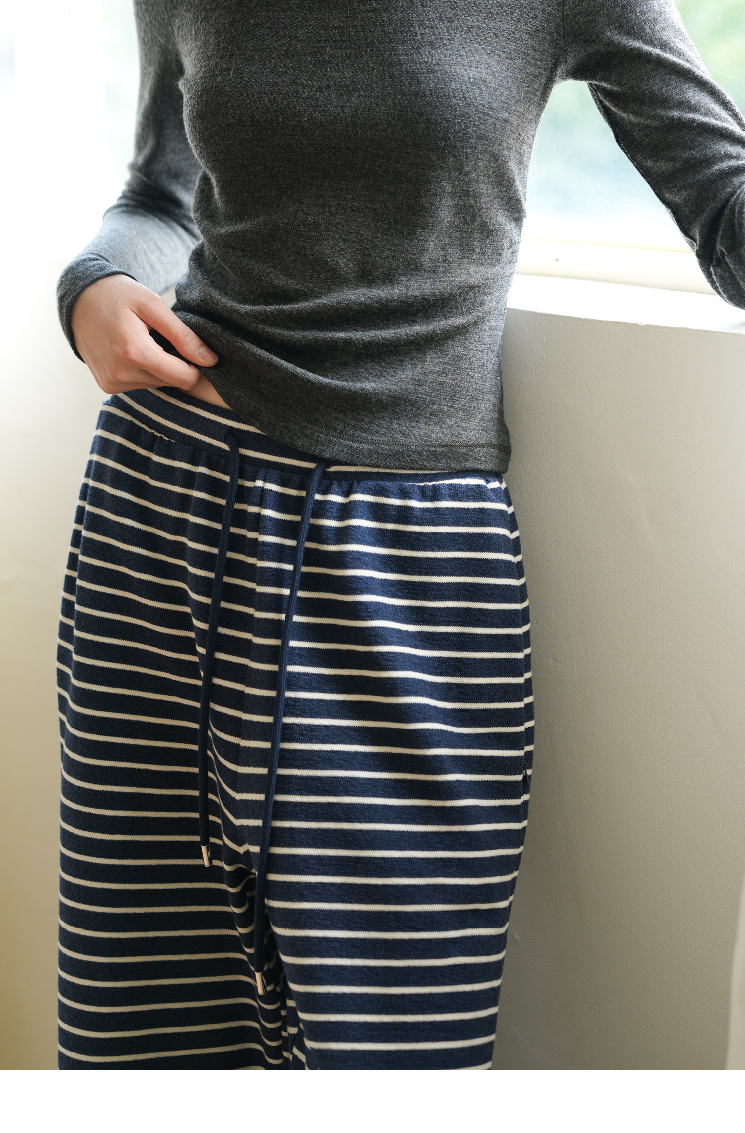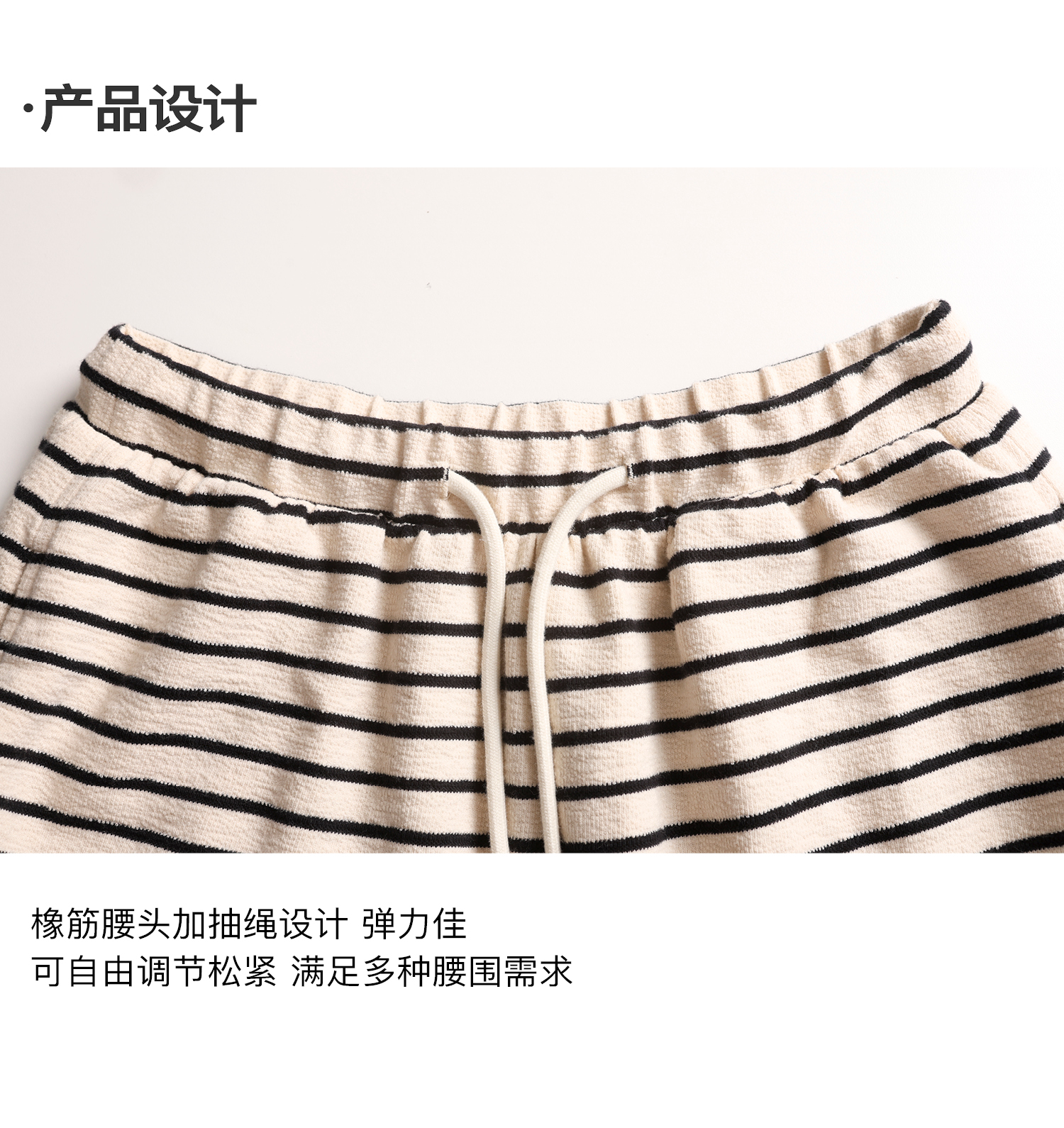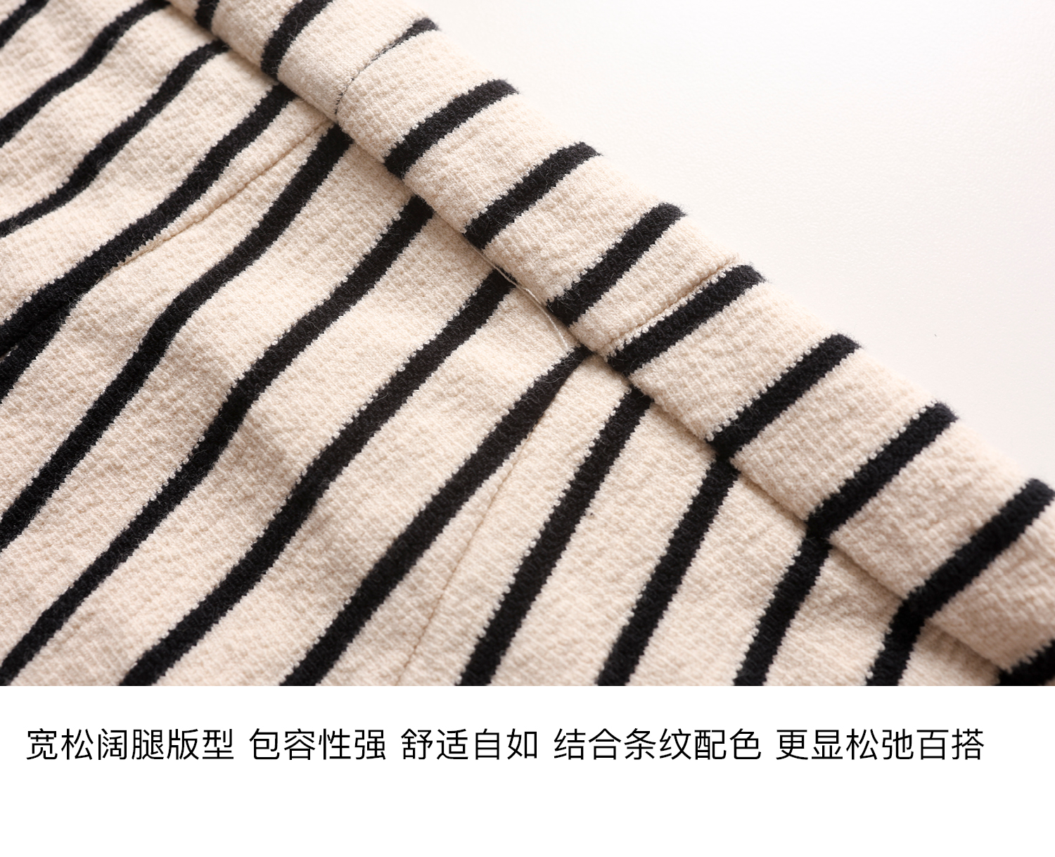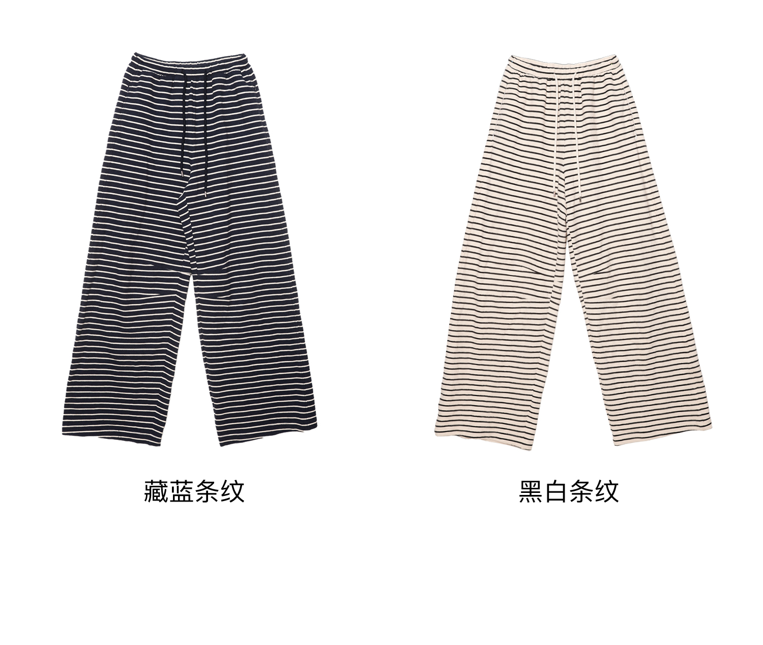 素舶 天然肌理棉舒适垂感撞色条纹宽松阔腿抽绳慵懒风卫裤长裤女