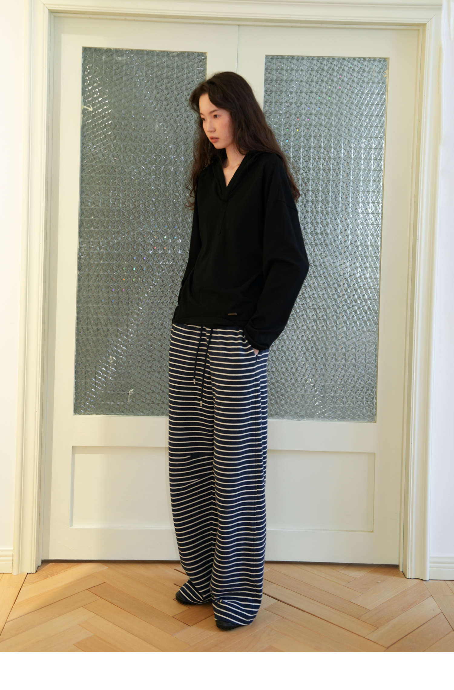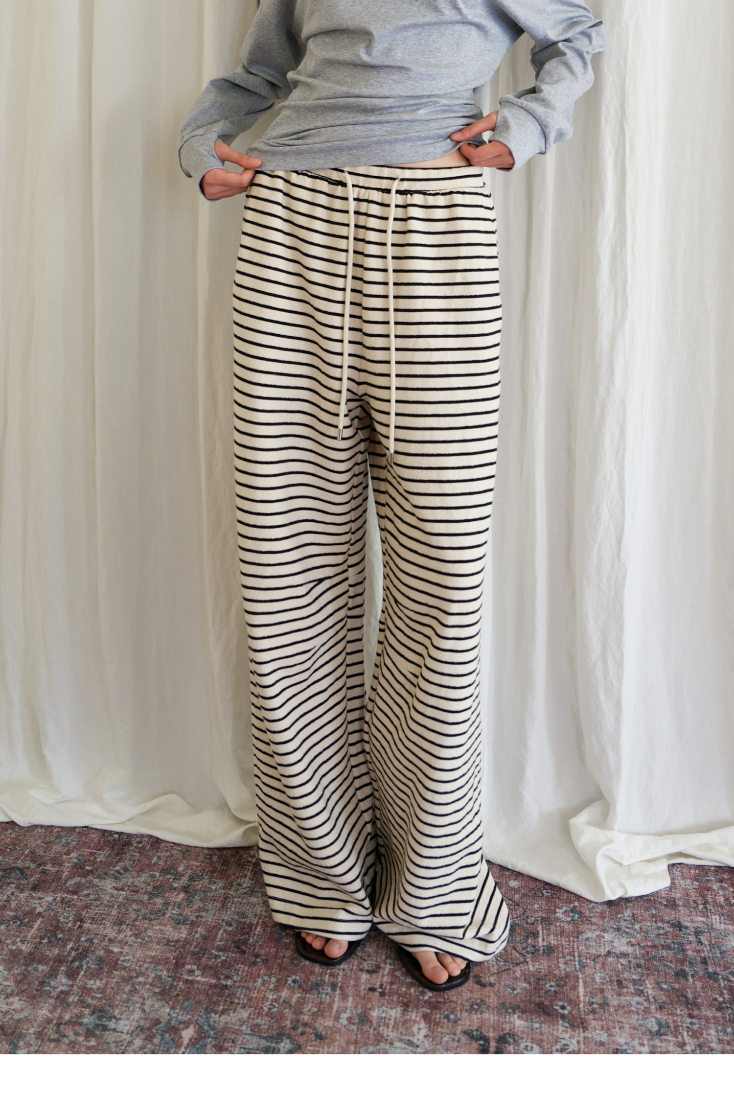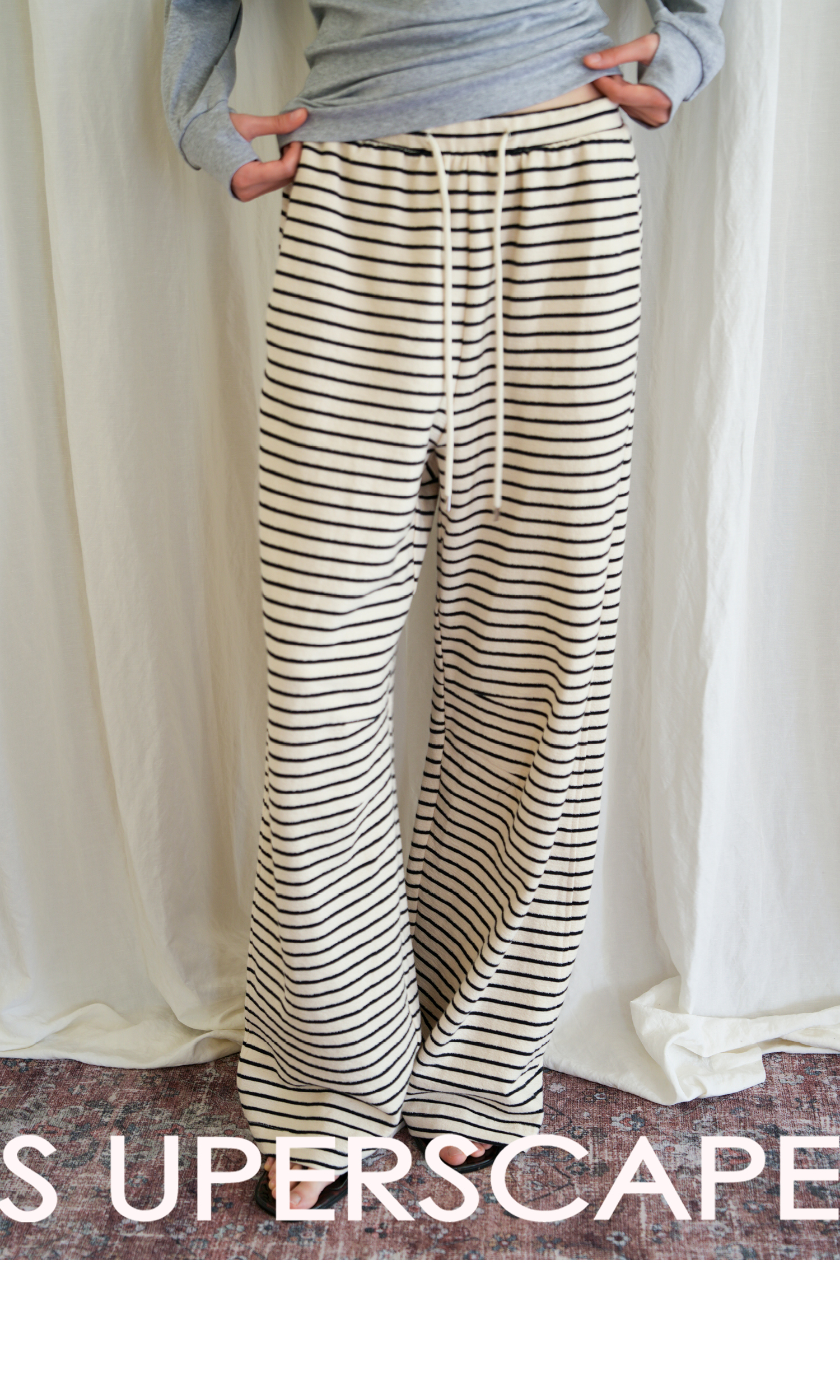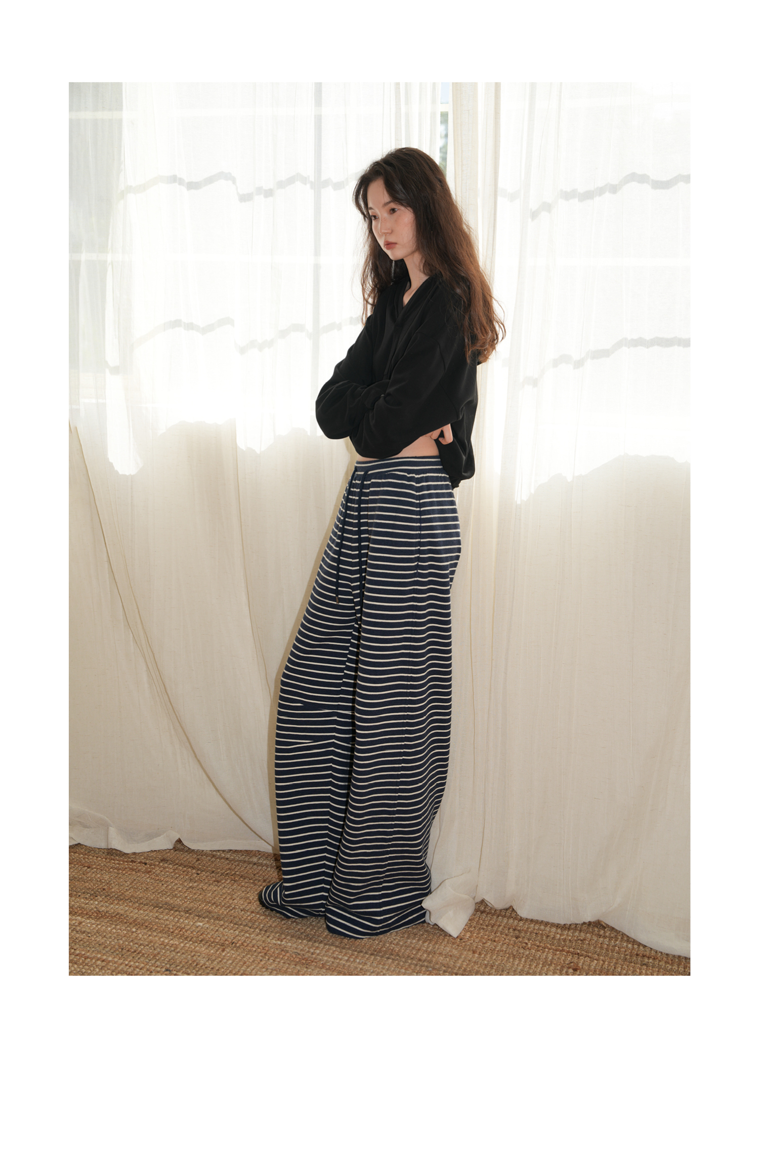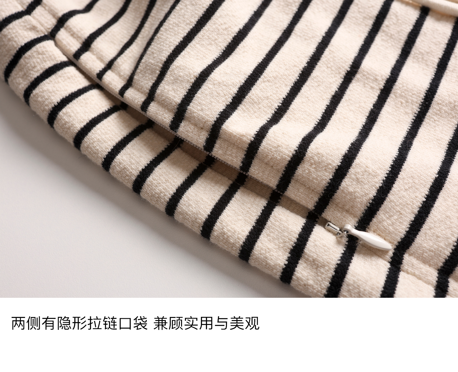 素舶 天然肌理棉舒适垂感撞色条纹宽松阔腿抽绳慵懒风卫裤长裤女