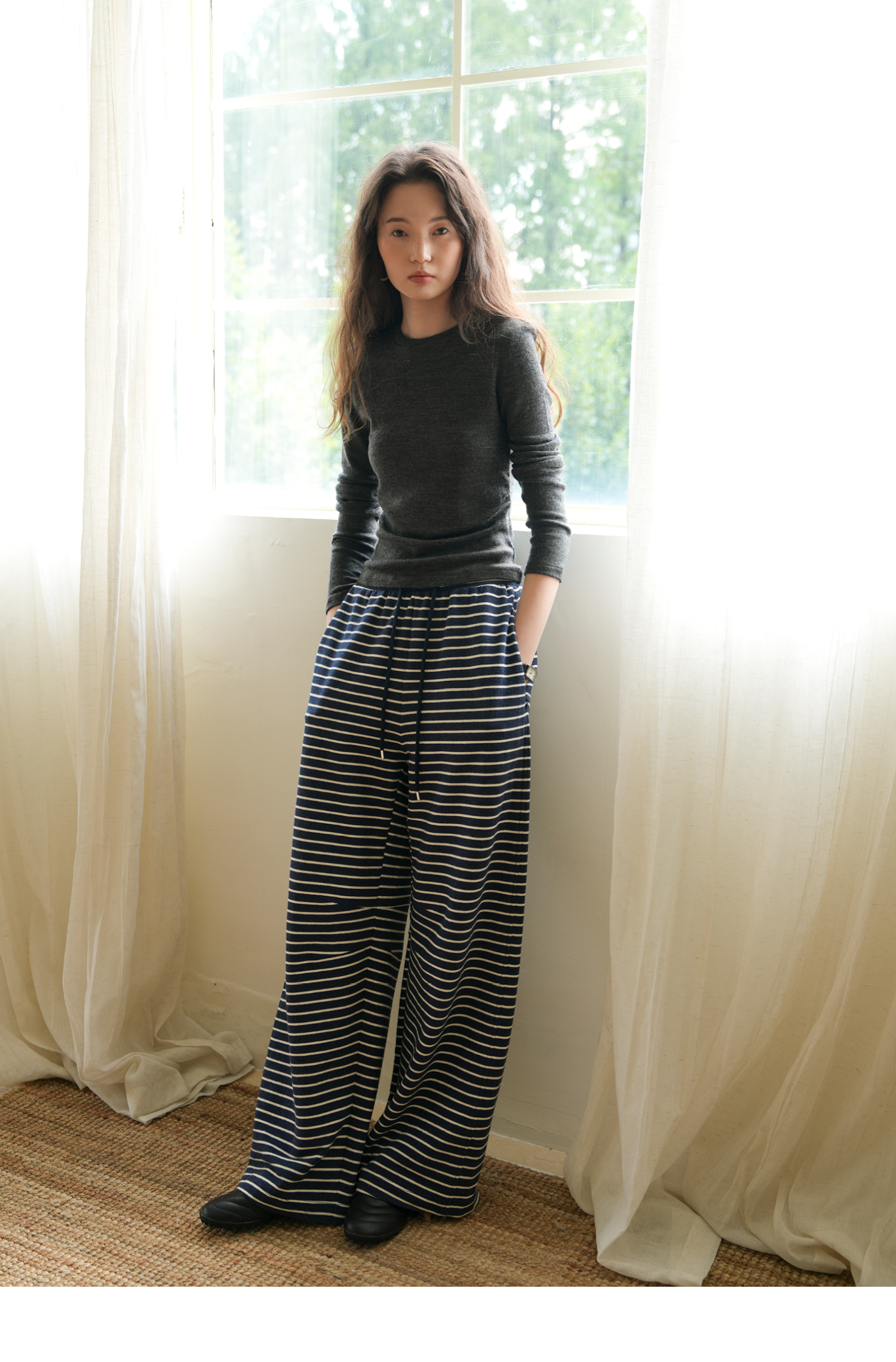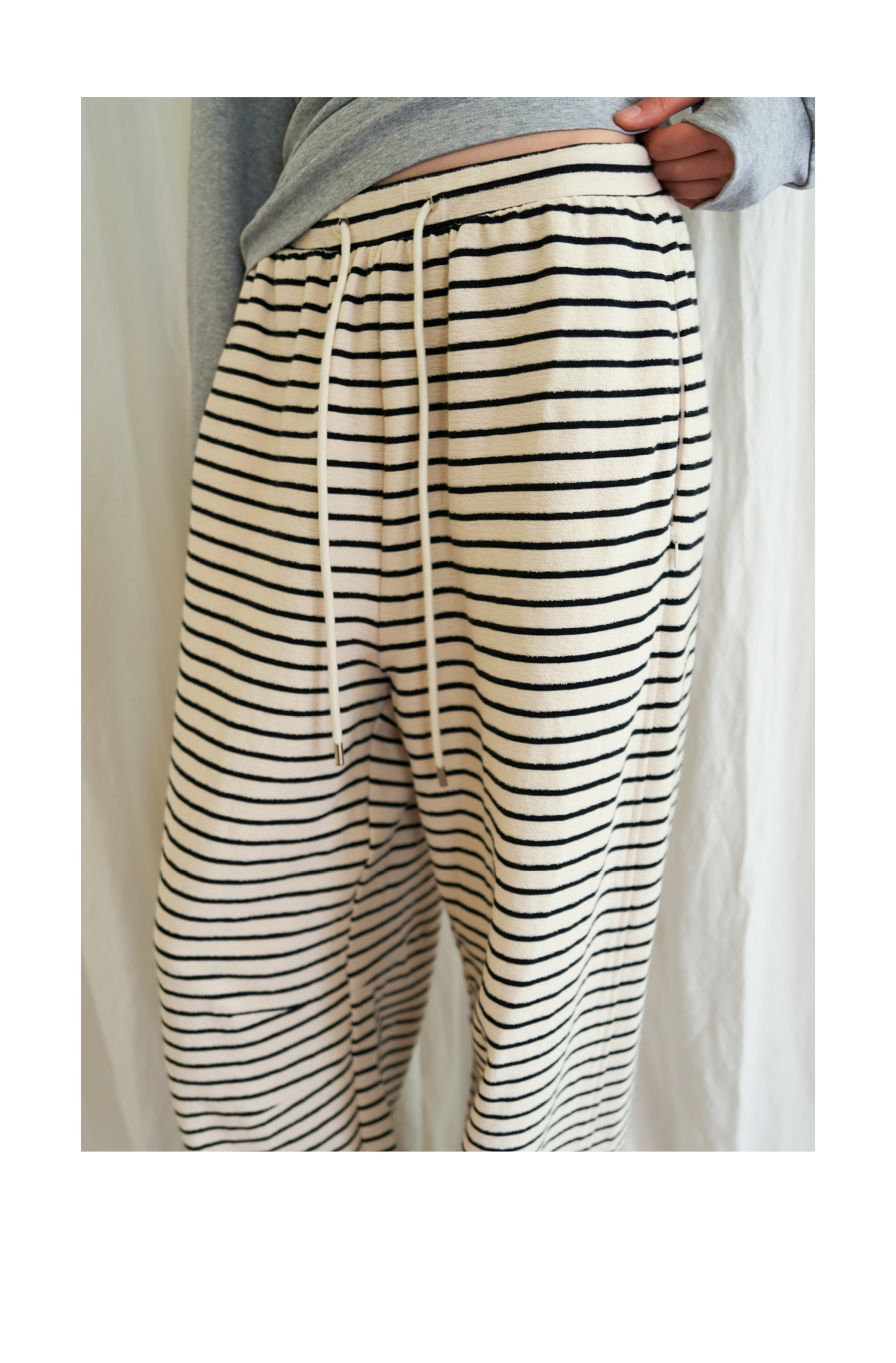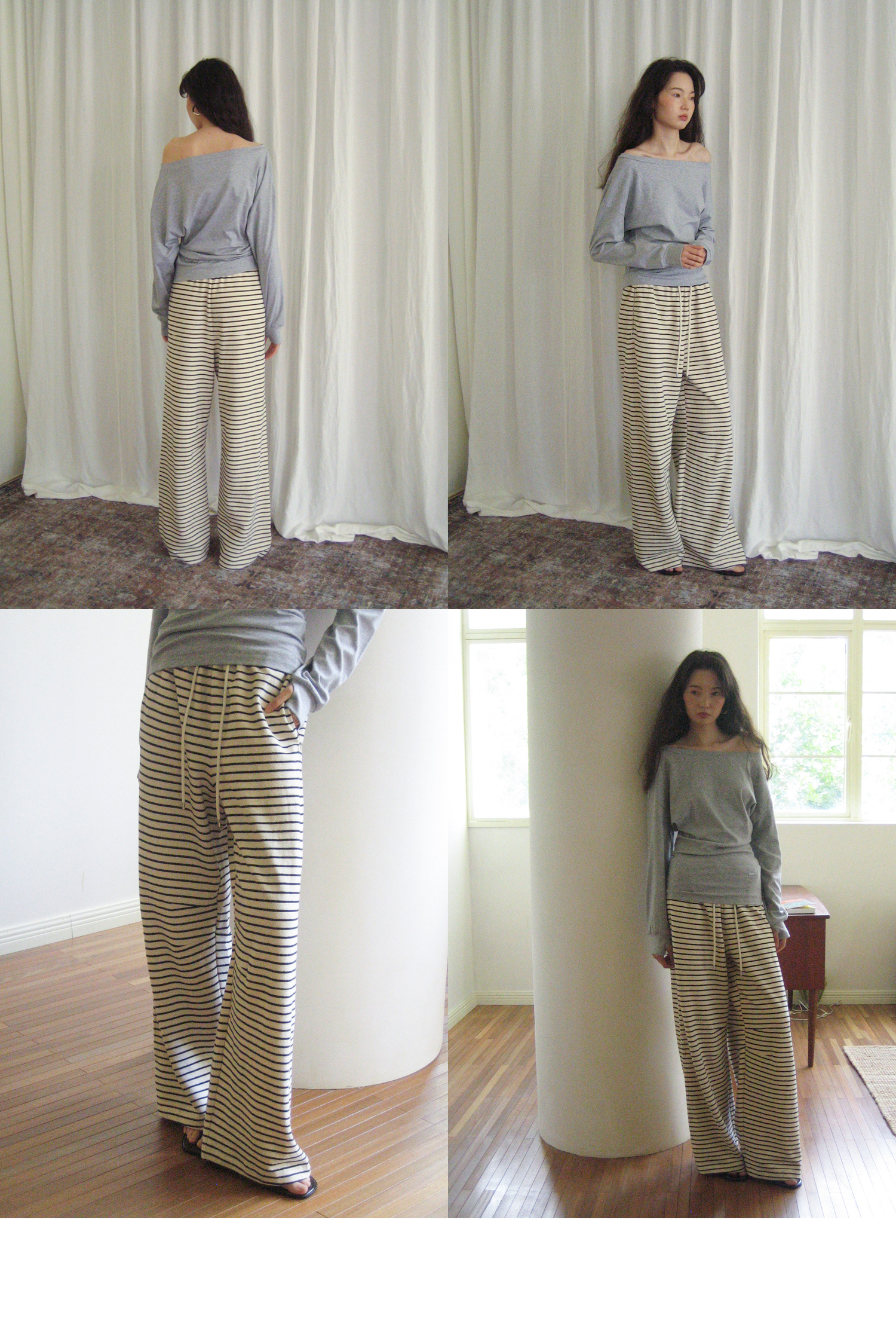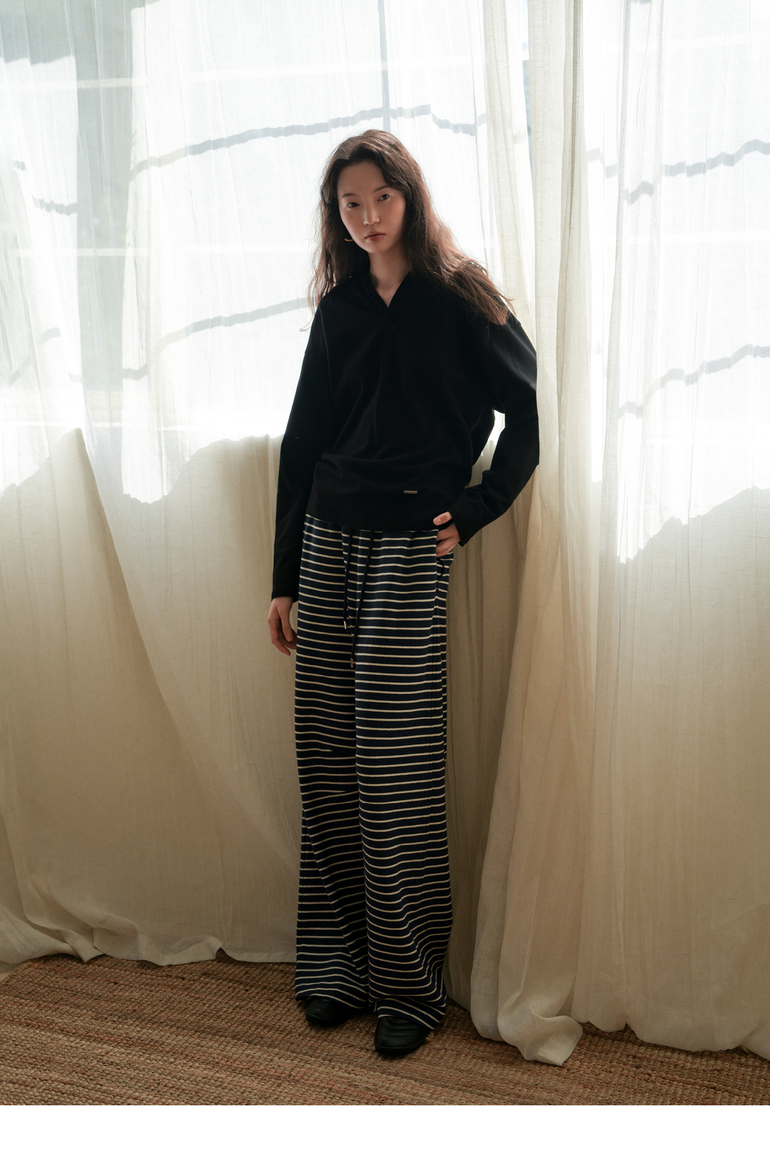 素舶 天然肌理棉舒适垂感撞色条纹宽松阔腿抽绳慵懒风卫裤长裤女
