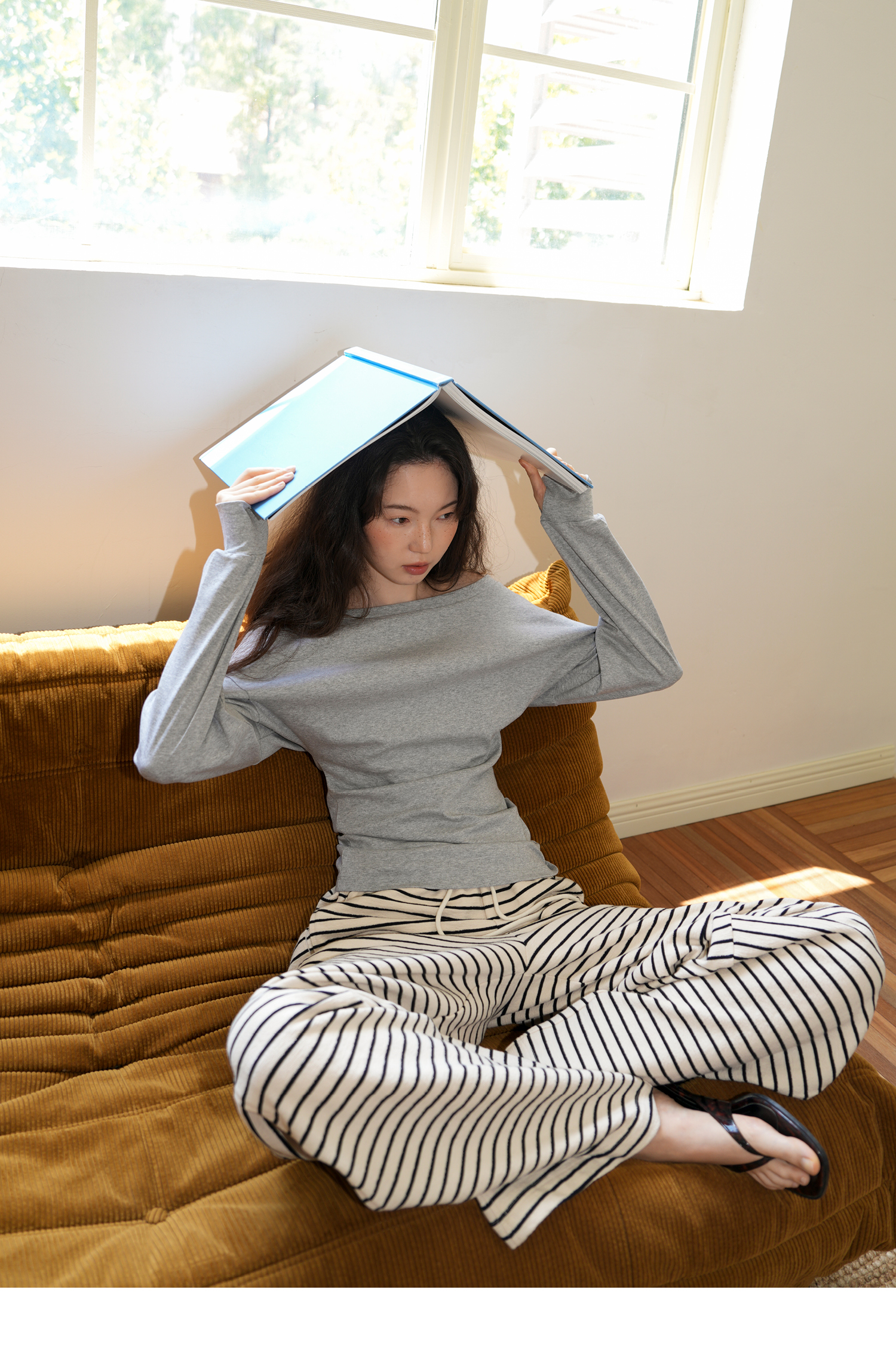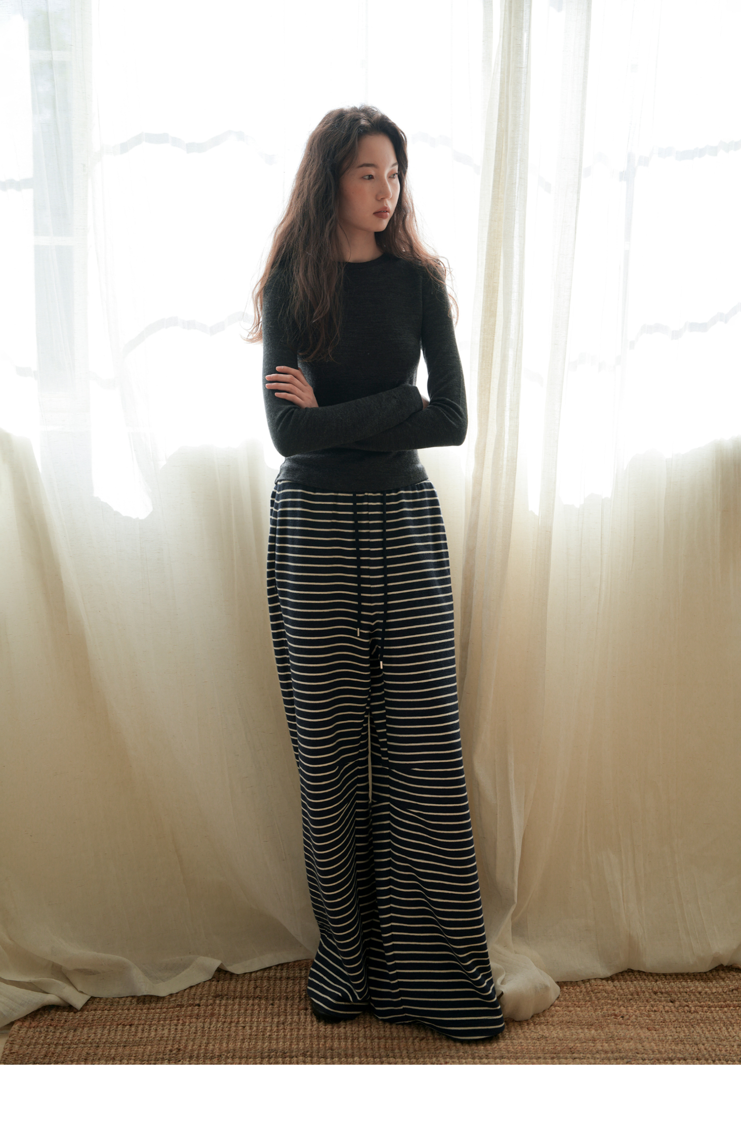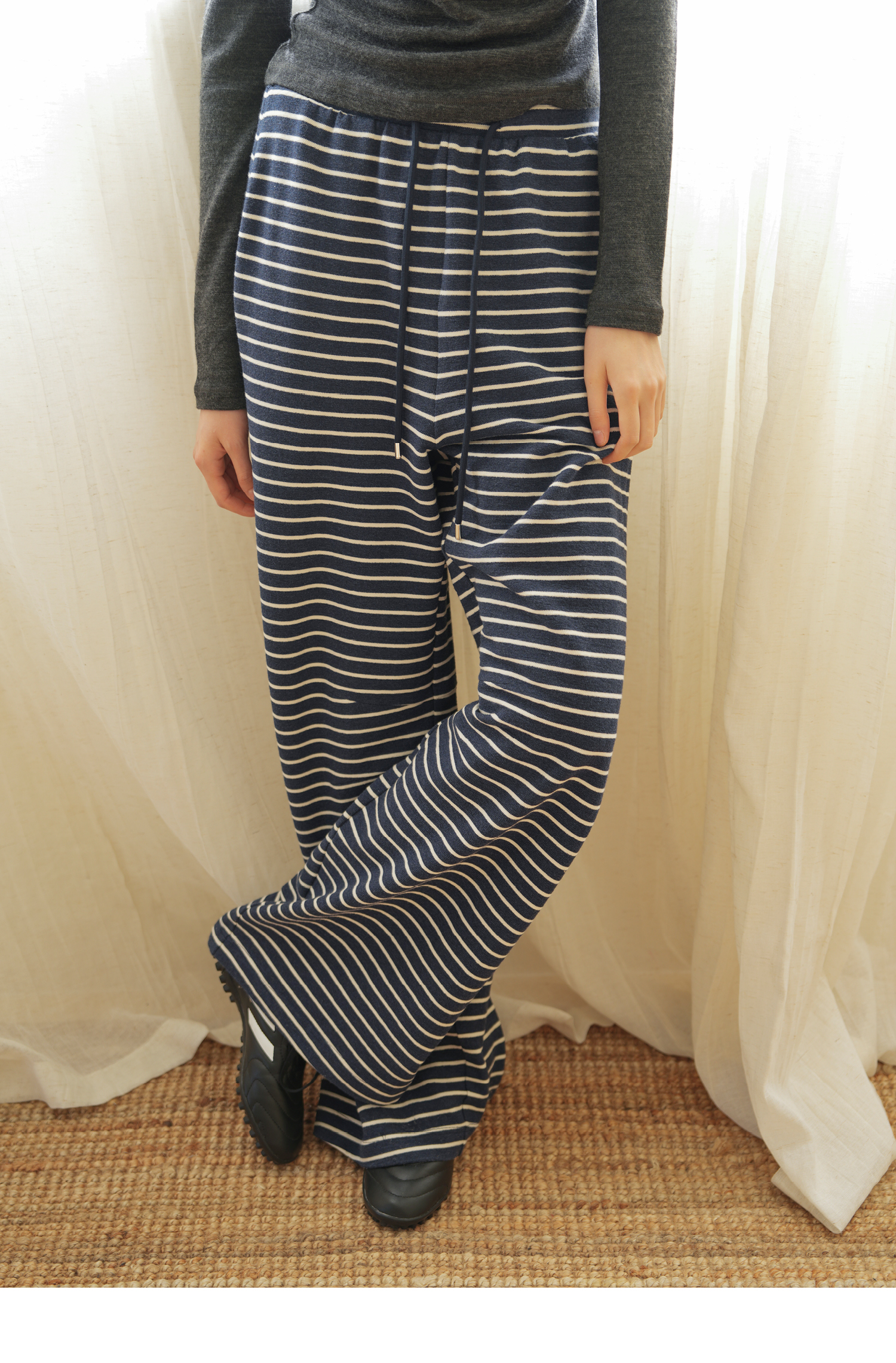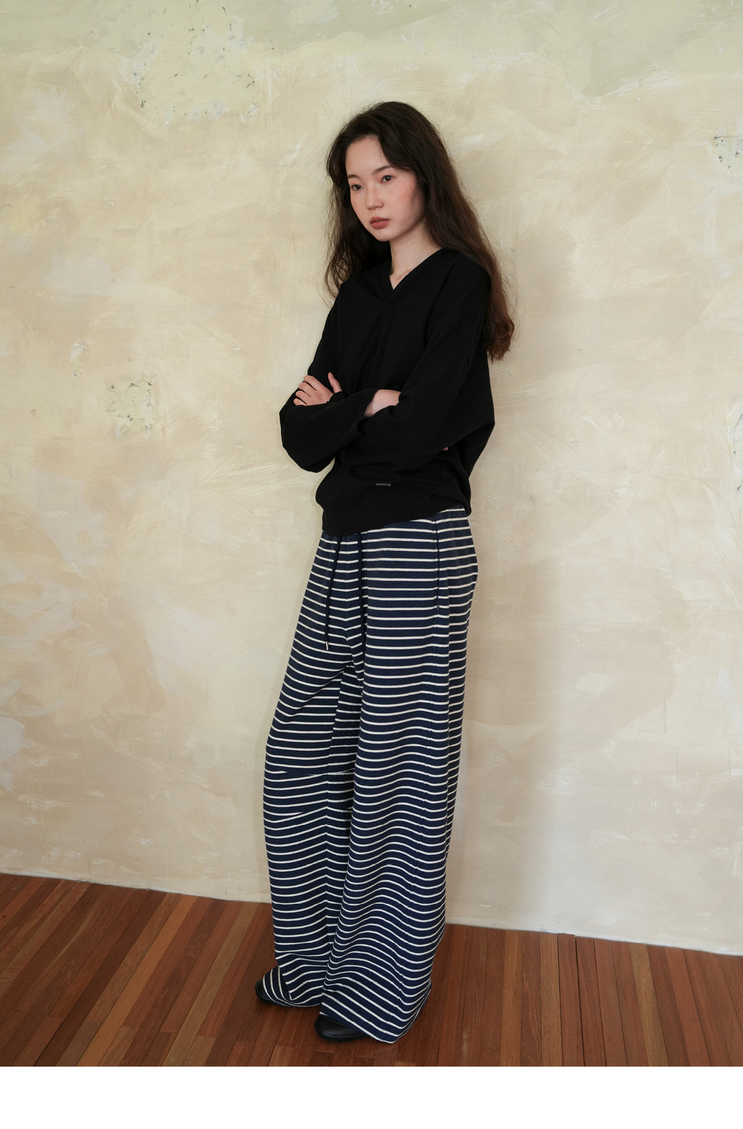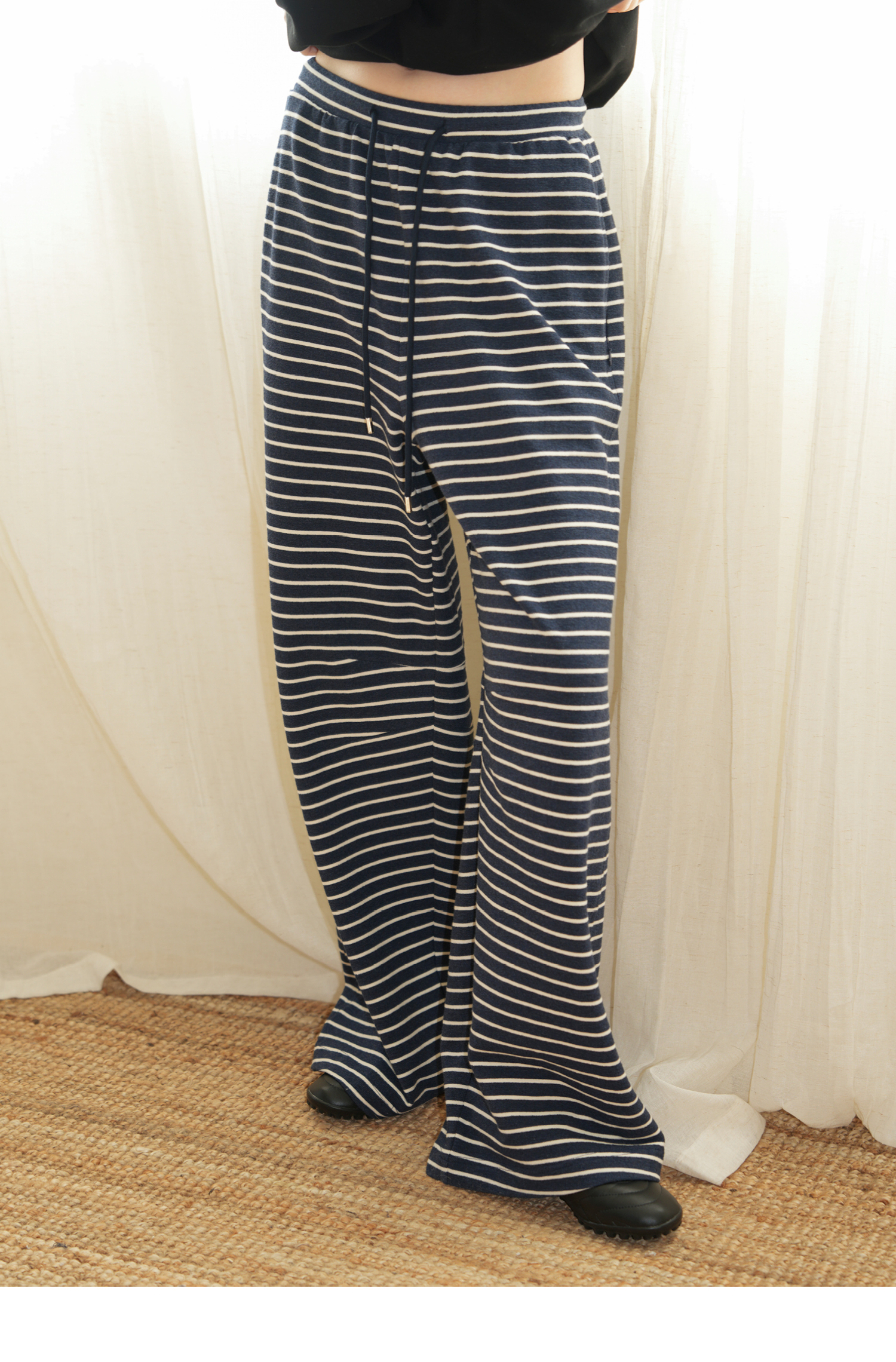 素舶 天然肌理棉舒适垂感撞色条纹宽松阔腿抽绳慵懒风卫裤长裤女