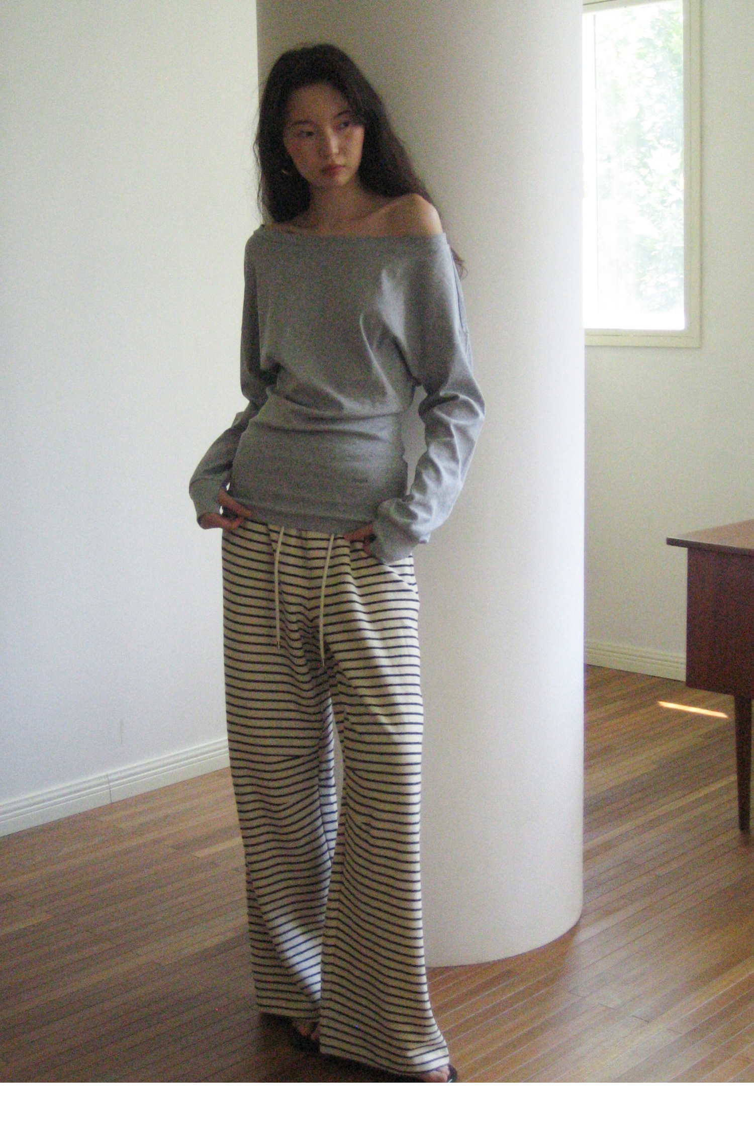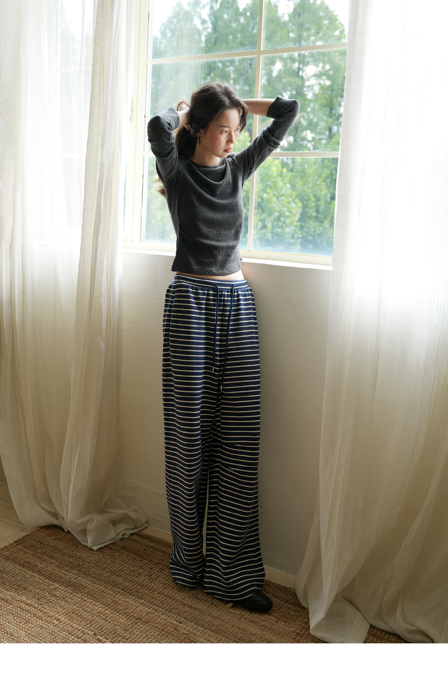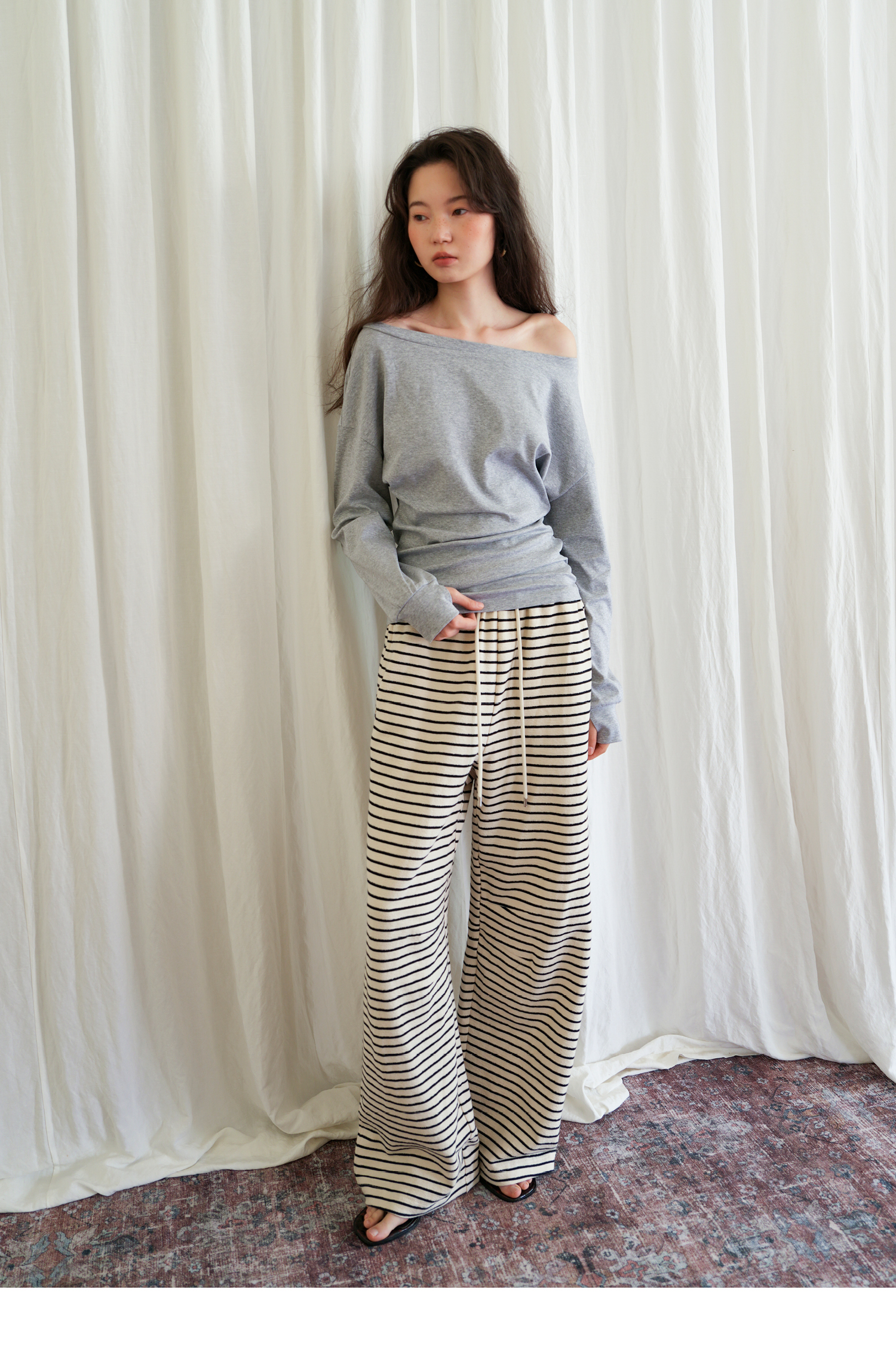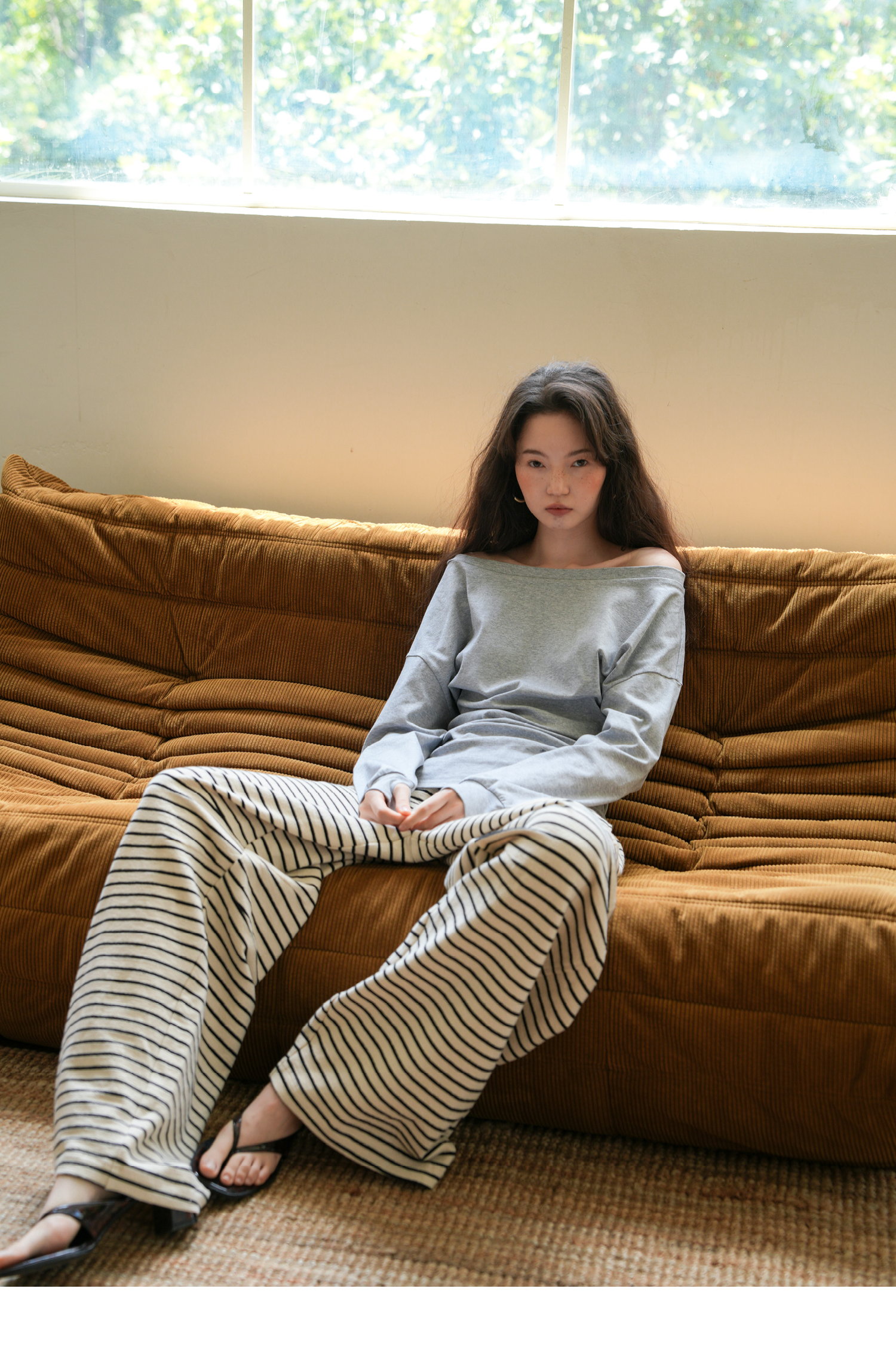 素舶 天然肌理棉舒适垂感撞色条纹宽松阔腿抽绳慵懒风卫裤长裤女