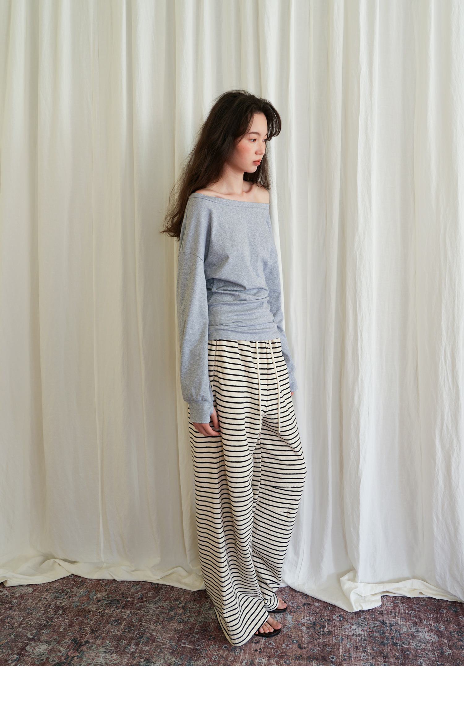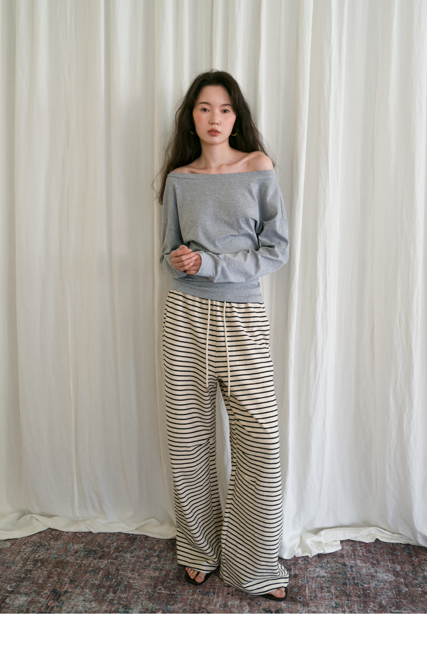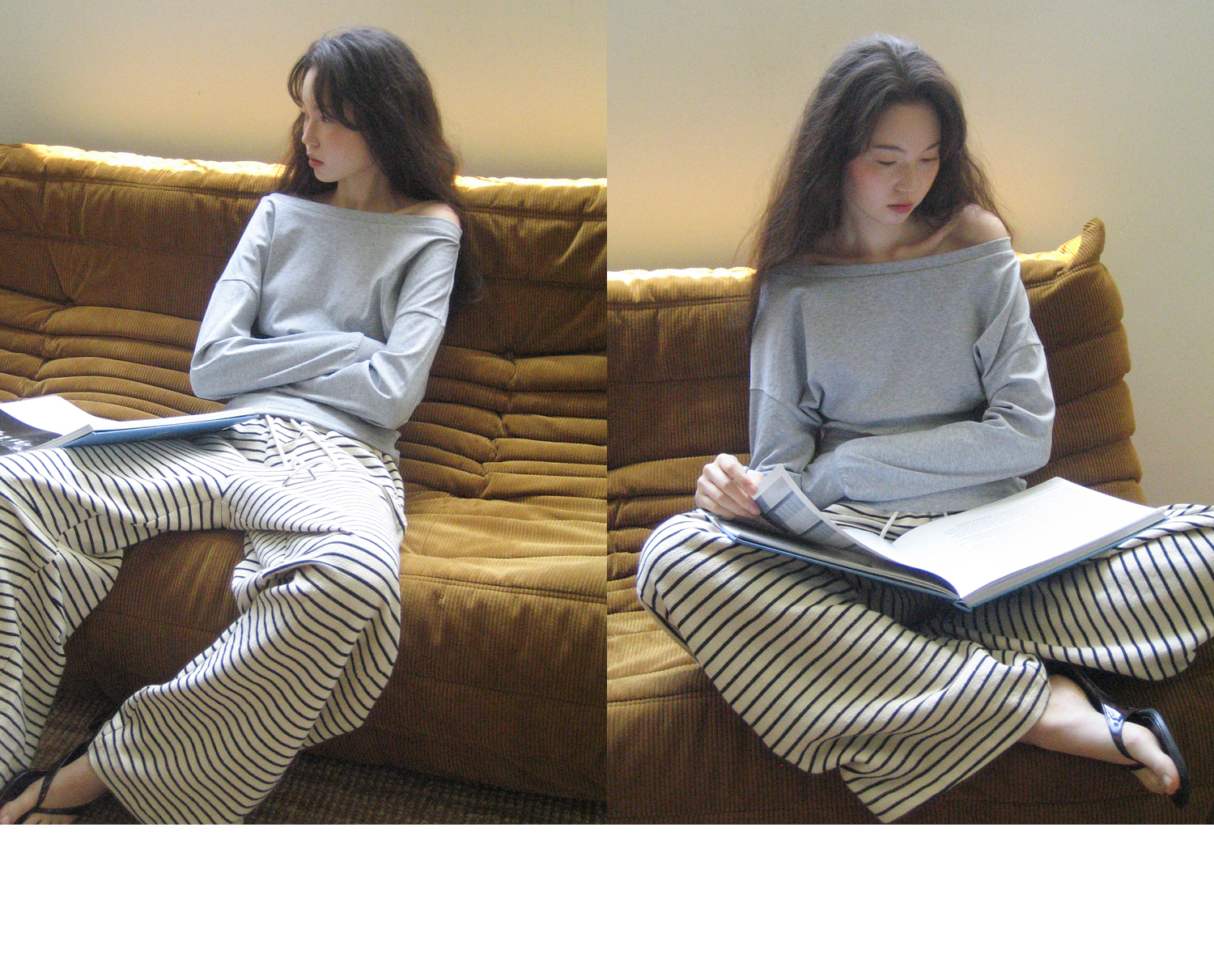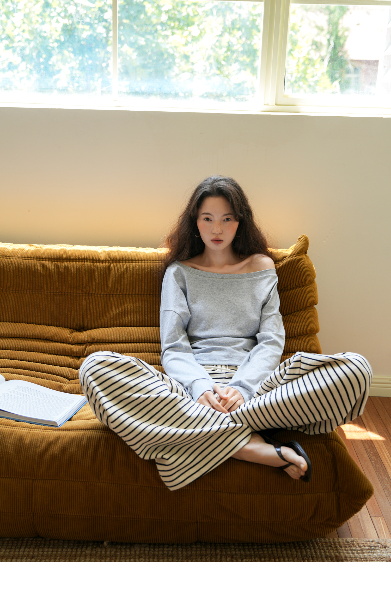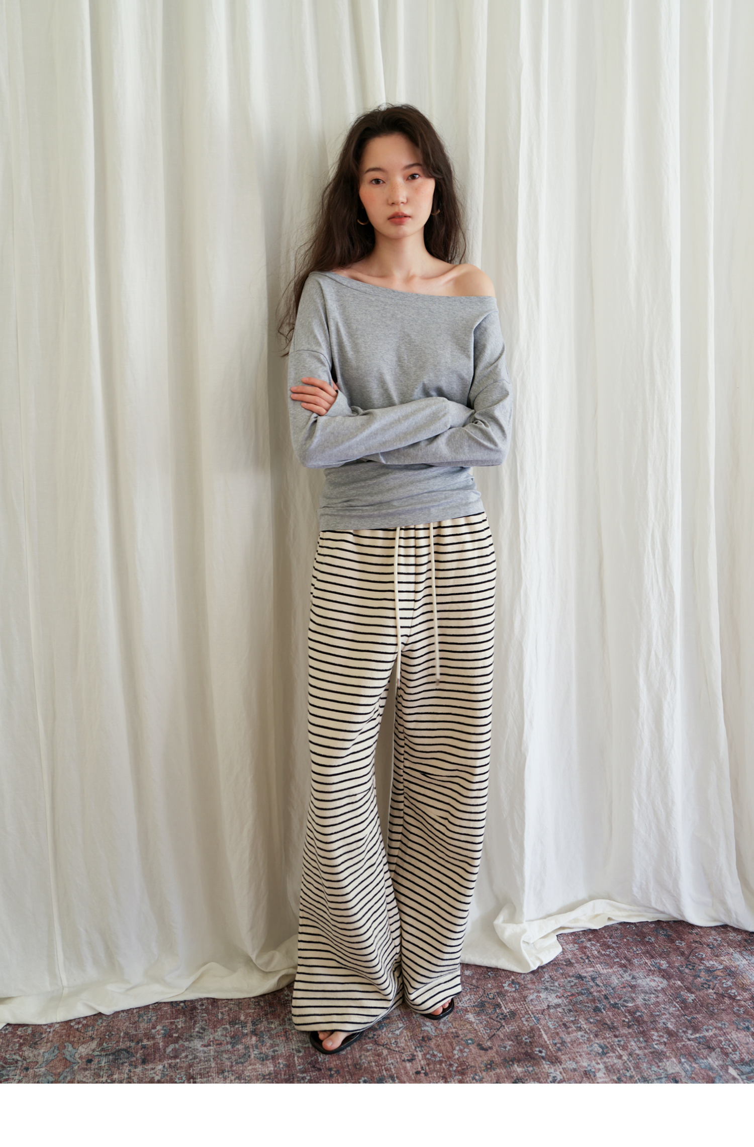 素舶 天然肌理棉舒适垂感撞色条纹宽松阔腿抽绳慵懒风卫裤长裤女