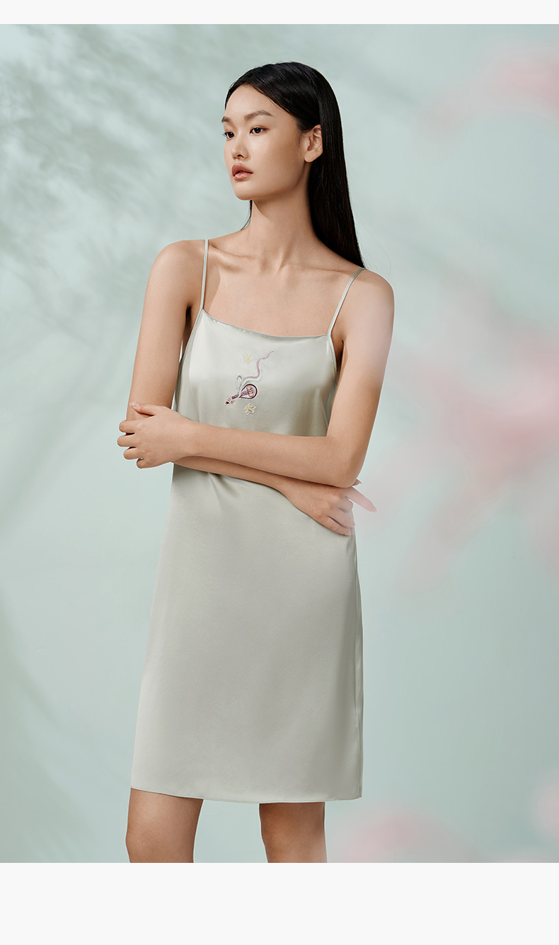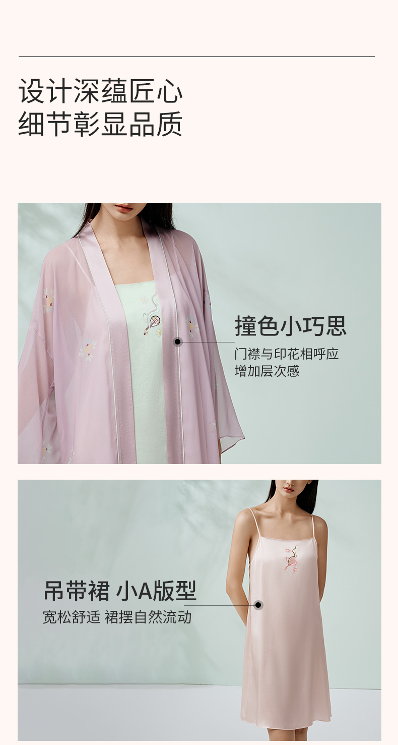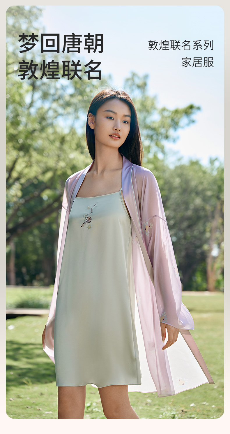 金三塔敦煌联名国风真丝睡袍女100%桑蚕丝吊带裙睡衣家居服 YSFFB101/YSFFB302
