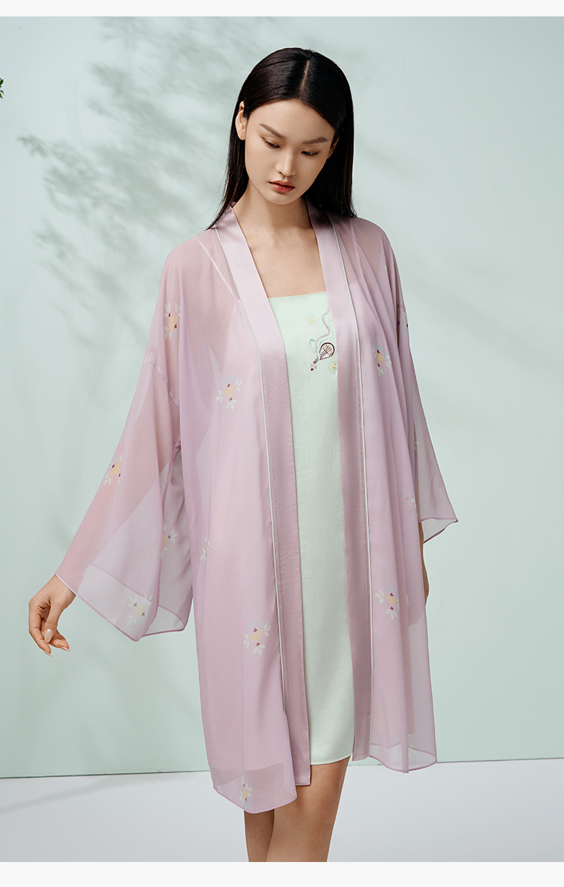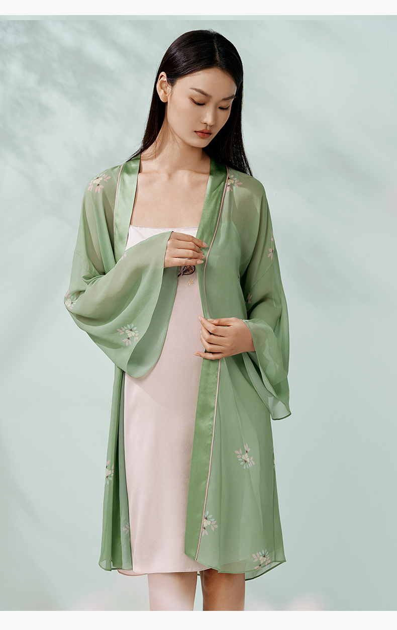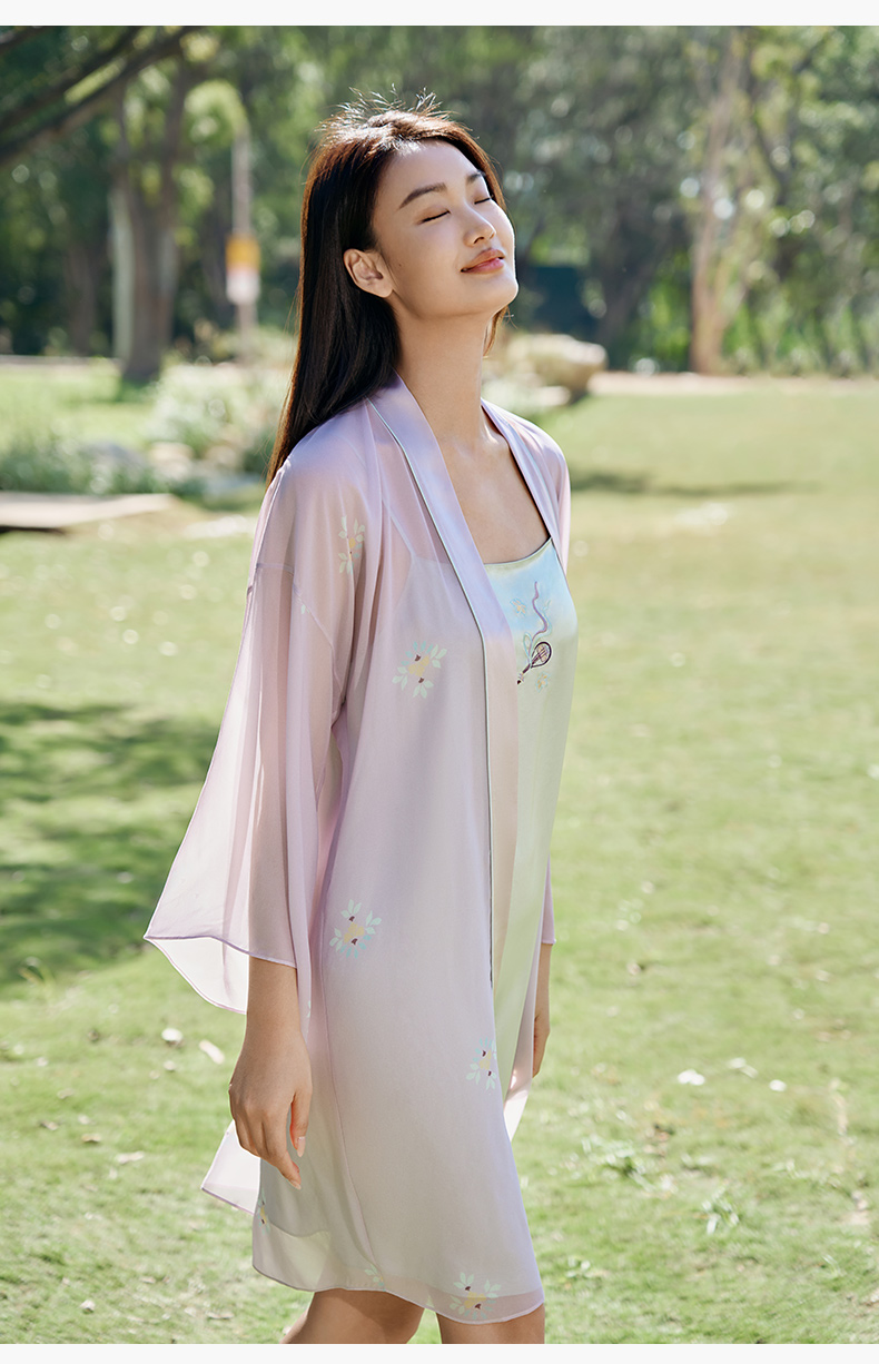 金三塔敦煌联名国风真丝睡袍女100%桑蚕丝吊带裙睡衣家居服 YSFFB101/YSFFB302