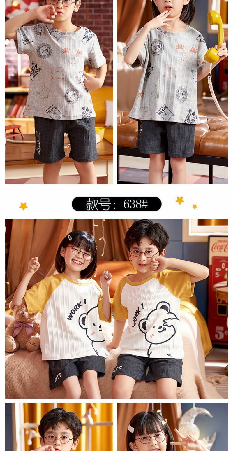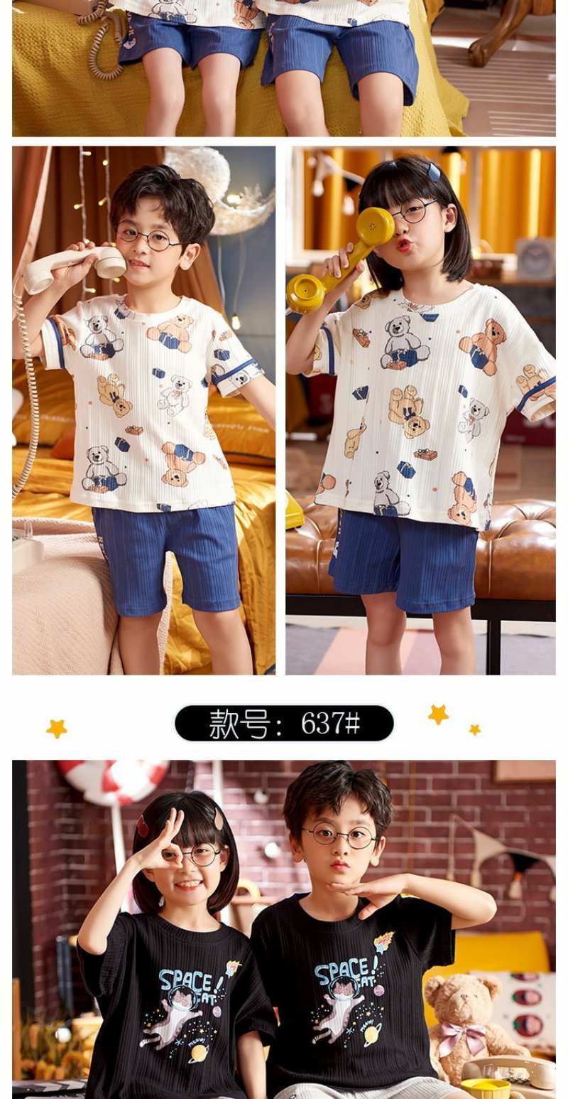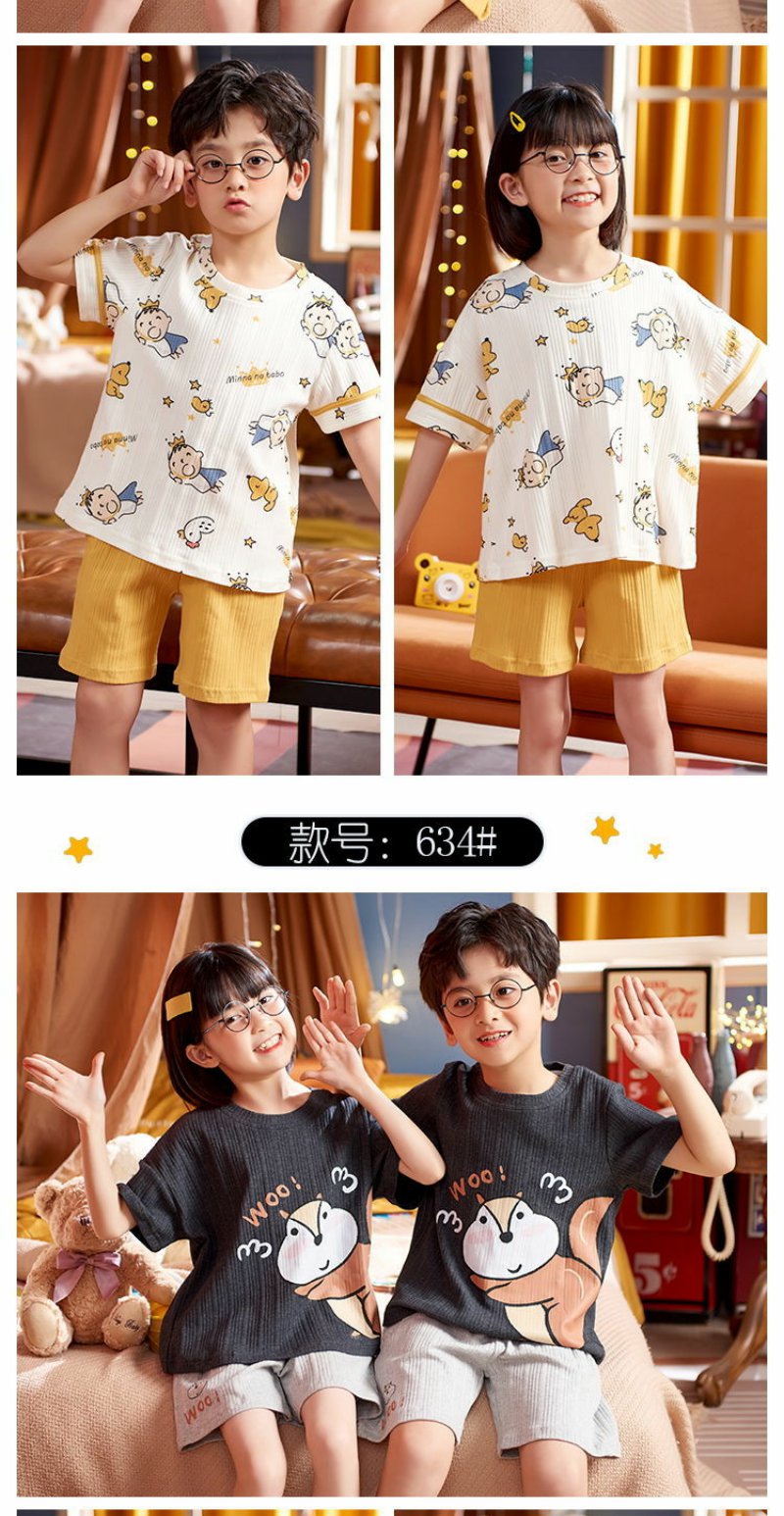 儿童睡衣男女童夏装短袖纯棉夏季薄款男女孩中大童12岁家居服套装