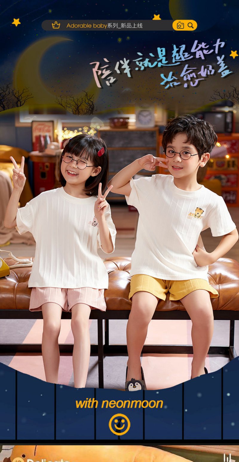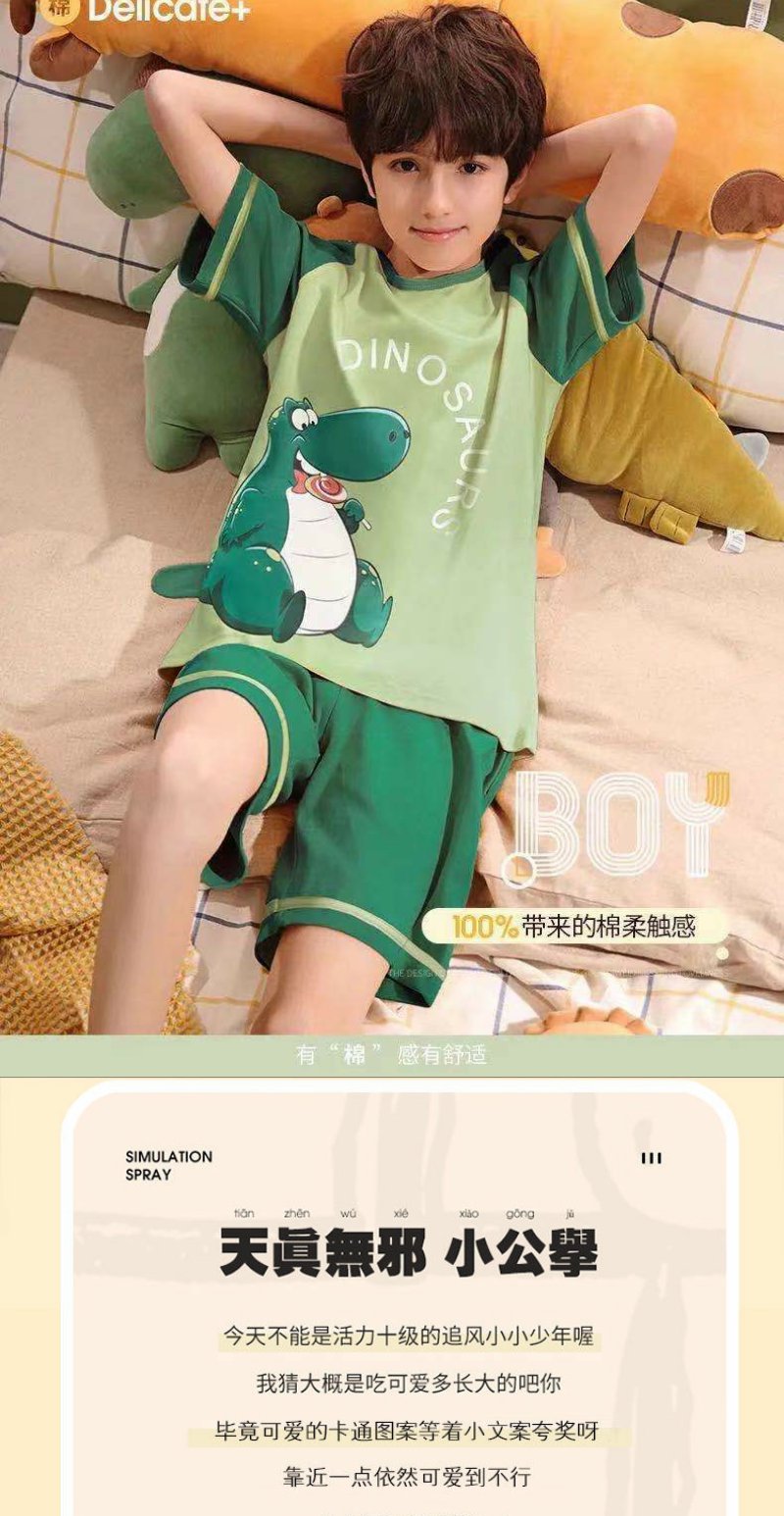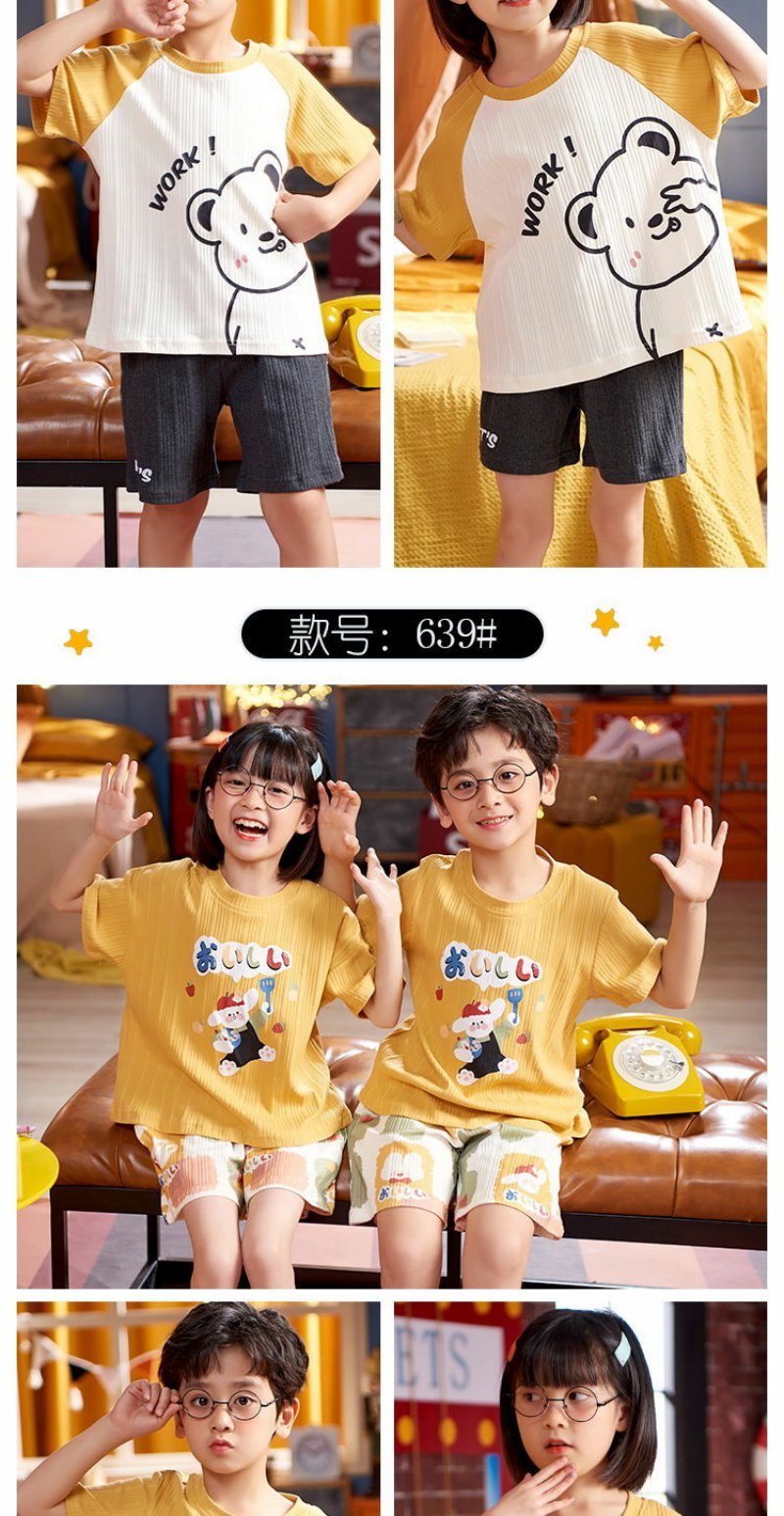 儿童睡衣男女童夏装短袖纯棉夏季薄款男女孩中大童12岁家居服套装