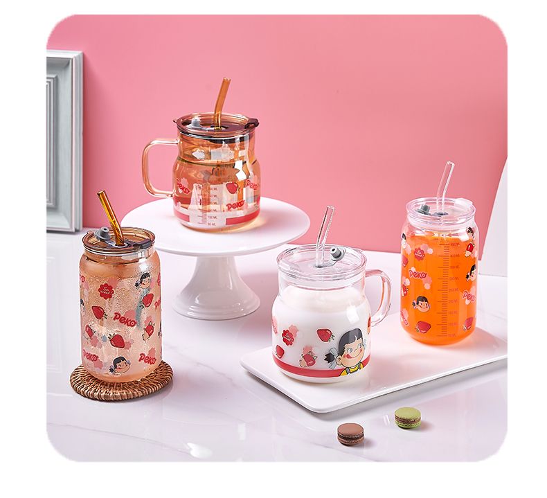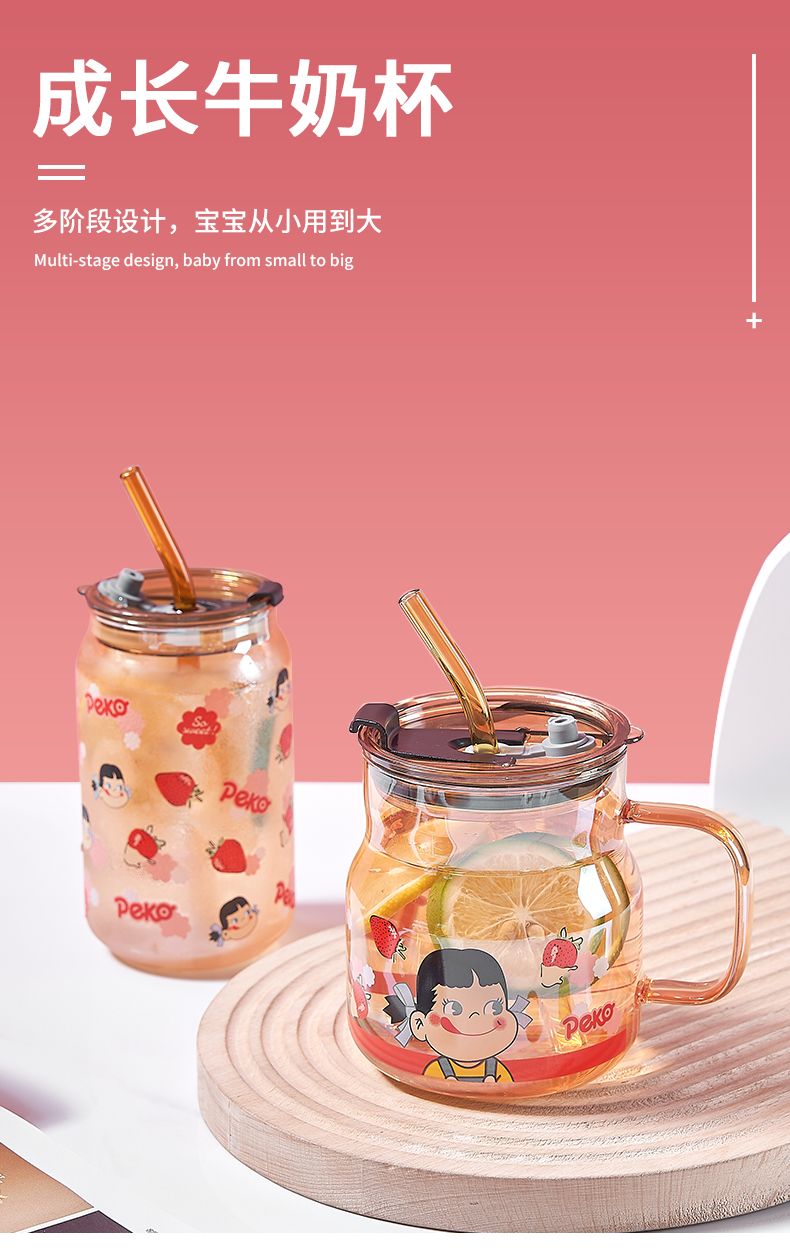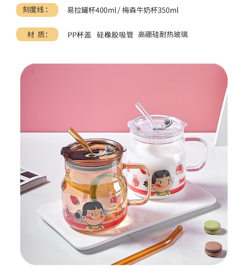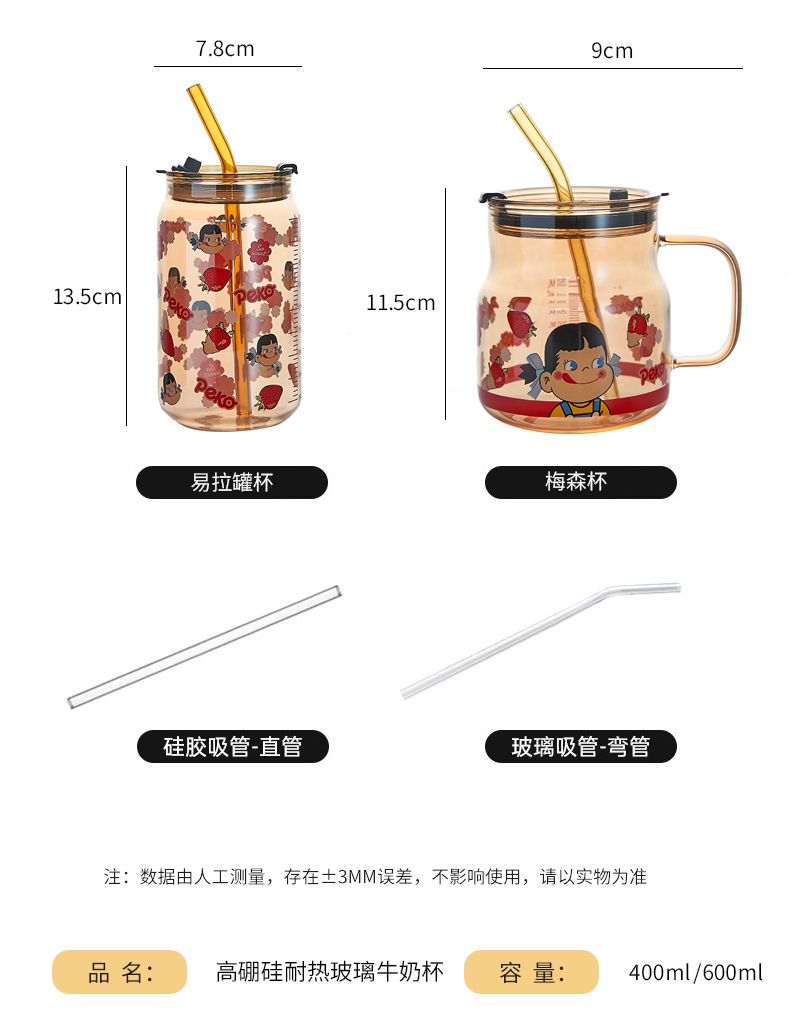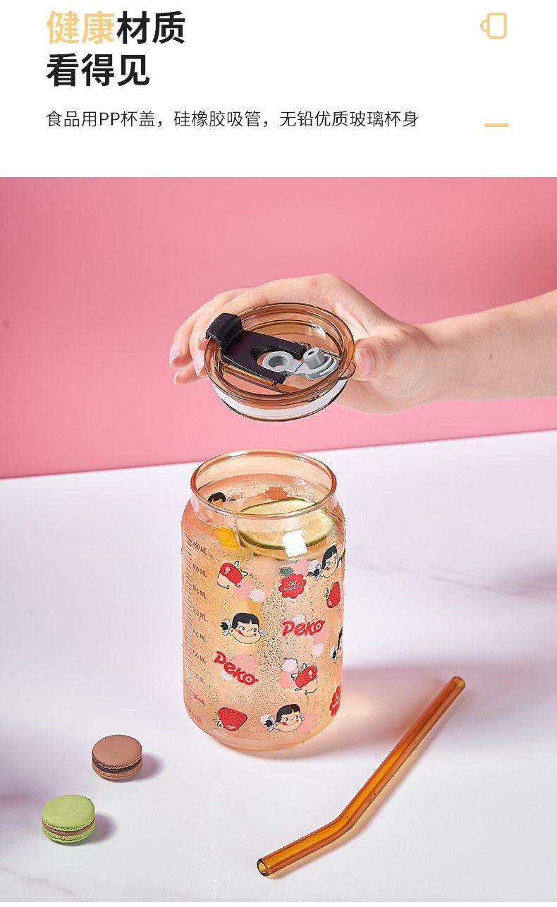 可爱ins高硼硅耐热玻璃易拉罐吸管杯梅森杯带吸管学生牛奶饮料杯