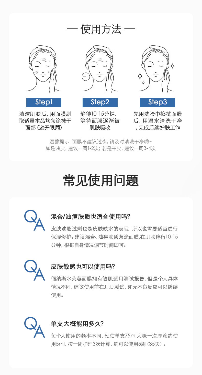【超值2支装 赠面膜刷1个】俪纳斯 白芙蓉 靓颜光感面膜/水芙蓉 水盈保湿面膜 75ml*2支