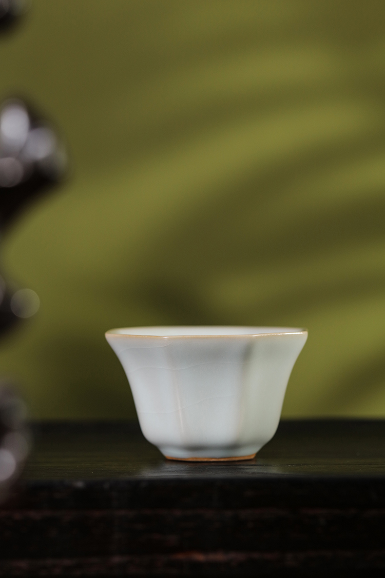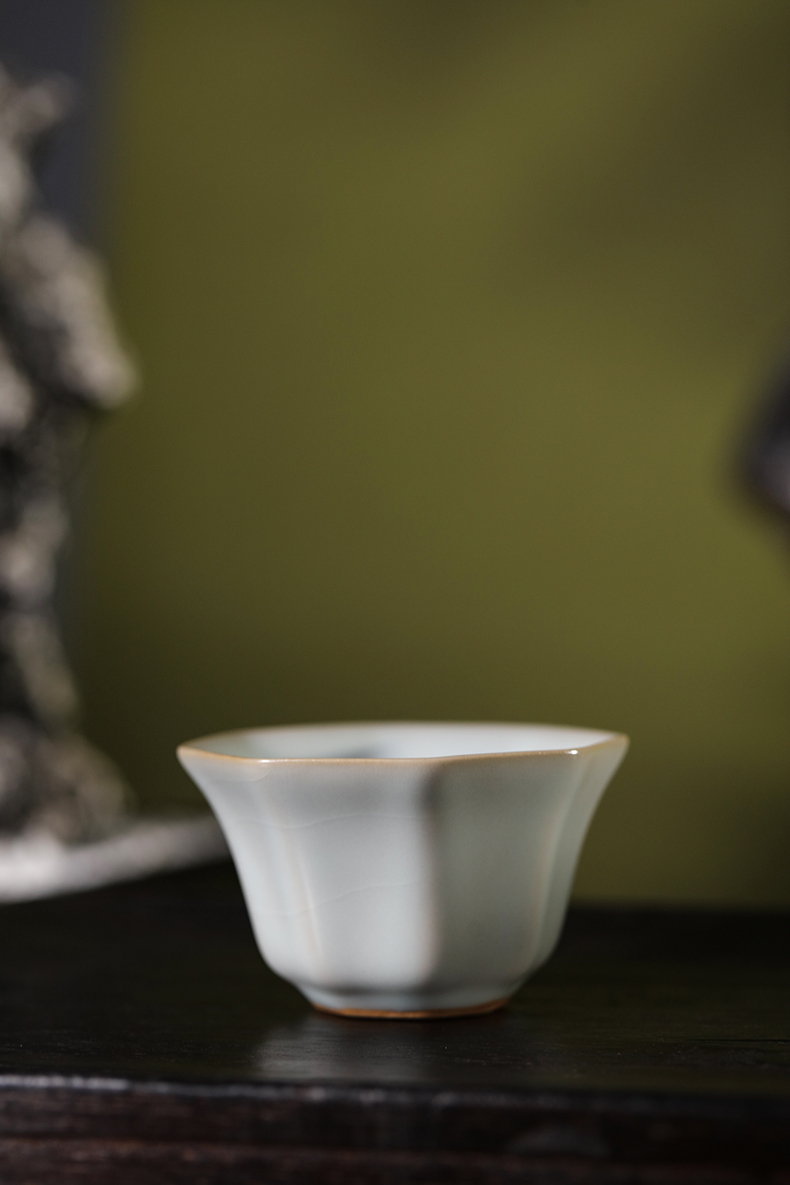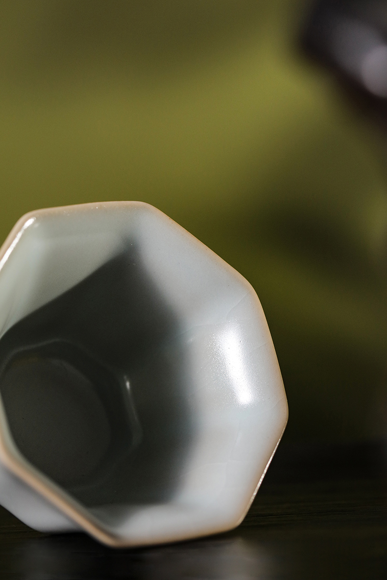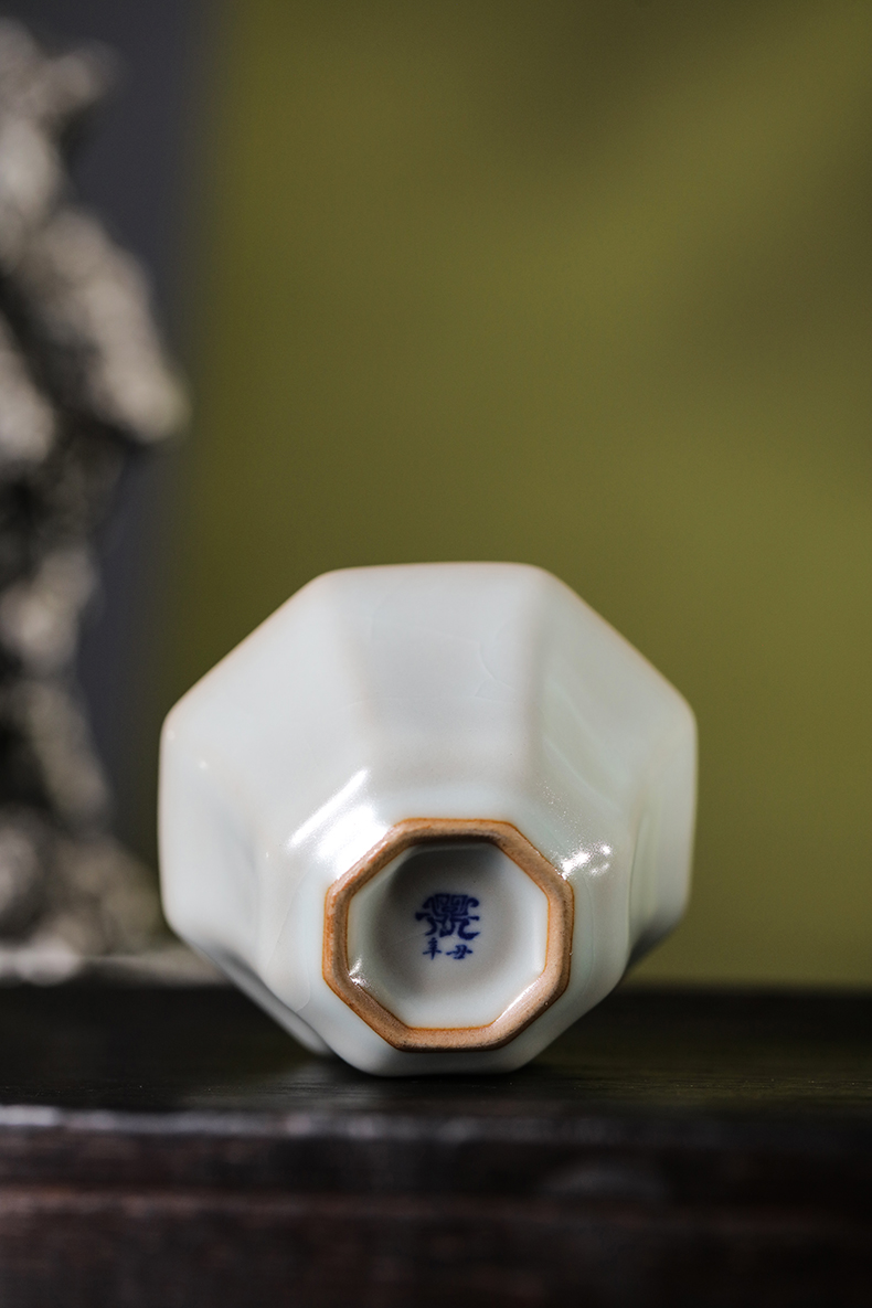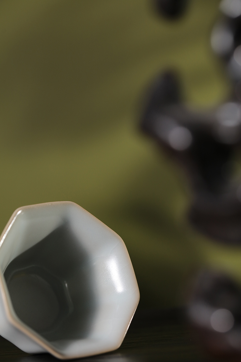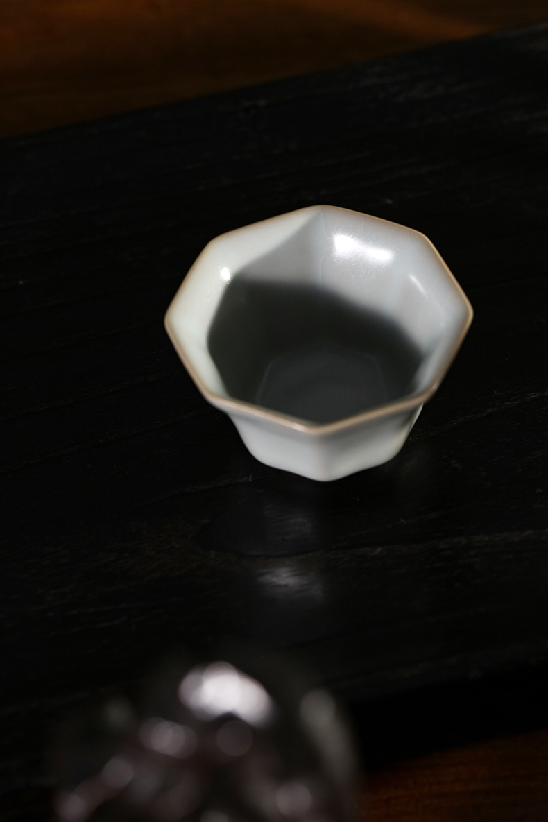 问鼎汝瓷复刻款月白八方杯