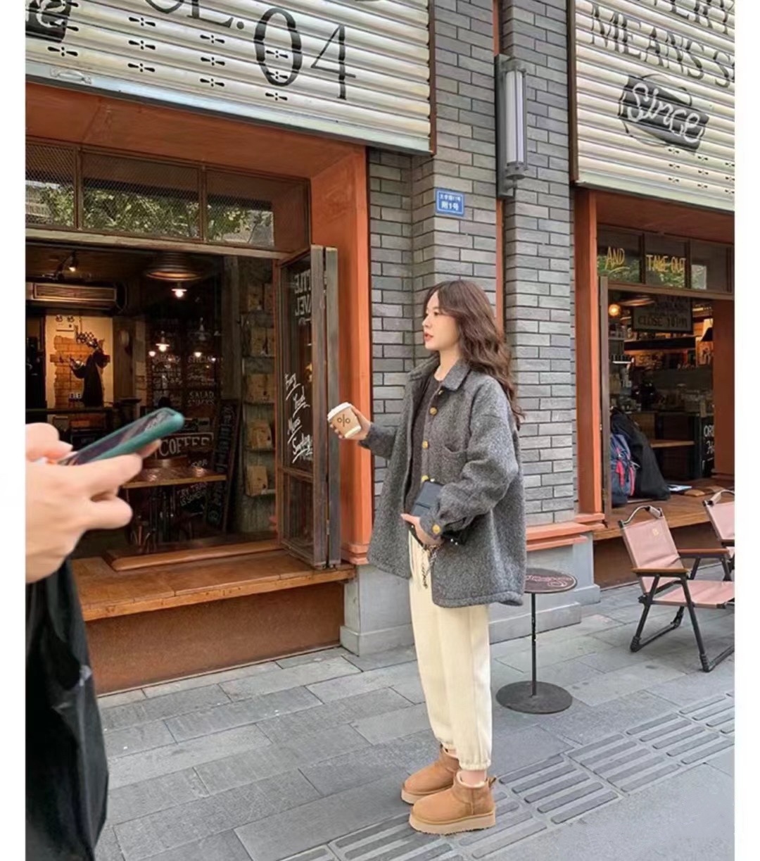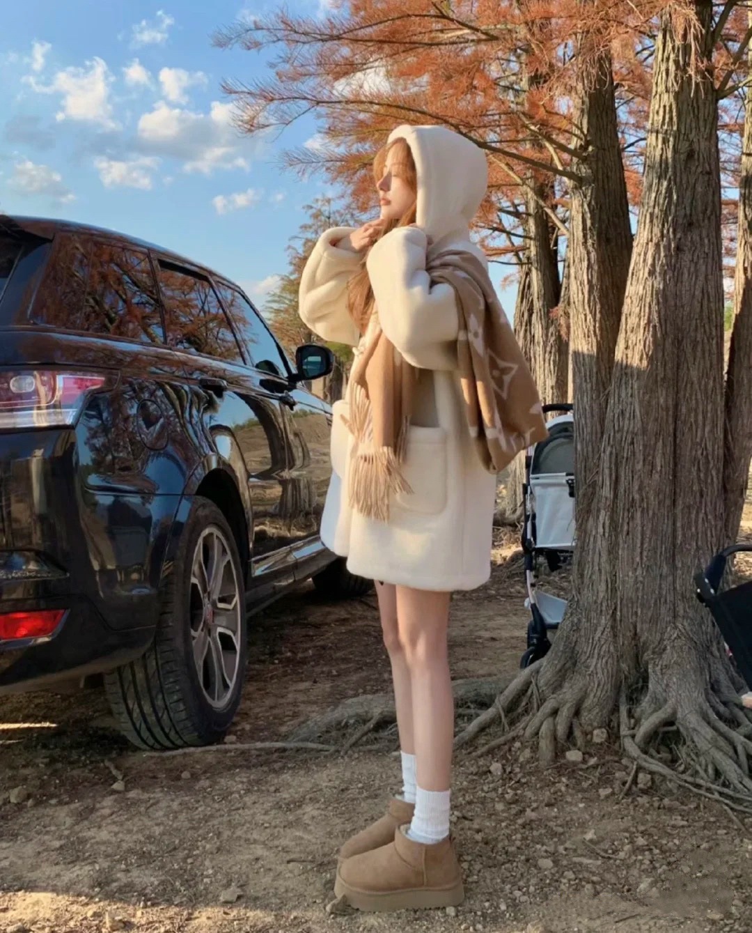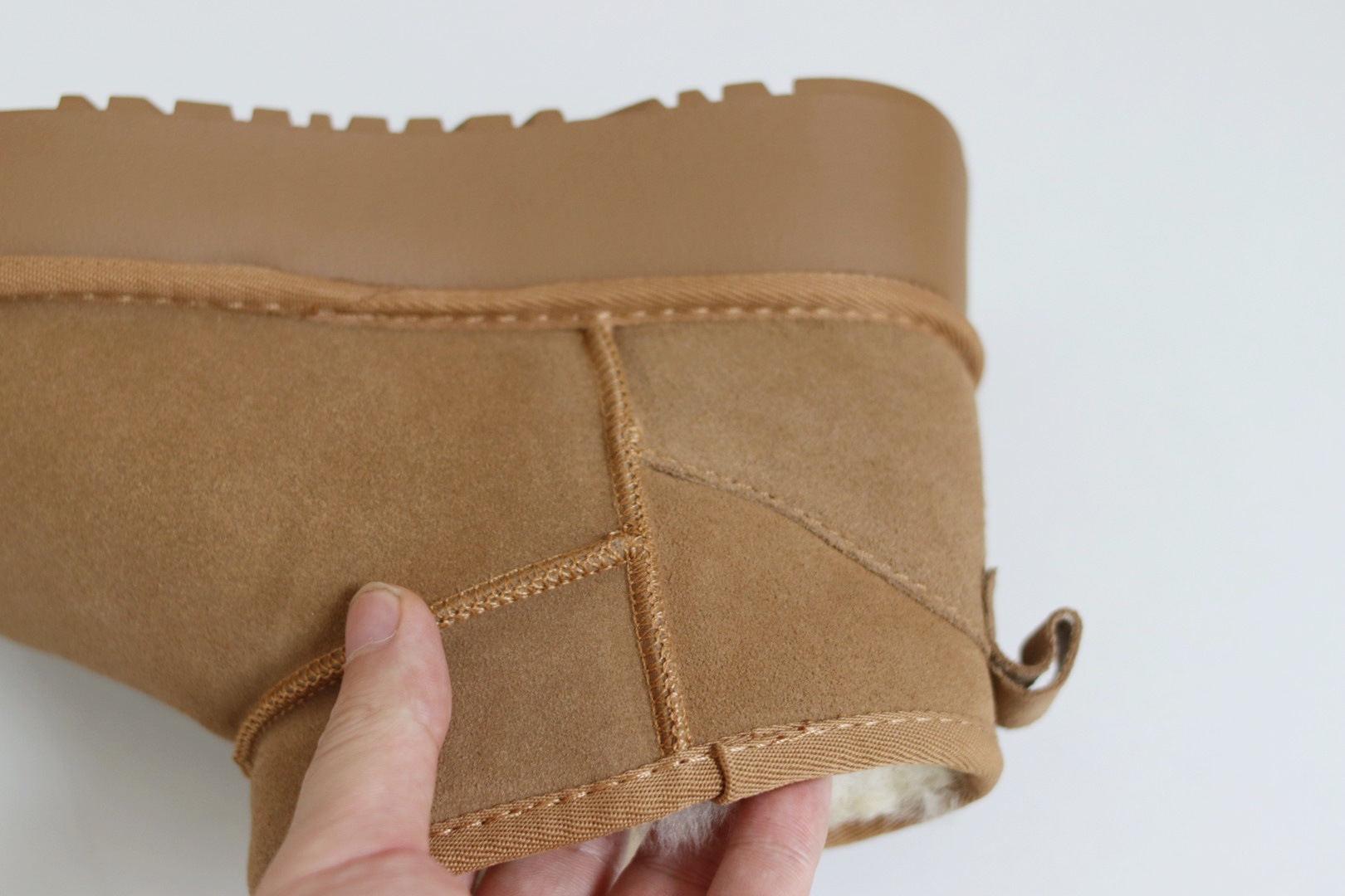 内里羊毛刚穿比较厚实,踩踩多穿穿就会宽松了