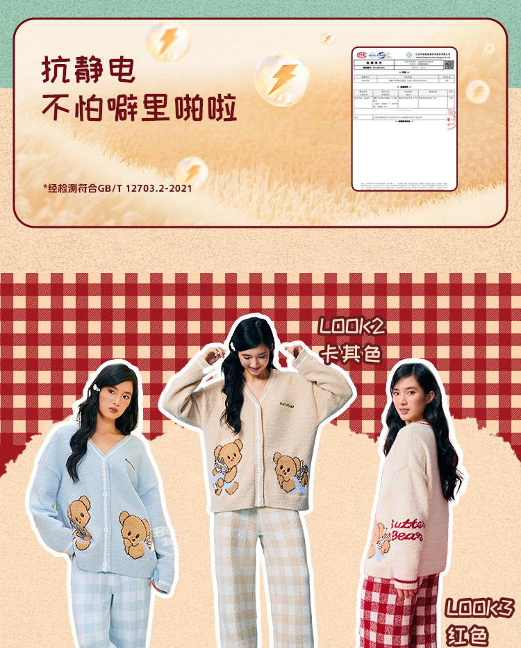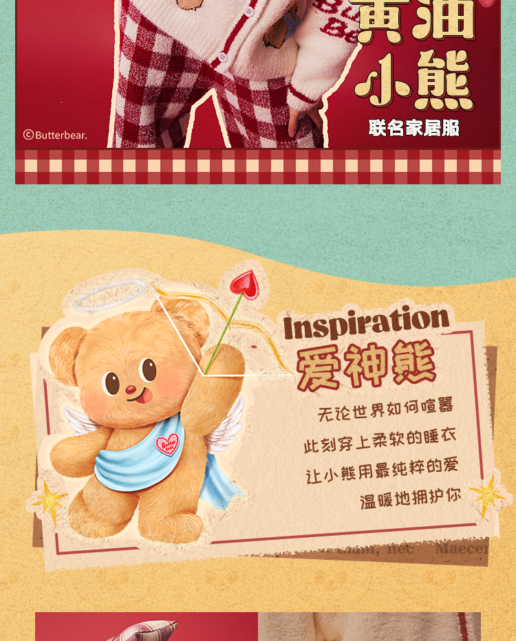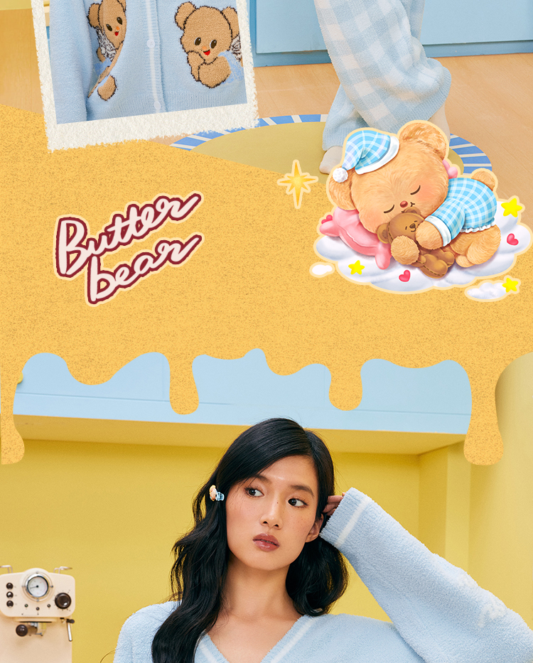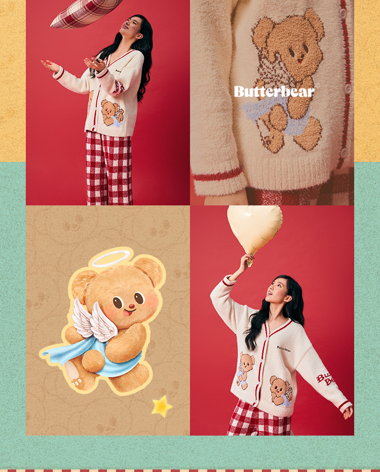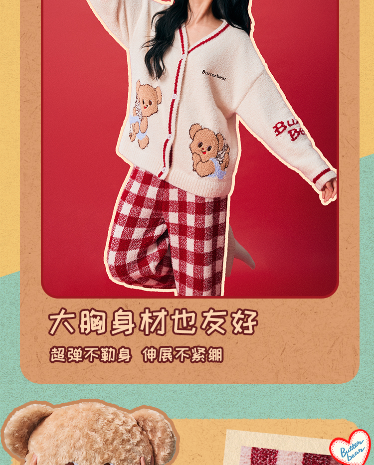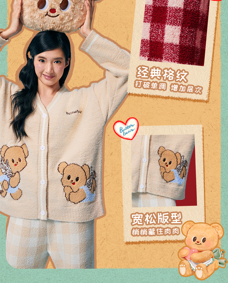 黄油小熊联名[爱神熊开襟款]保暖加绒秋冬抗静电家居服