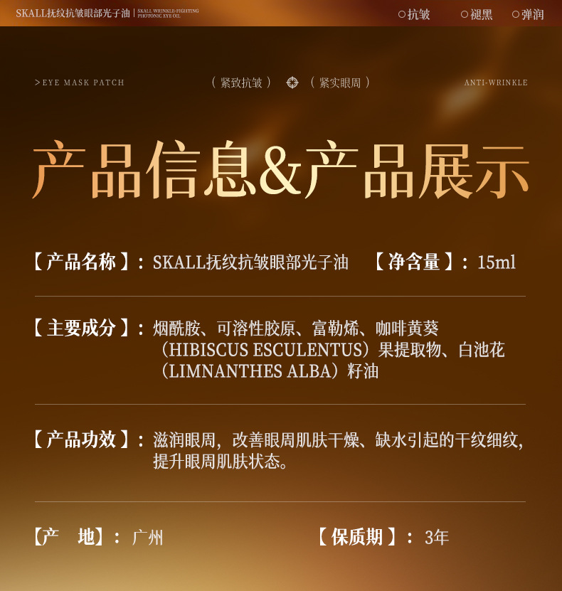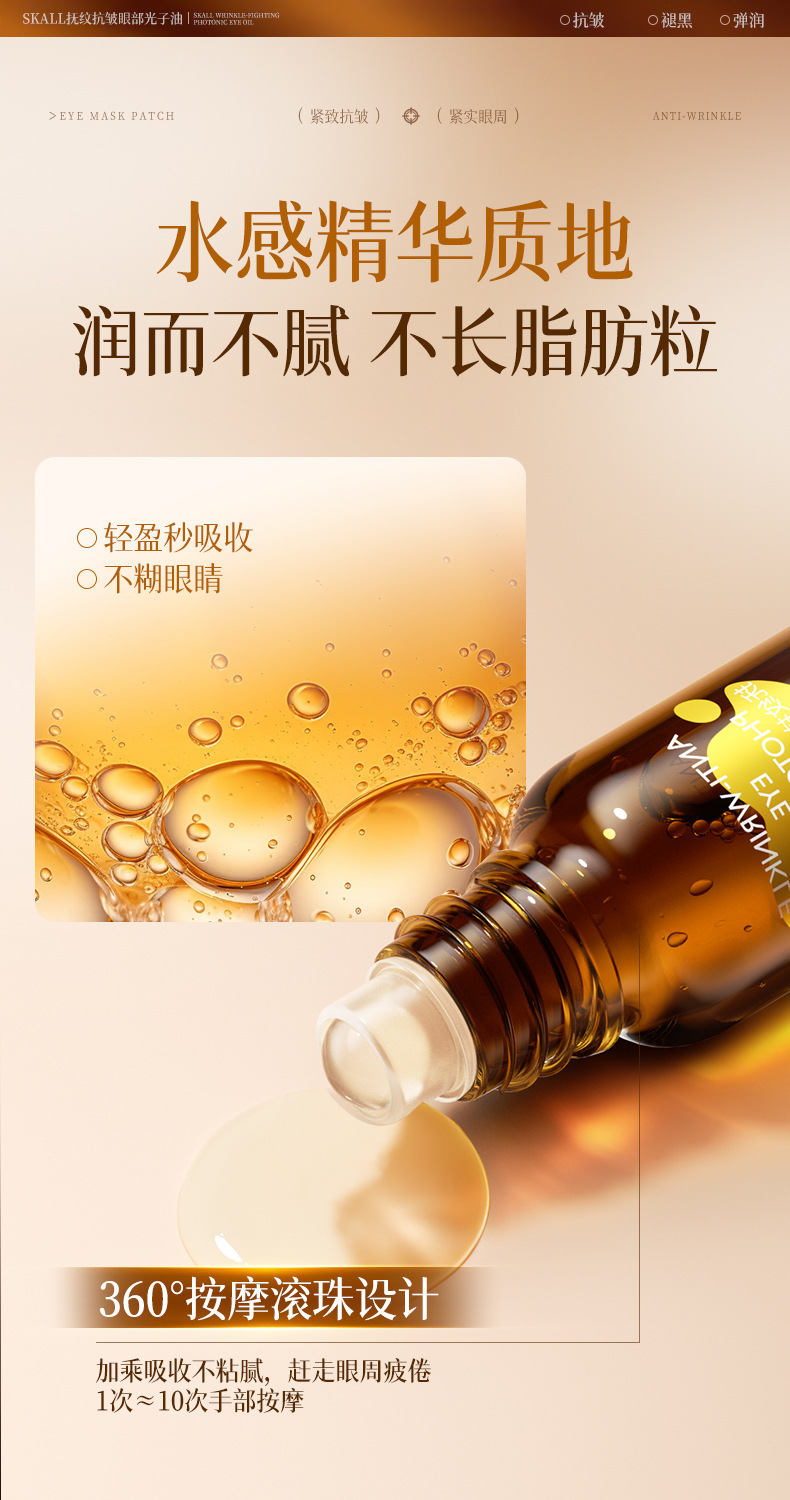 【粉丝专属❗️抚纹抗皱眼部光子油】以油养眼,高效护理,紧致抗皱,检测认证!淡化细纹眼霜紧致舒缓黑眼圈眼袋滚珠按摩