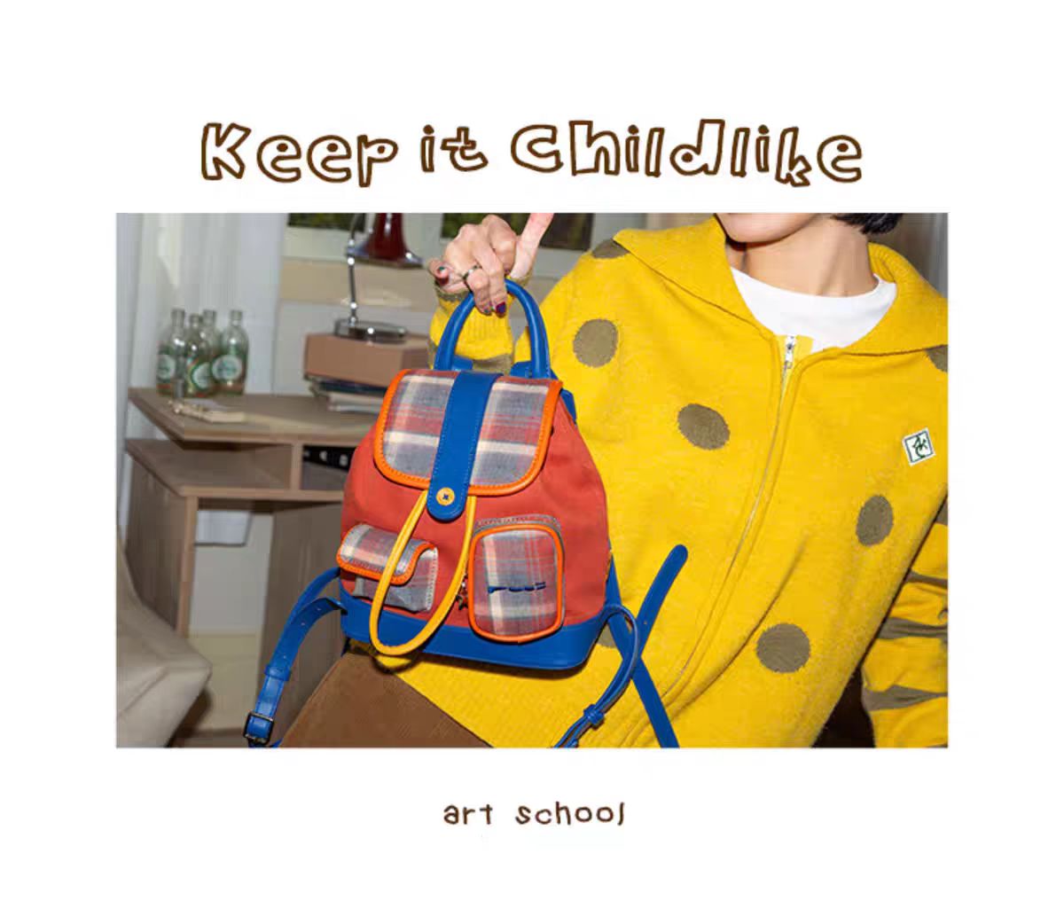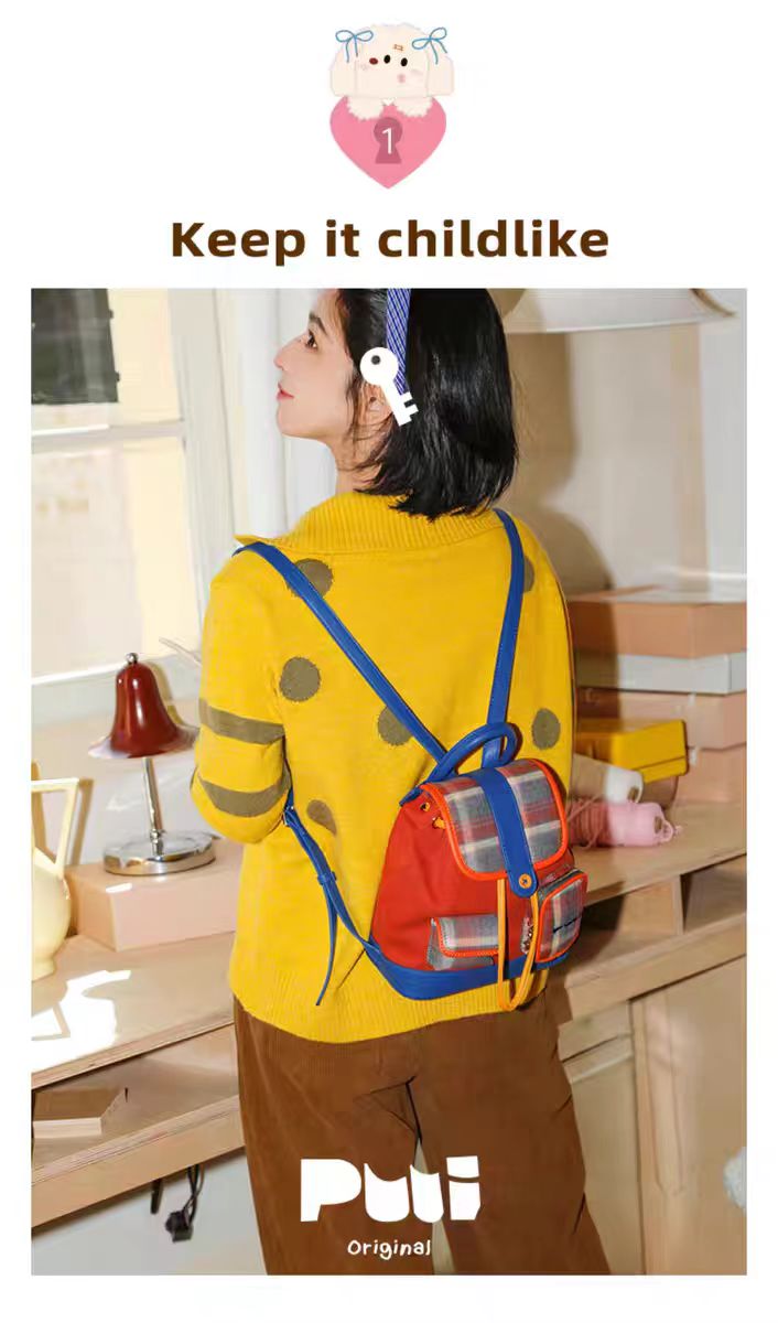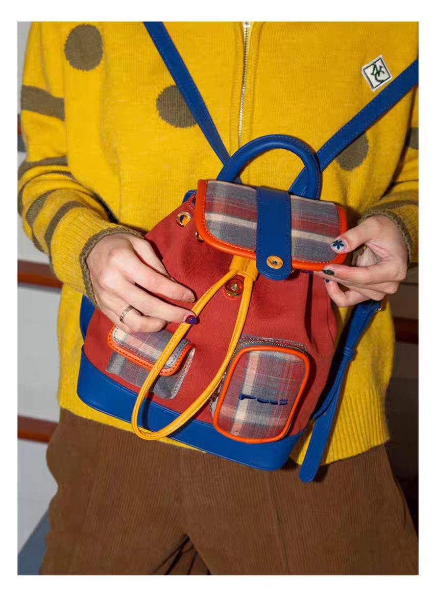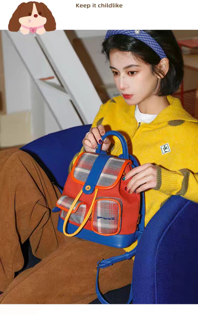 4楼Eubelle欧蓓 puui原创生活双肩包 美式复古 格纹抽绳束口包 翻盖小背包 活动价:328元