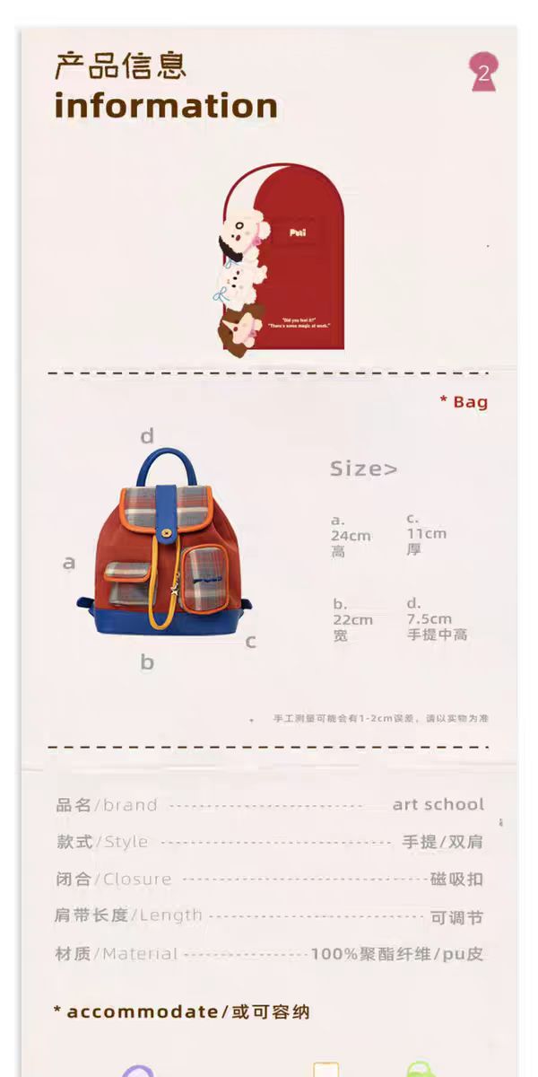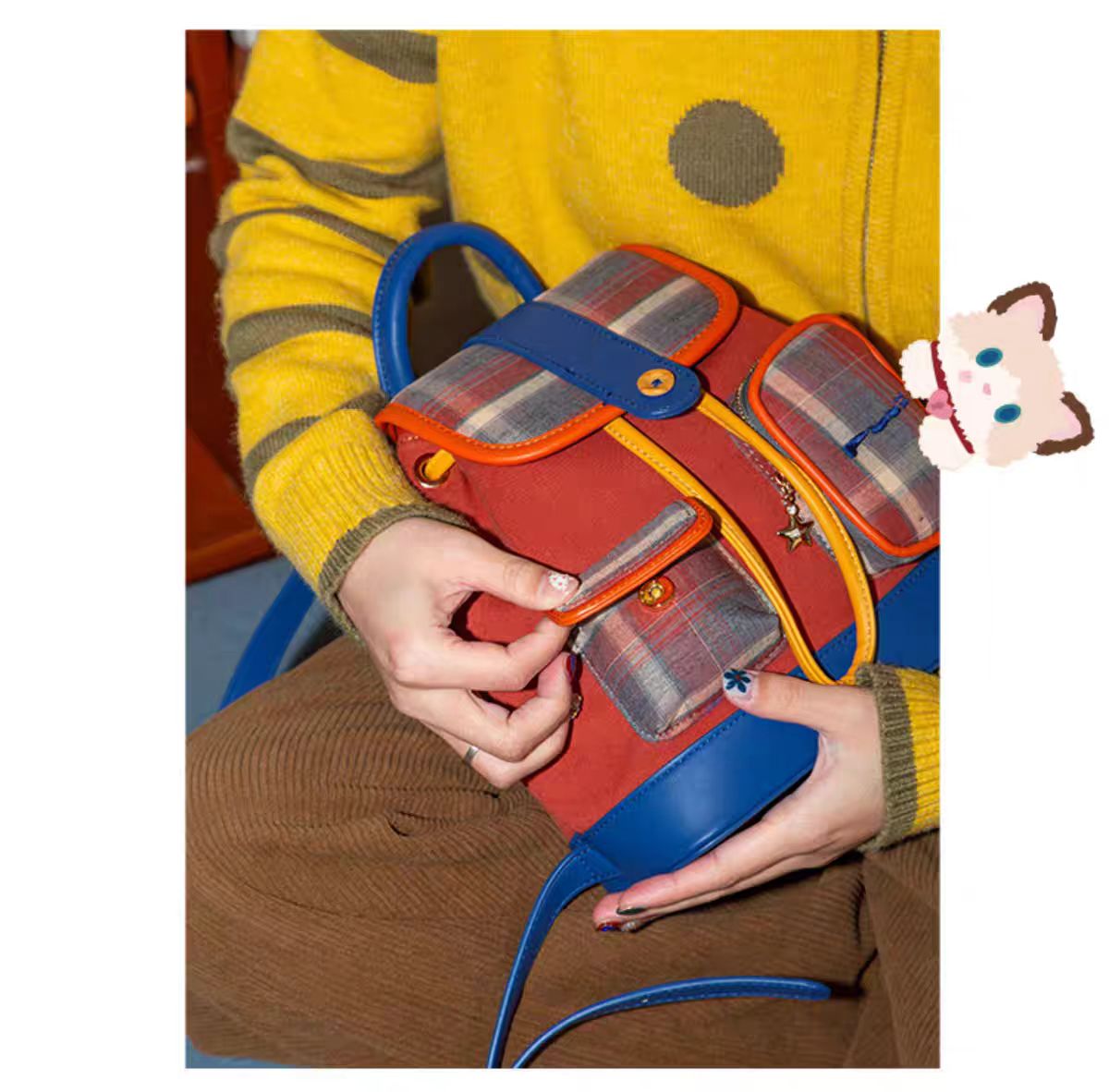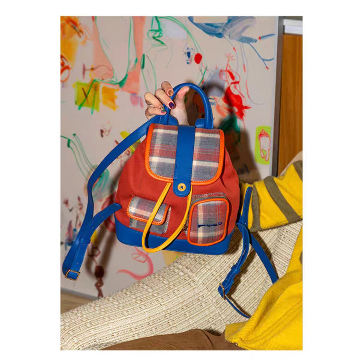 4楼Eubelle欧蓓 puui原创生活双肩包 美式复古 格纹抽绳束口包 翻盖小背包 活动价:328元