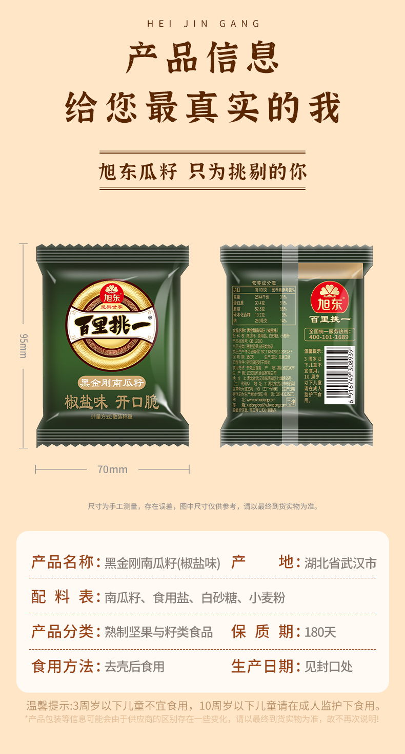 【20包】旭东开口黑金刚南瓜子椒盐味南瓜子百里挑一休闲零食