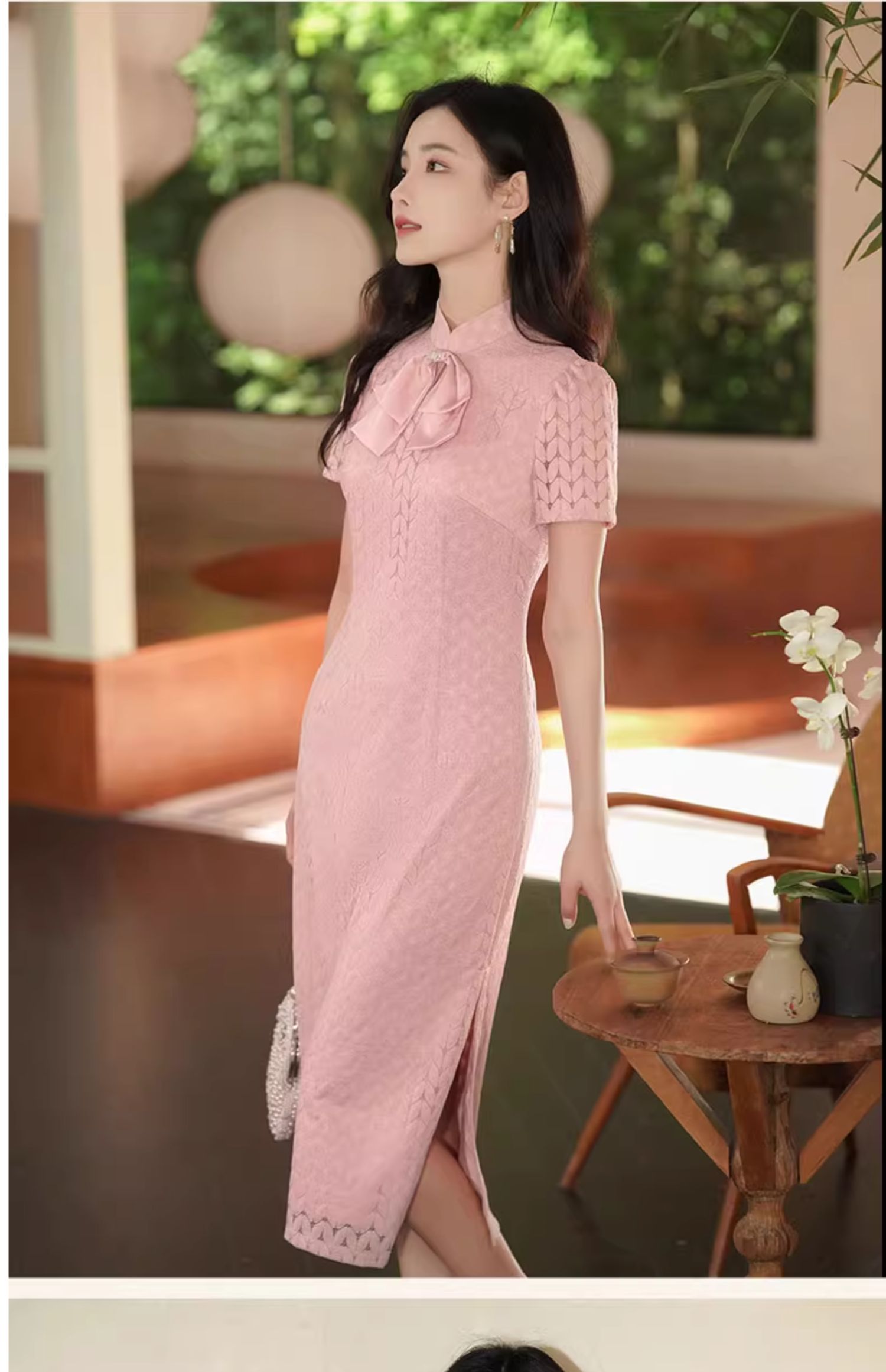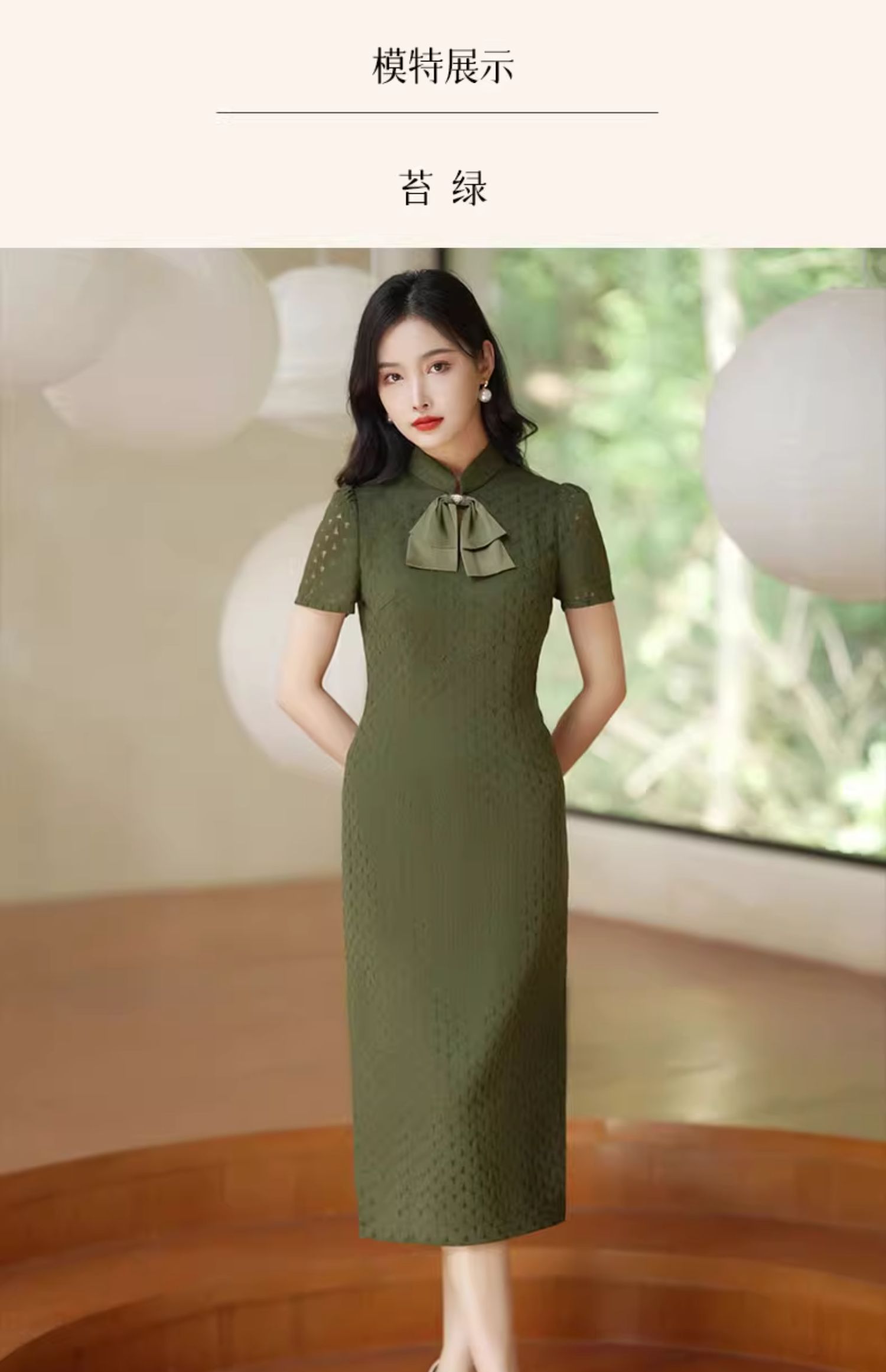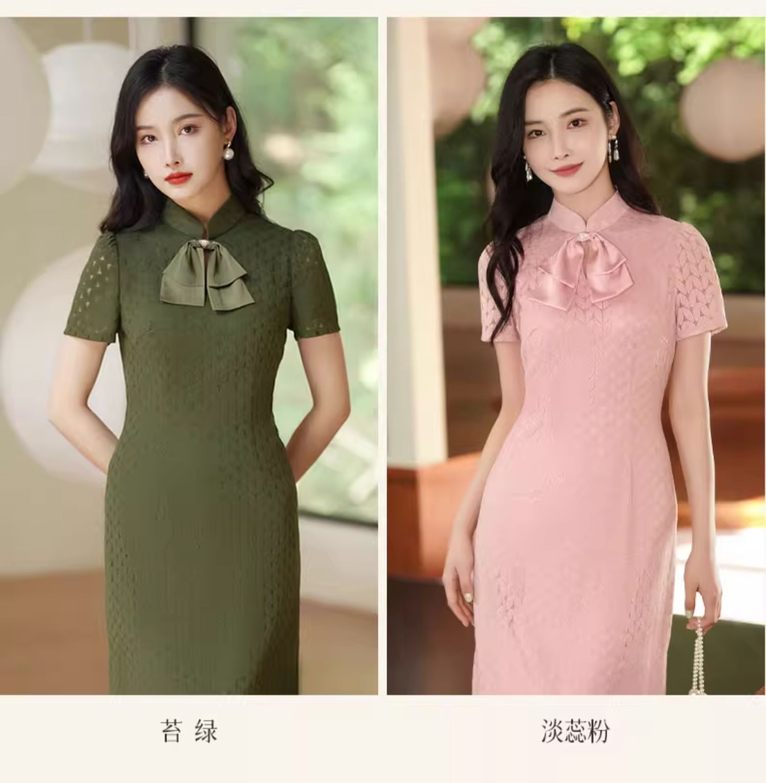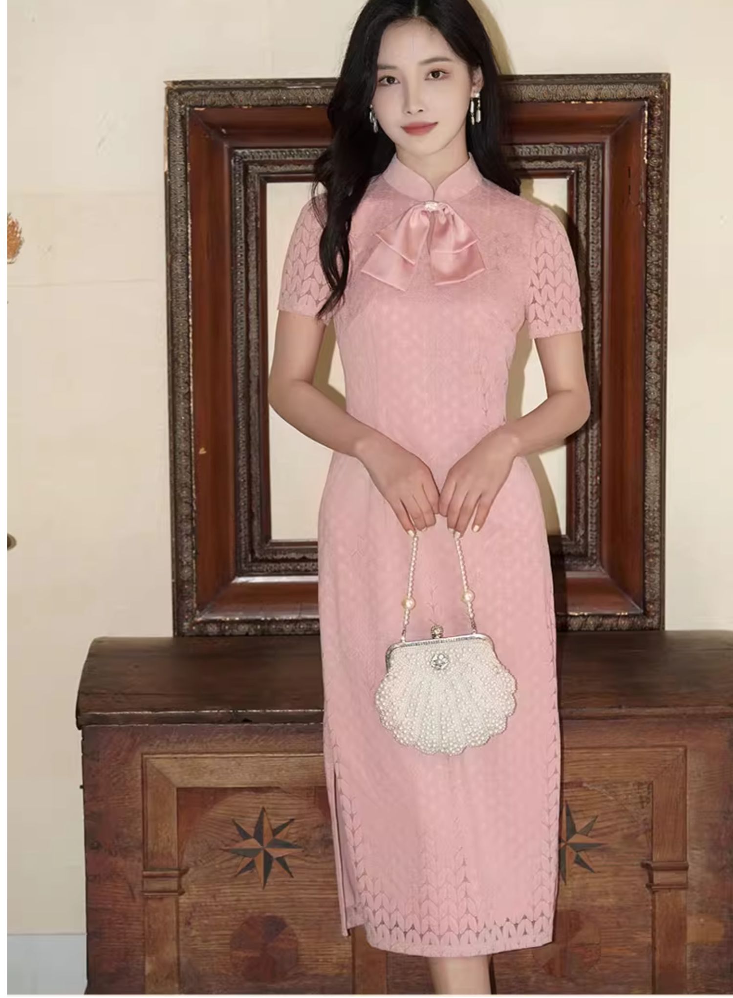 逸红颜苏然2025年夏季新款旗袍改良版连衣裙女蝴蝶结设计蕾丝旗袍