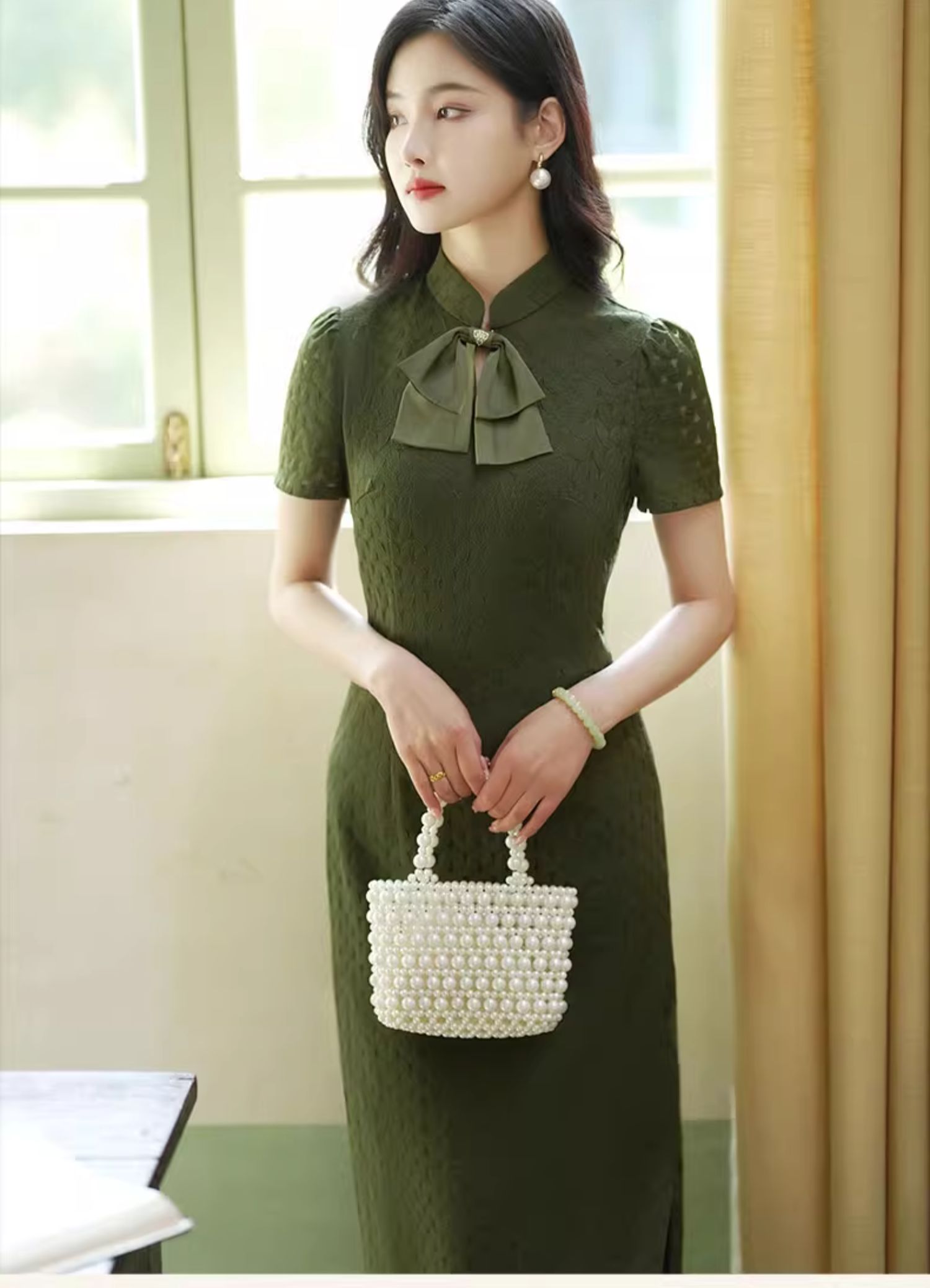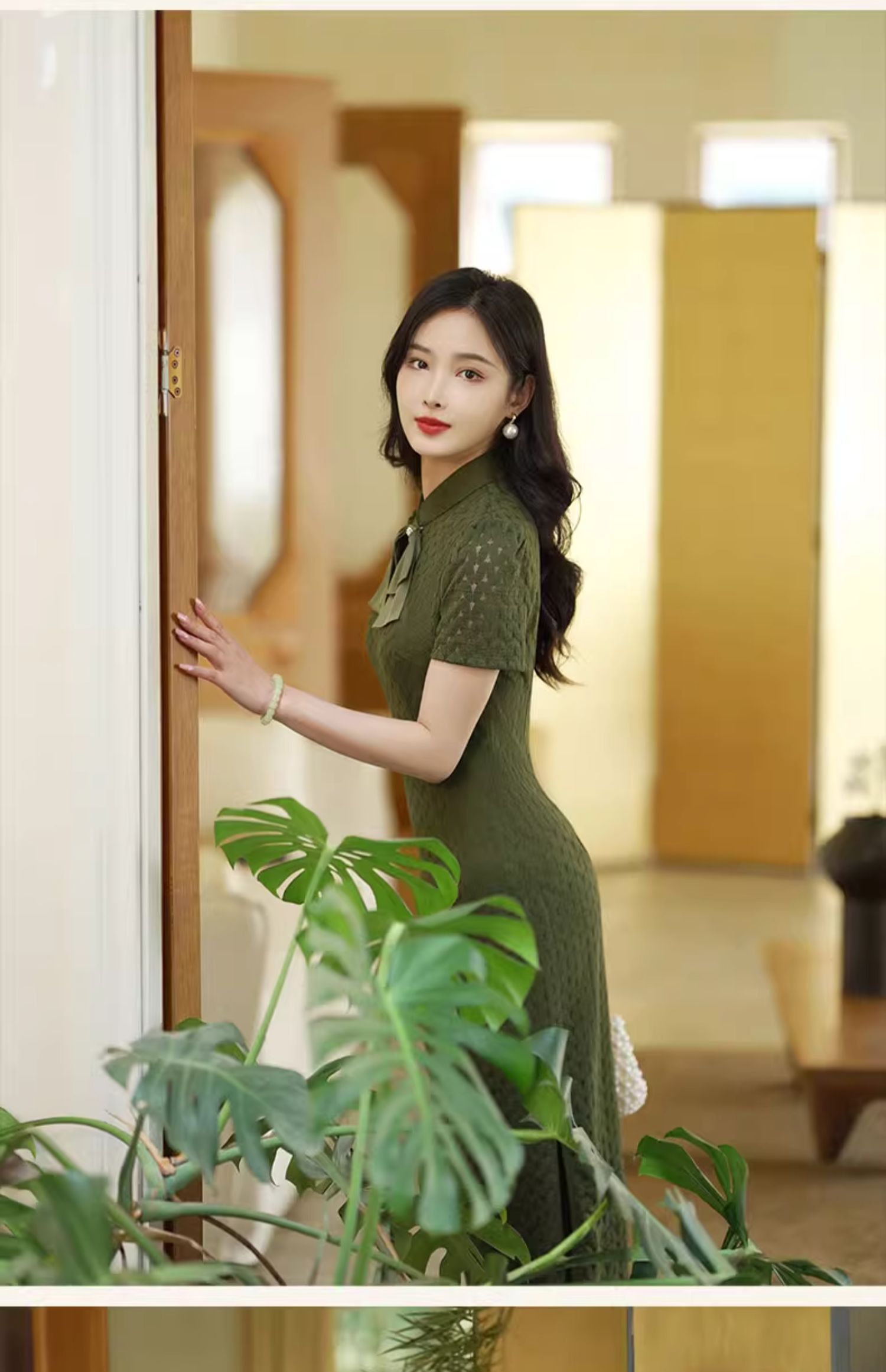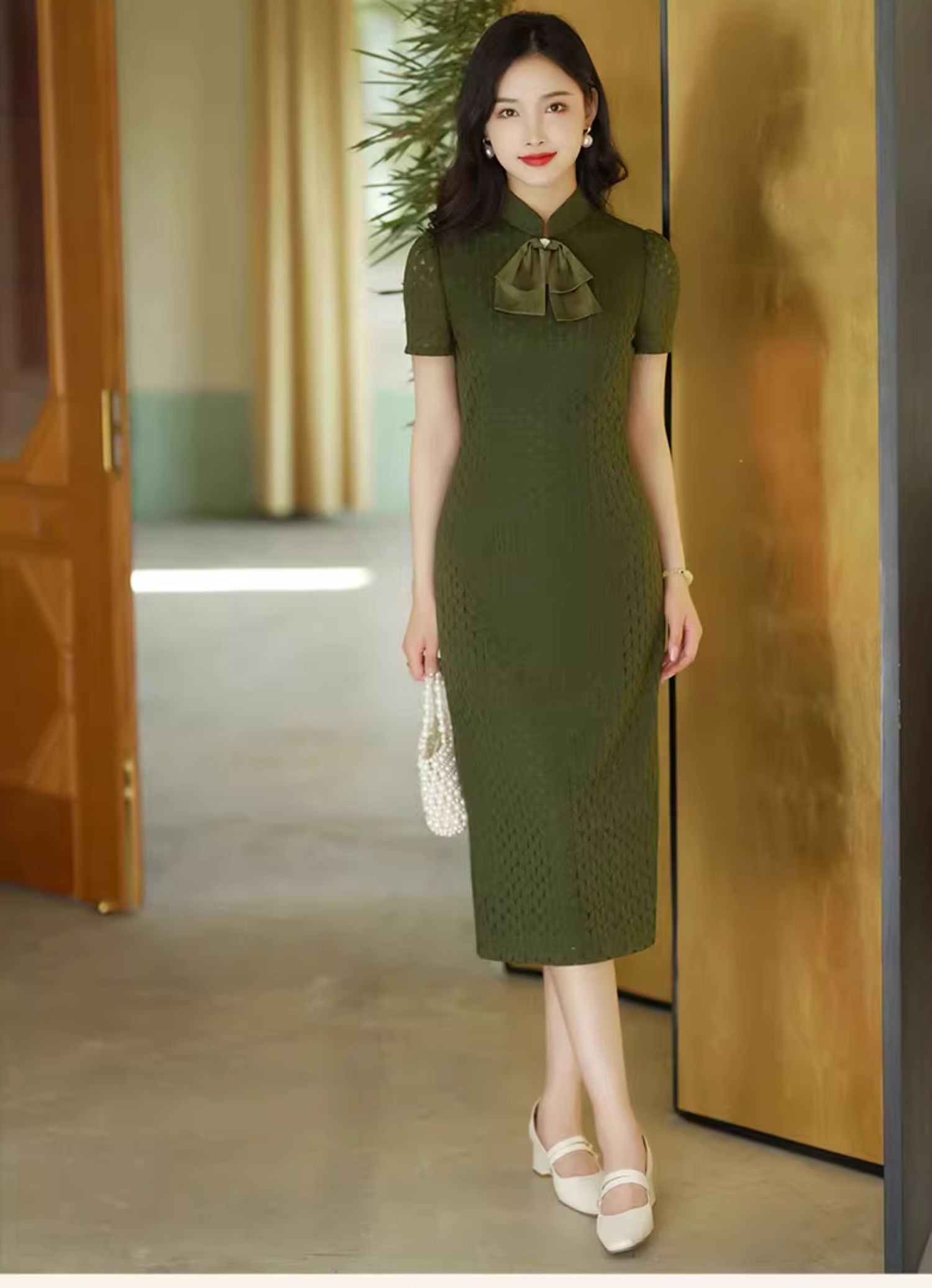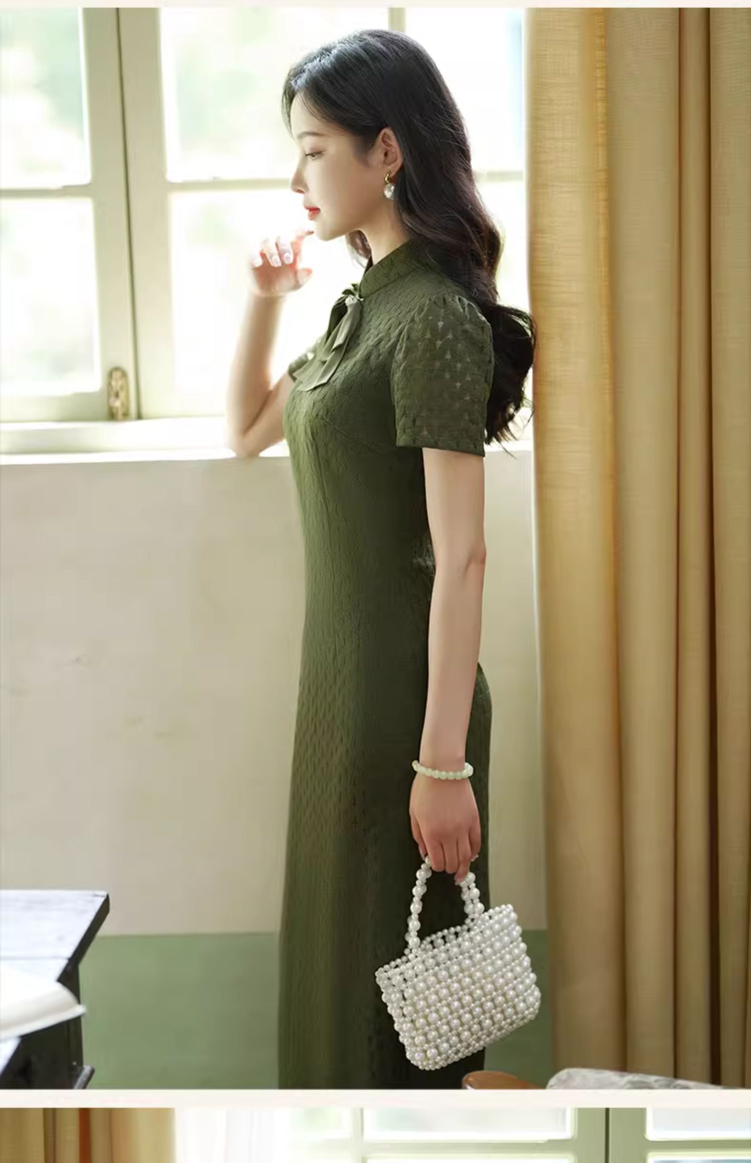 逸红颜苏然2025年夏季新款旗袍改良版连衣裙女蝴蝶结设计蕾丝旗袍