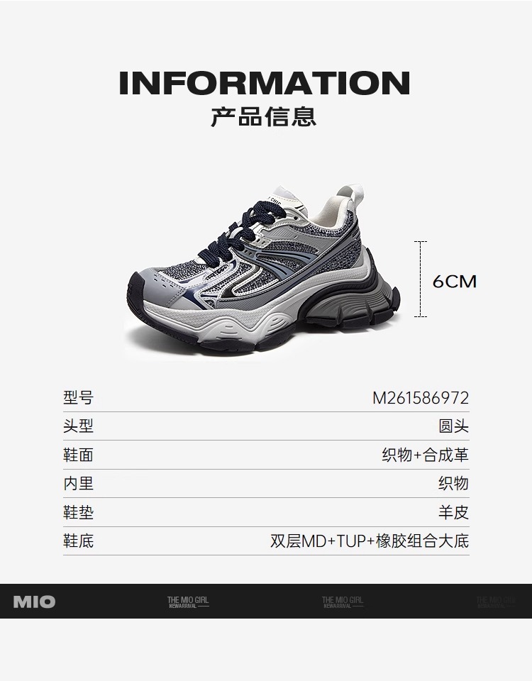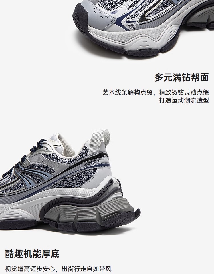 【云粉节】BF楼MIO时尚休闲鞋2025新款圆头厚底增高闪钻运动鞋复古老爹鞋M261586972吊牌价1898活动价1498