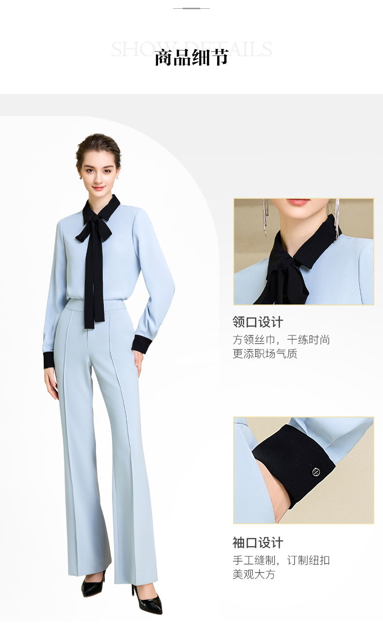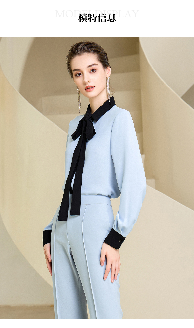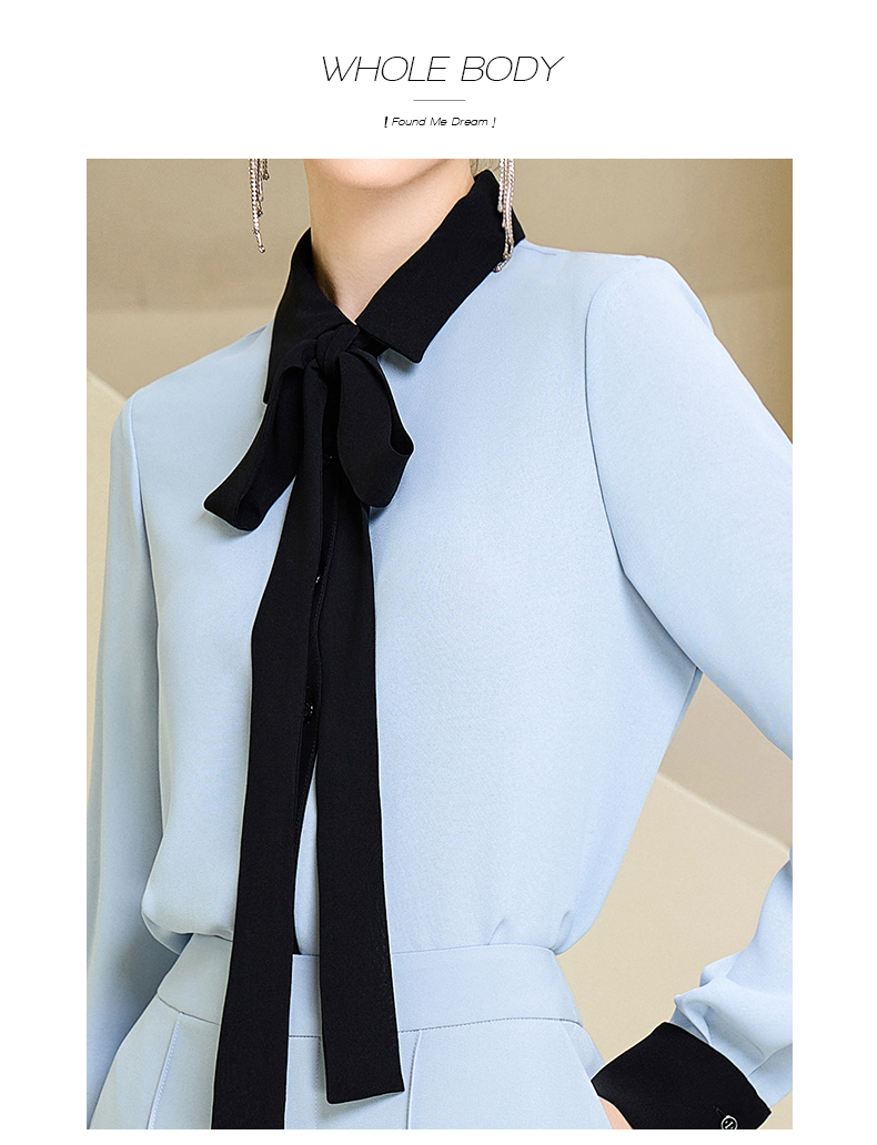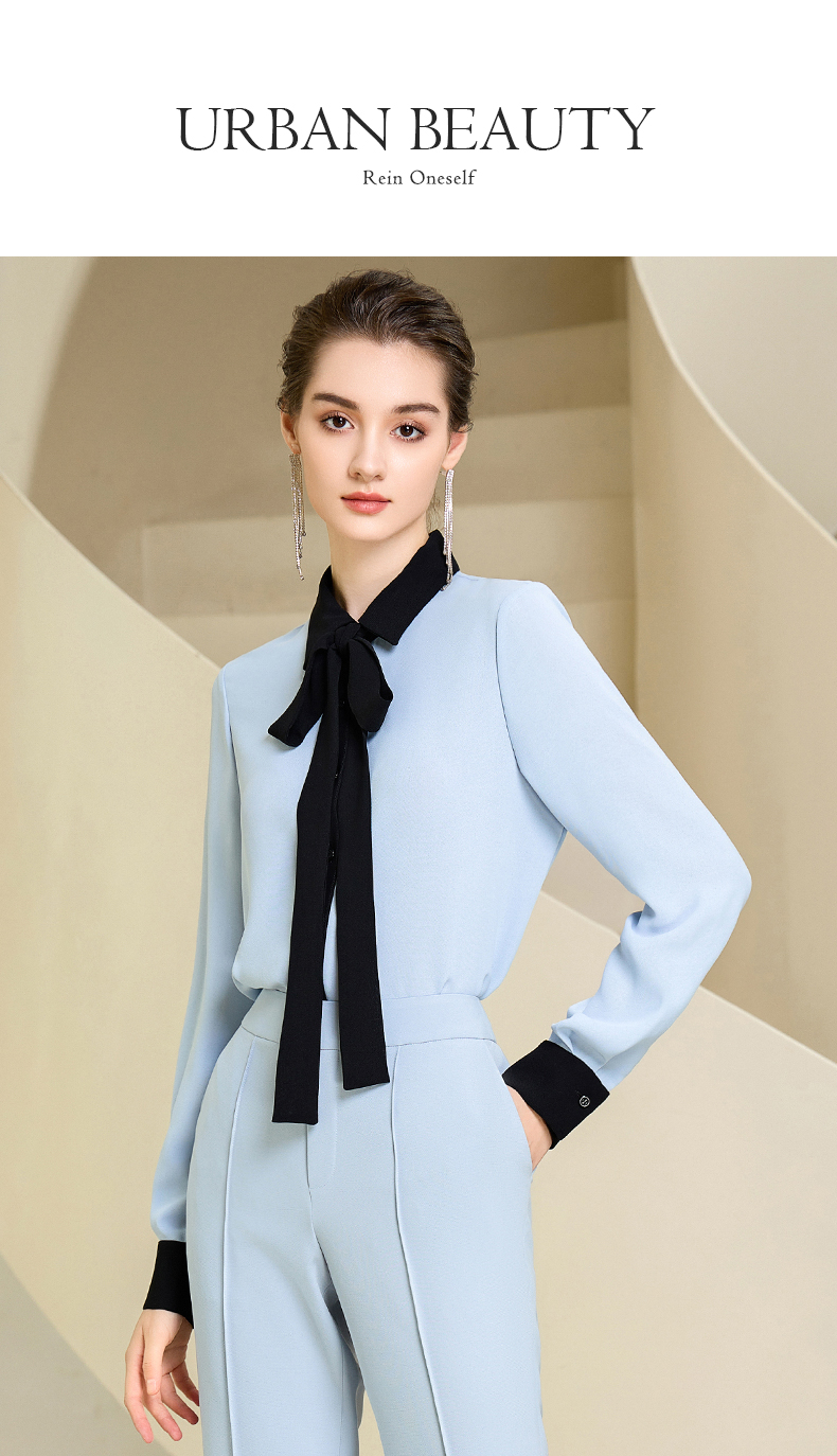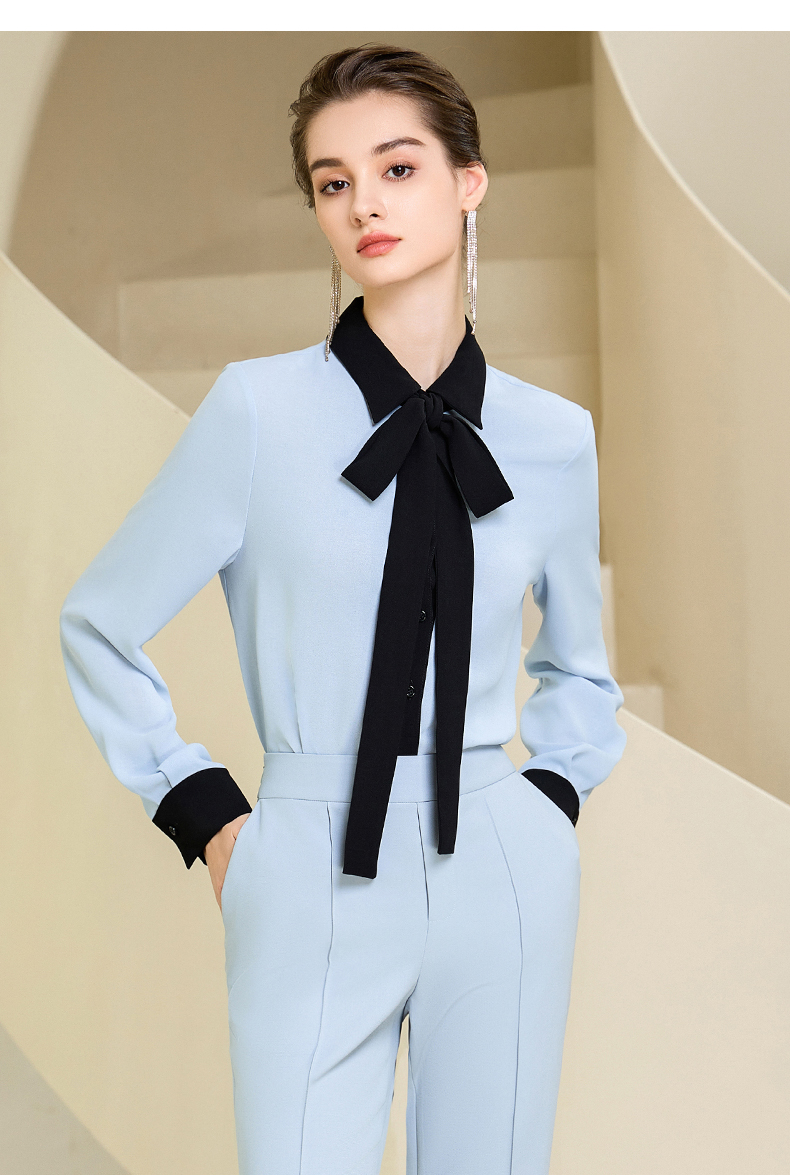 高端时尚系带蓝色衬衫女衬衣