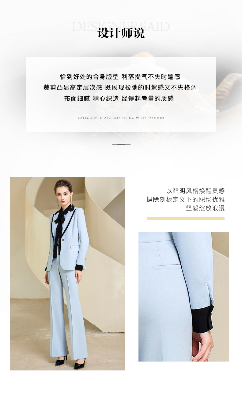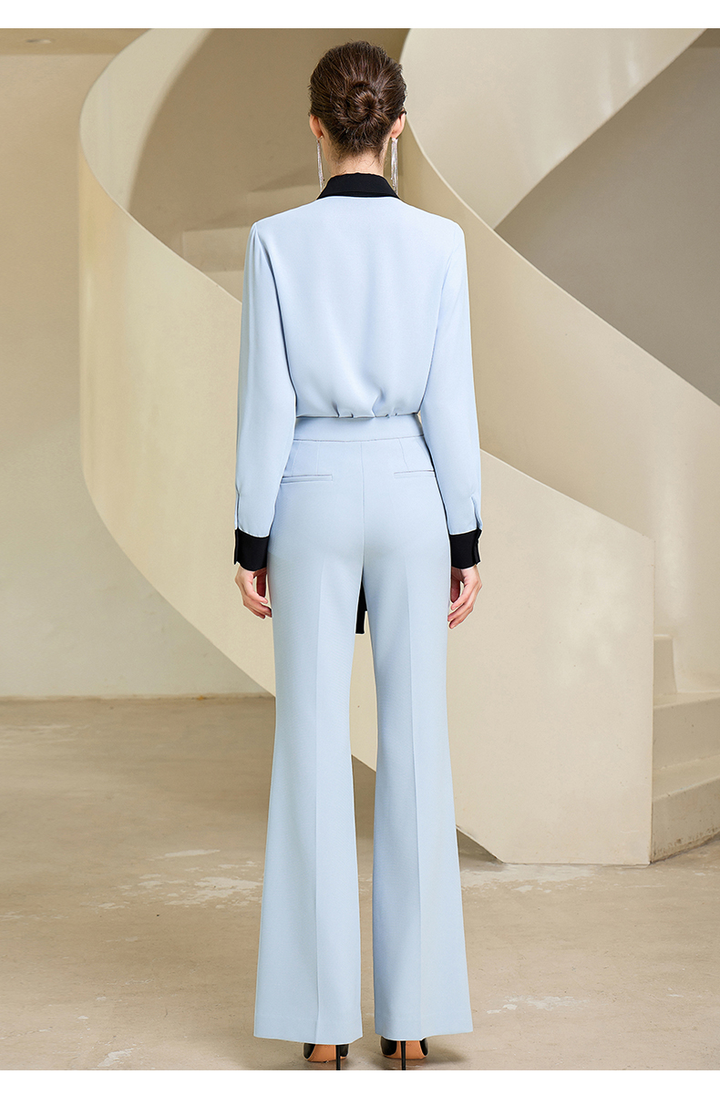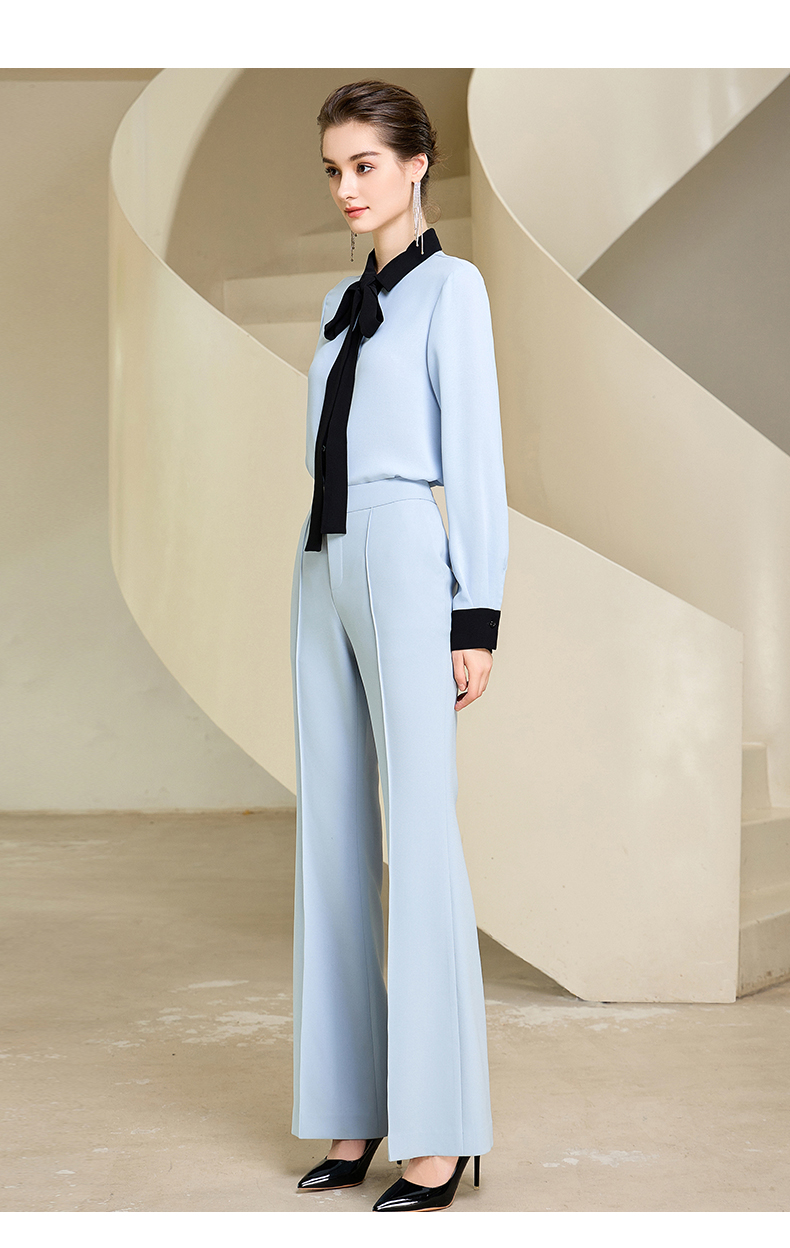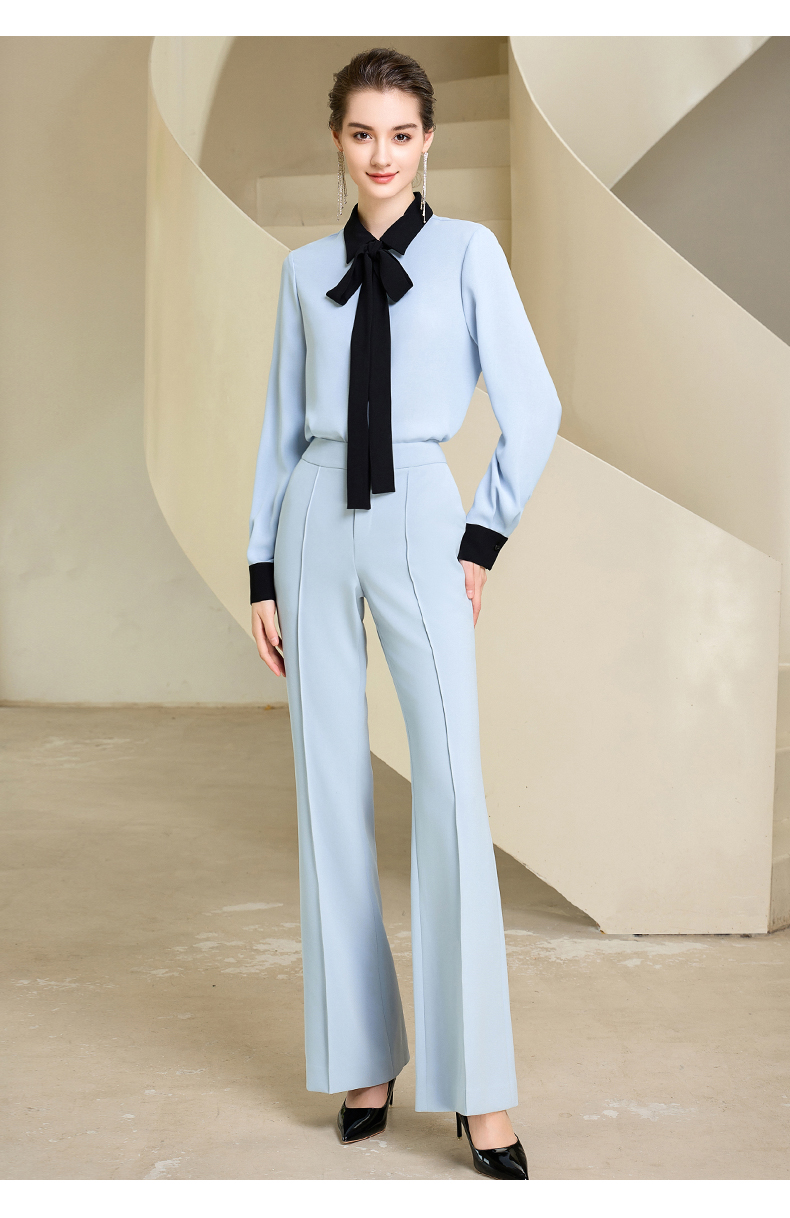高端时尚系带蓝色衬衫女衬衣
