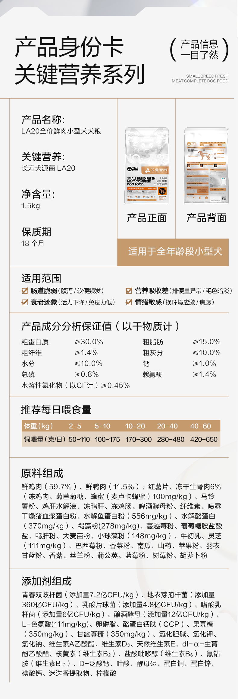 卫仕LA20全价鲜肉小型犬犬粮1.5kg(关键营养系列)