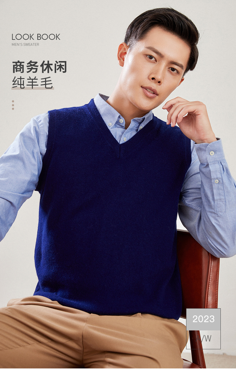 【100%羊毛 春秋冬适宜】SIIJJEYY枝辑 男士V领羊毛马甲(多色可选)