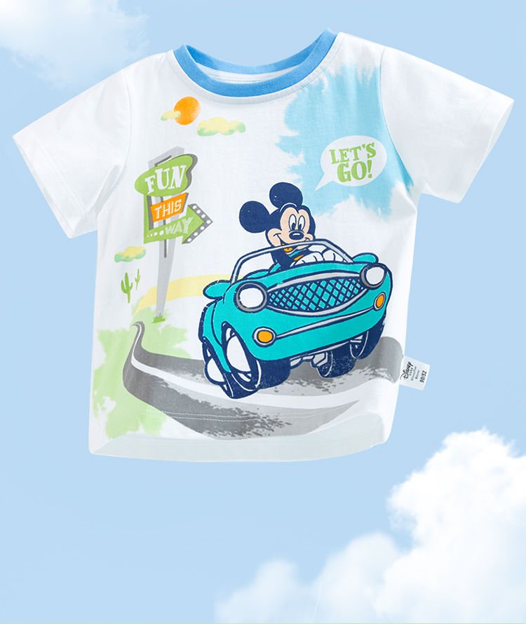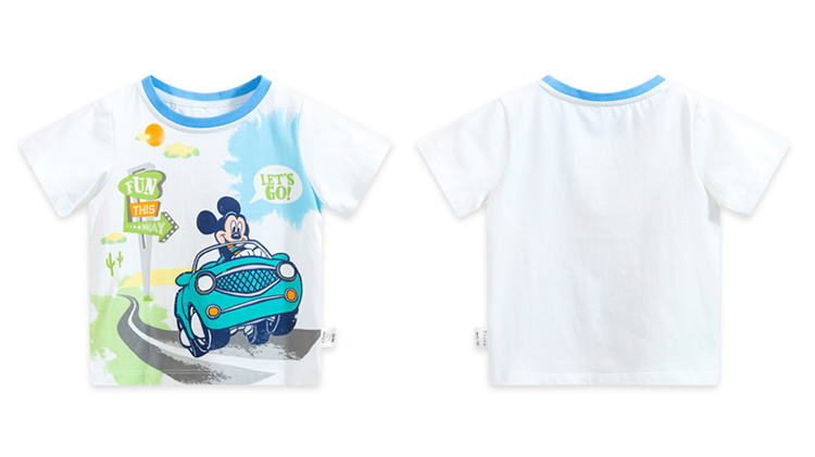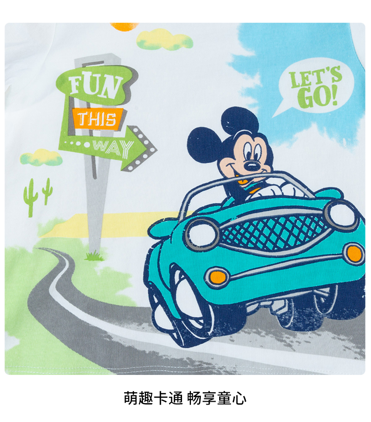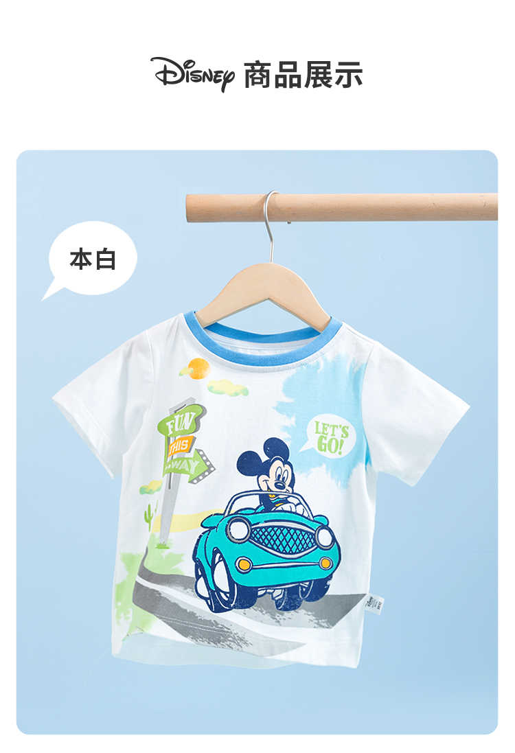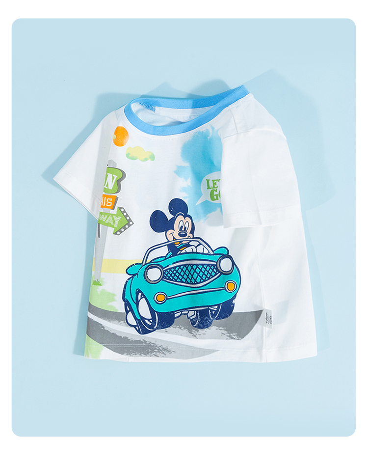 迪士尼童装男童纯棉短袖T恤中小童宝宝夏季米奇汽车卡通上衣232S1796