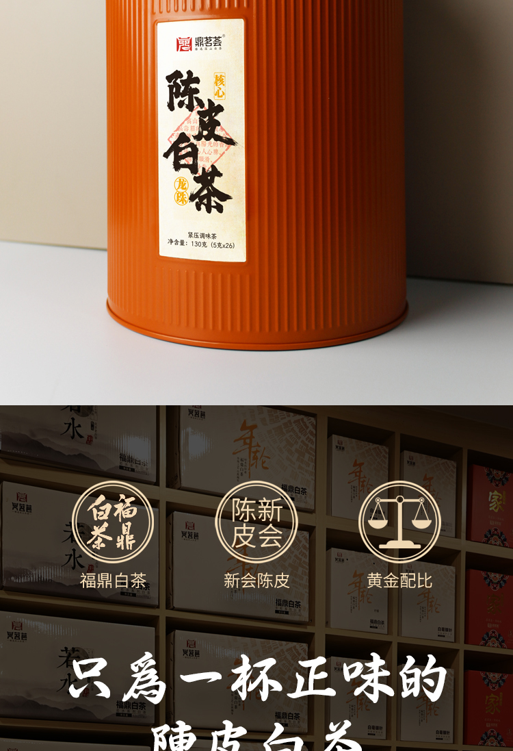 鼎茗荟丨陈皮白茶龙珠 福鼎白茶 2018年原料 130g 罐装