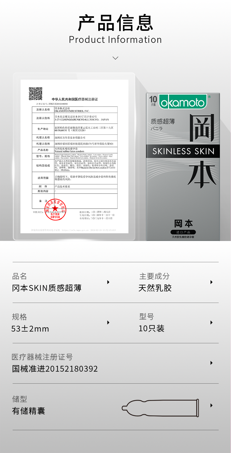 【立体贴合】10片装SKIN 香草味 前端紧缩设计 199-100、399-200 OKAMOTO冈本官方商城