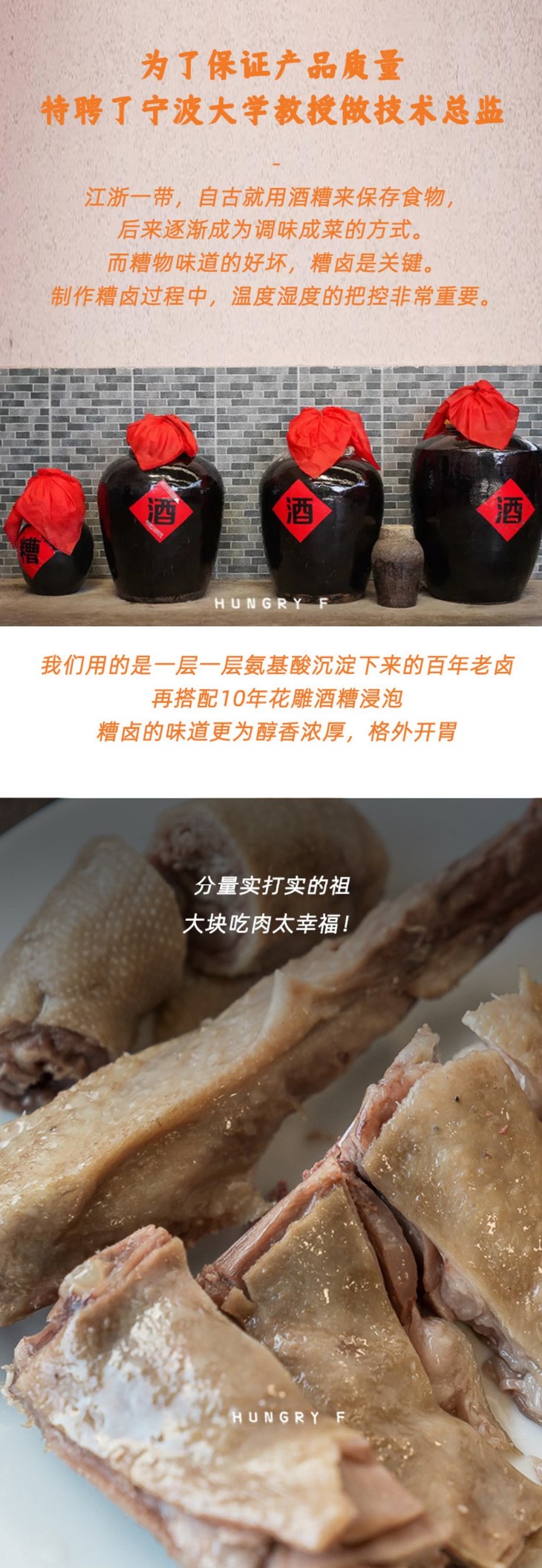 在食材的选择上,同样精益求精,只用以肉质鲜嫩、个大肉紧而著称象山产的大白鹅。早在1978年,象山大白鹅就开始出口至日本、马来西亚、新加坡等国家,其品质得到了国际市场的认可。品牌还特别挑选冬至期间饲养200天以上的大白鹅,冬至鹅子特别肥嫩,肉质自带清甜,不仅风味独特,而且营养价值高,更是制作糟货的上佳之选。