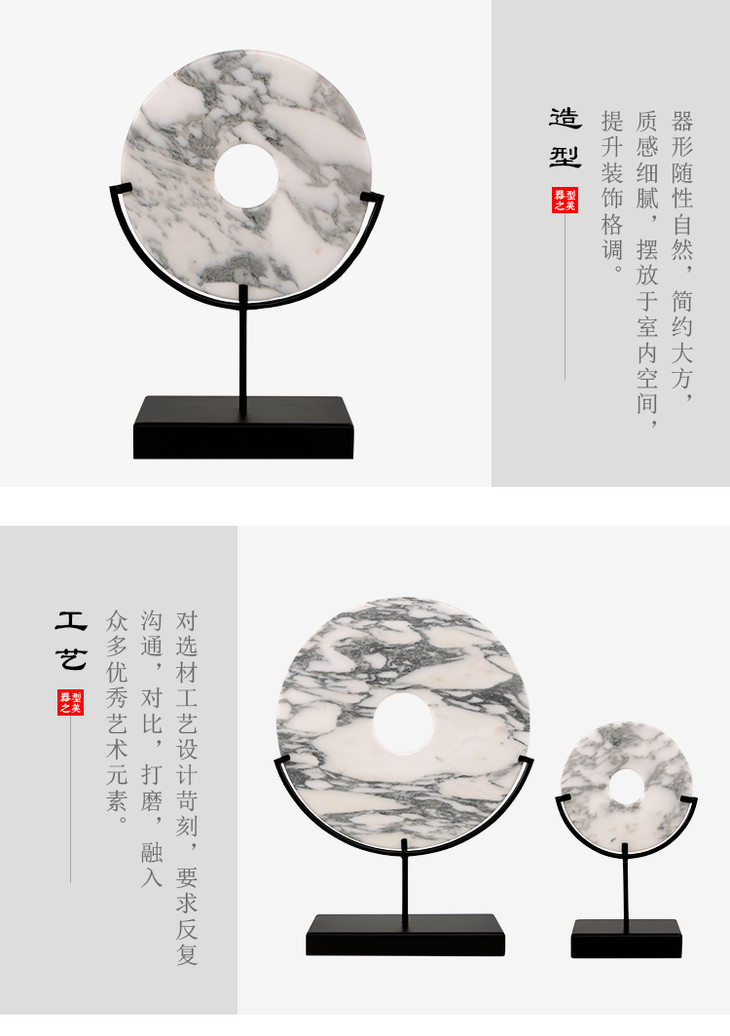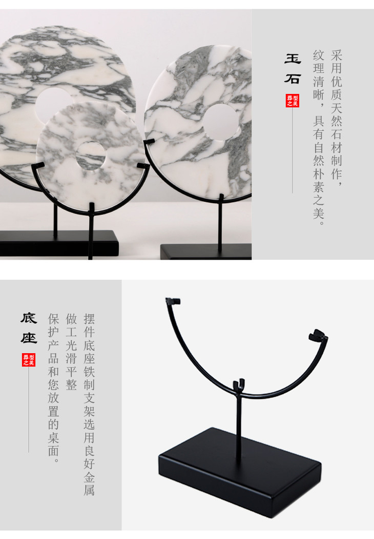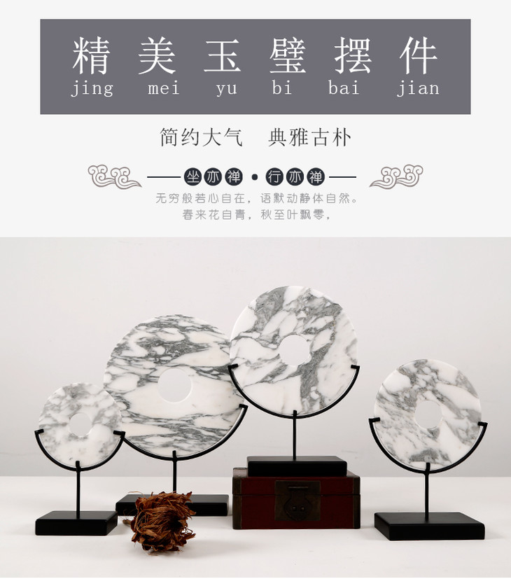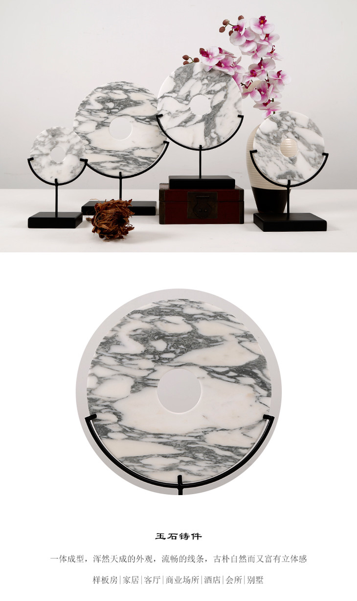 灰白玉片+托 饰品摆件 Marble disk with stand