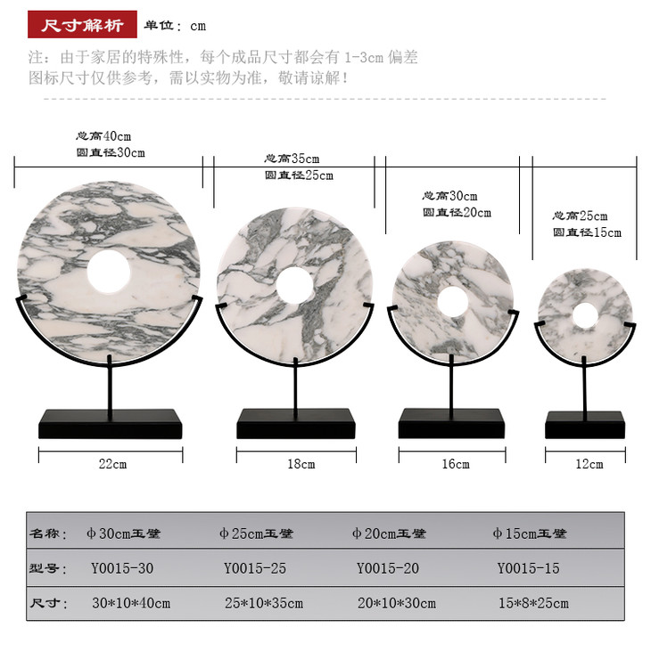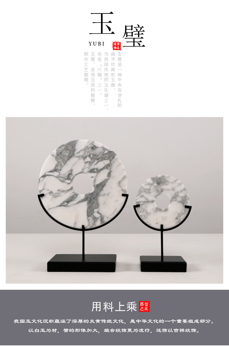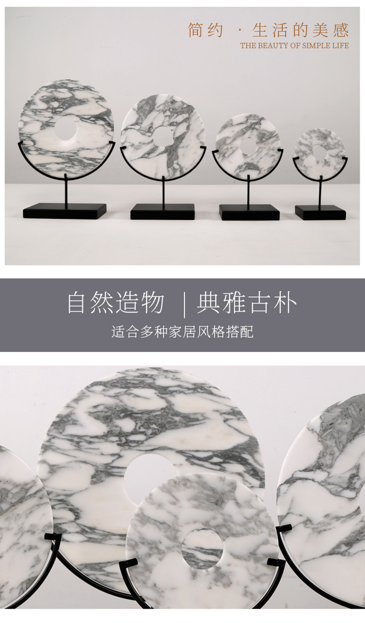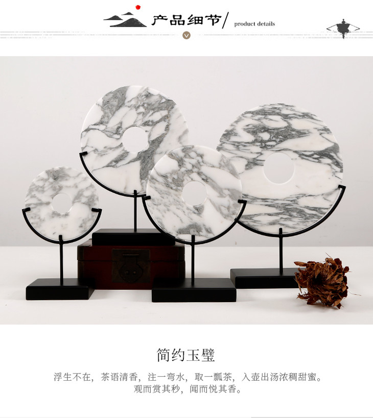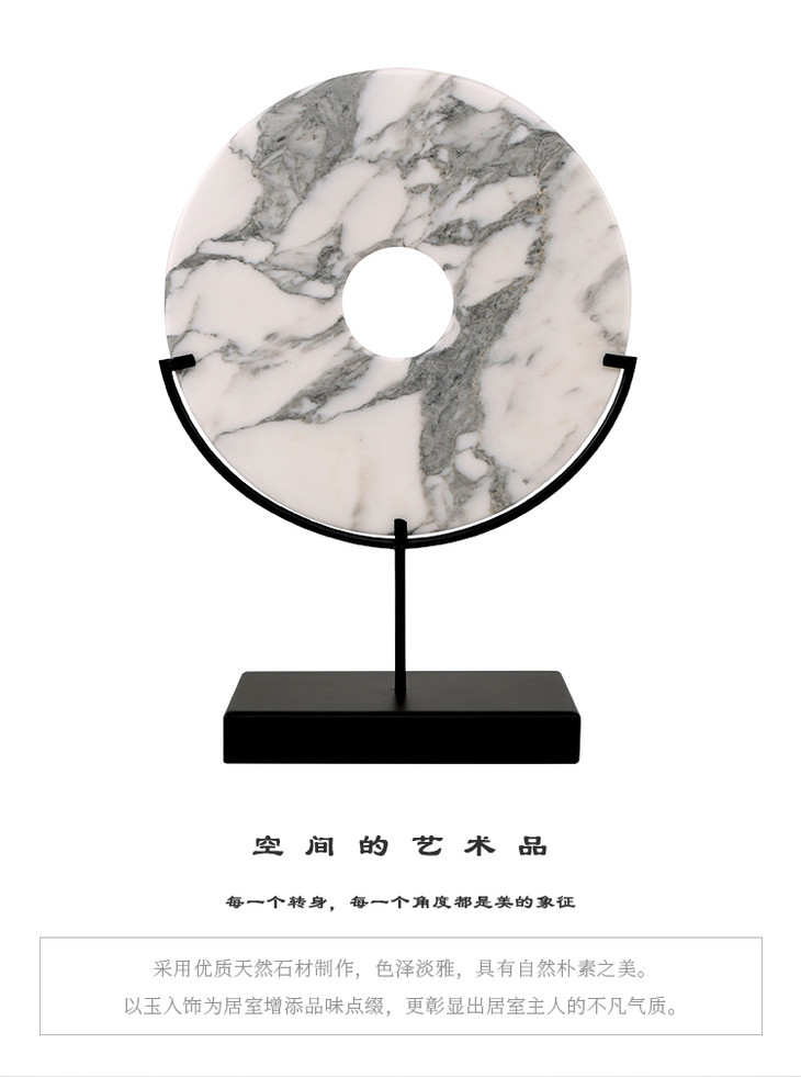 灰白玉片+托 饰品摆件 Marble disk with stand